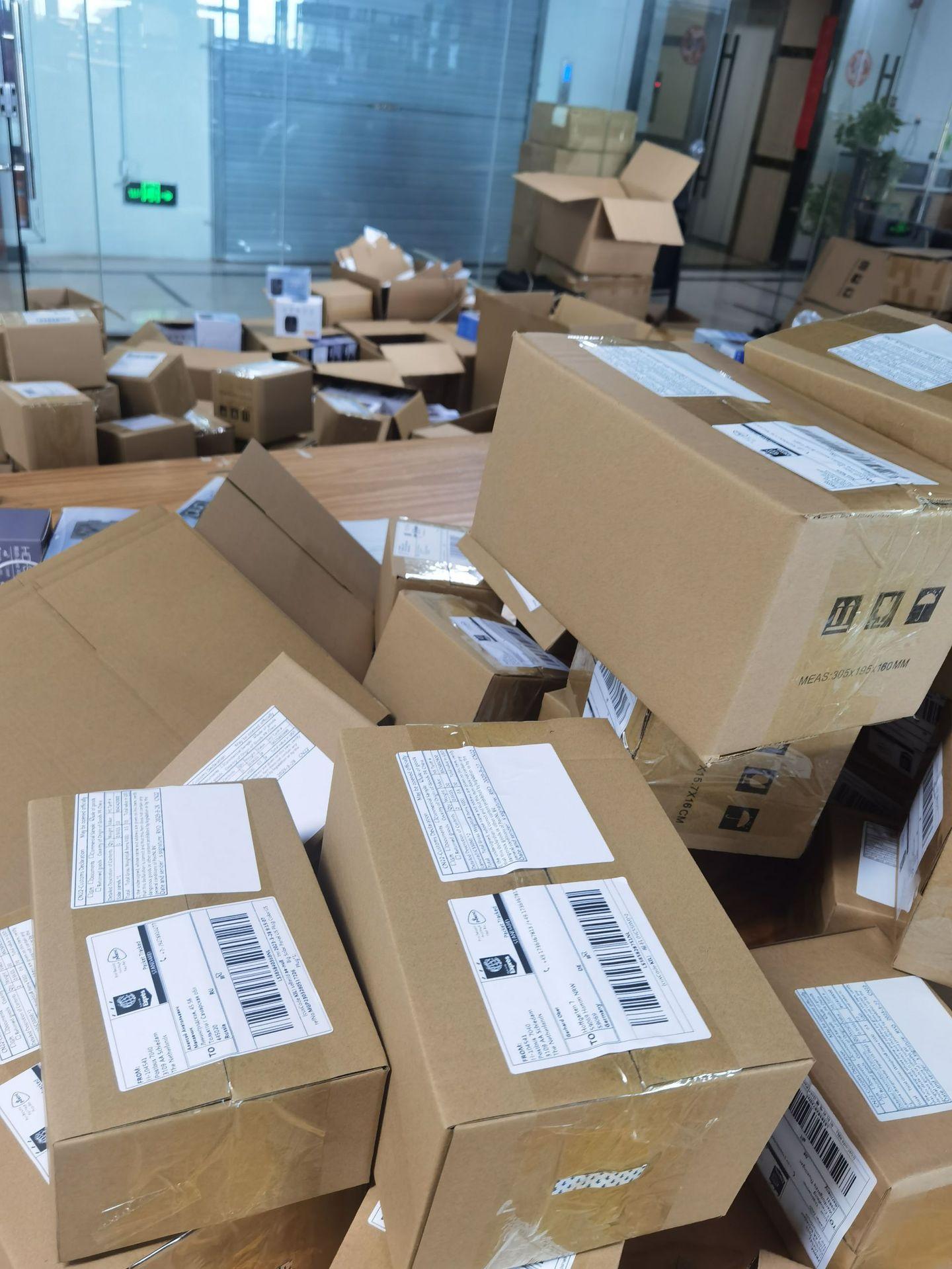 Todos los productos están empaquetados en cajas de cartón.