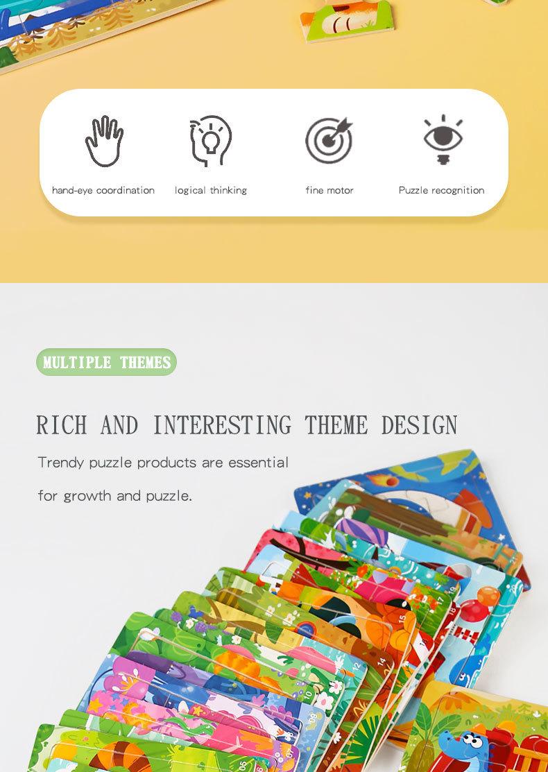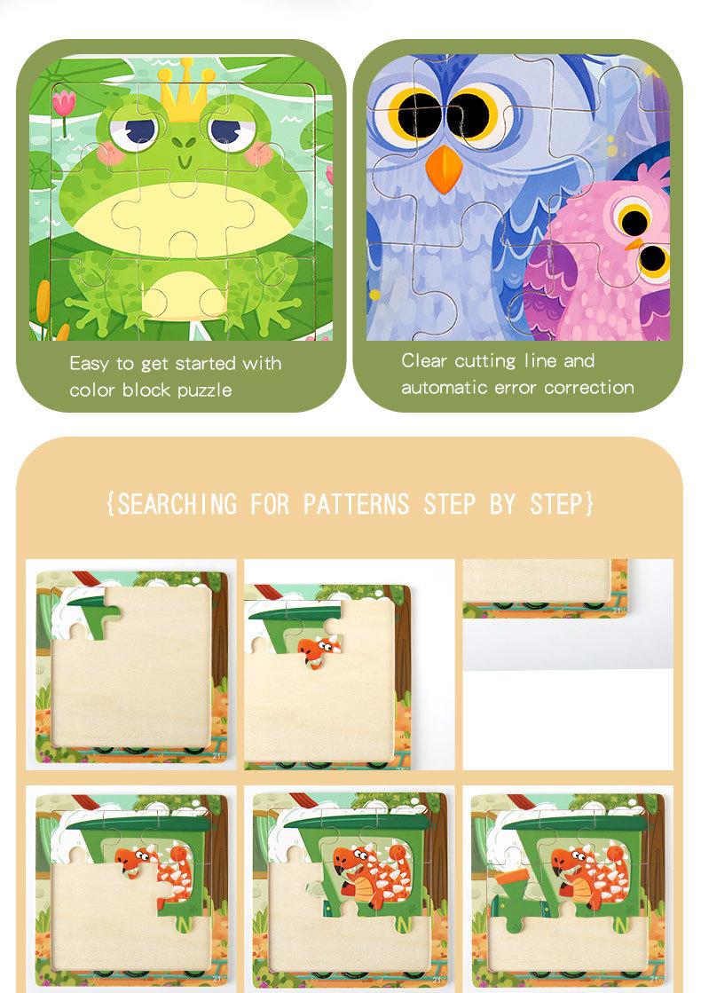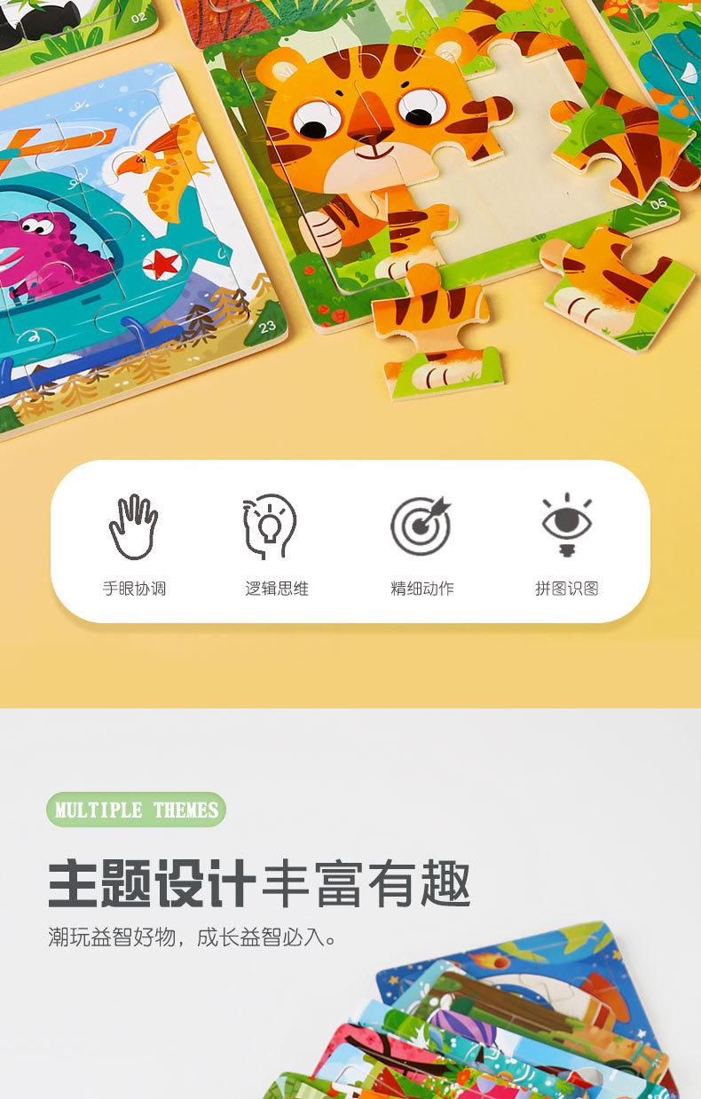 【Set 41-64】Rompecabezas de madera de 9 piezas Peso 0.05kg Cantidad de embalaje 600 sets Tamaño 11.5*11.5*0.5cm Tamaño del embalaje 43.5*23.8*35.5cm