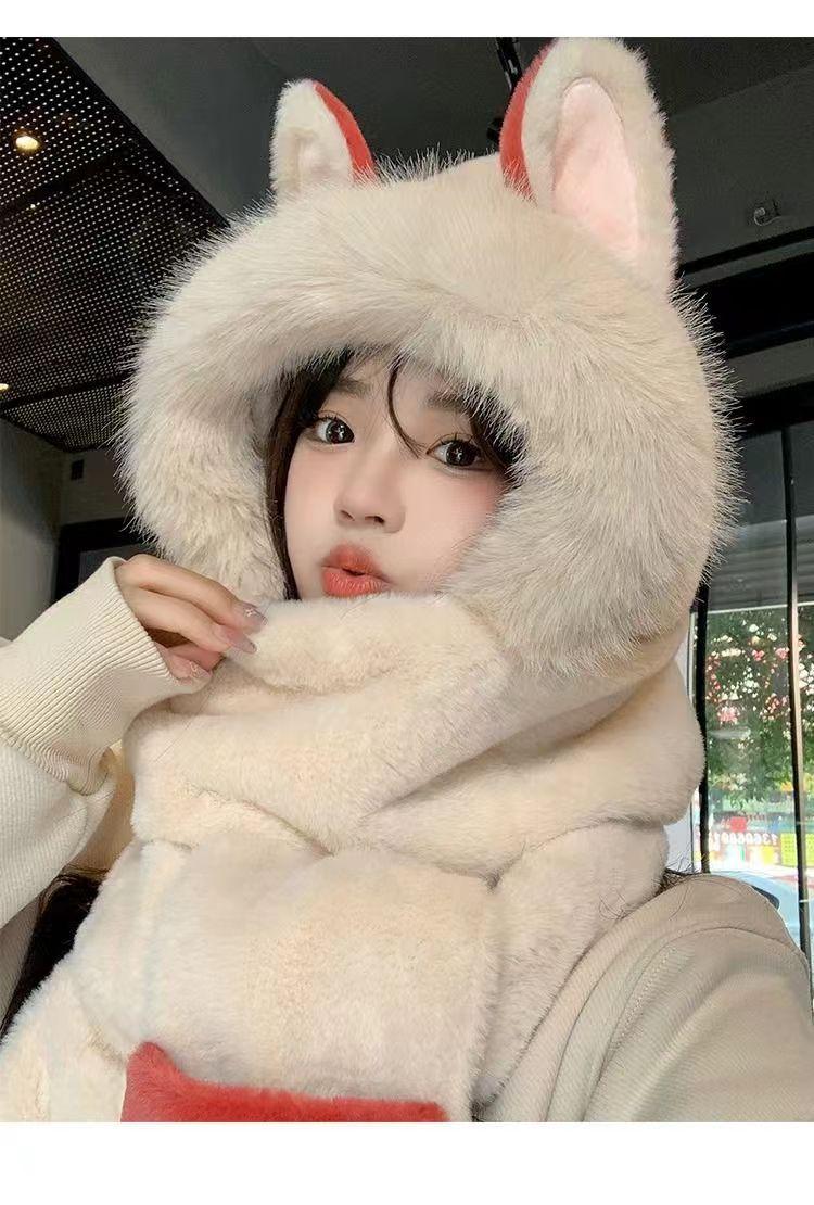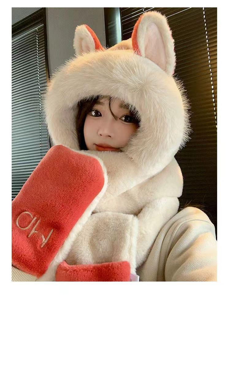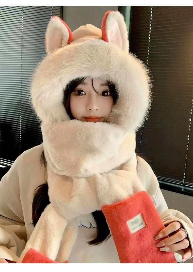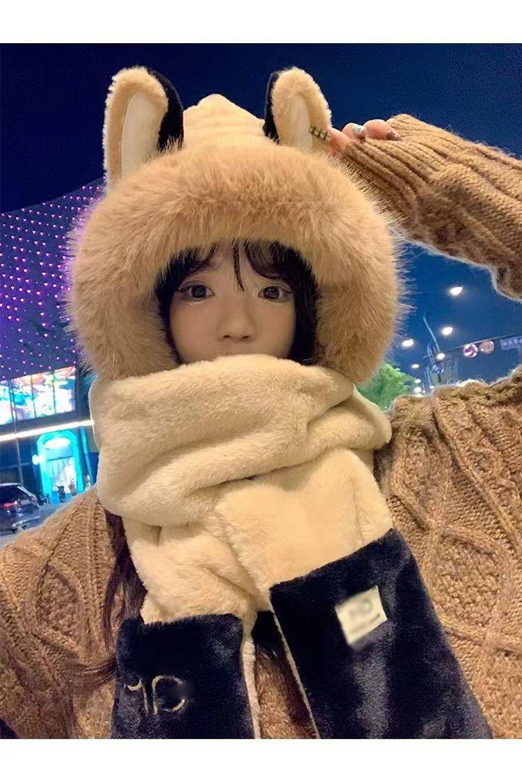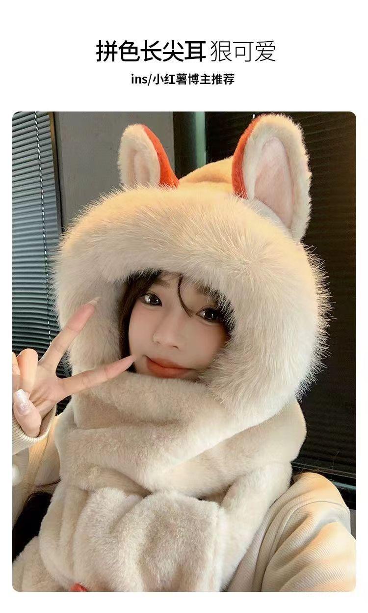Invierno Nuevo Zorro de Fuego Sombrero de Felpa Bufanda Guantes para Mujer Conjunto de Tres Piezas Estudiante Sombrero Cálido Grueso