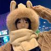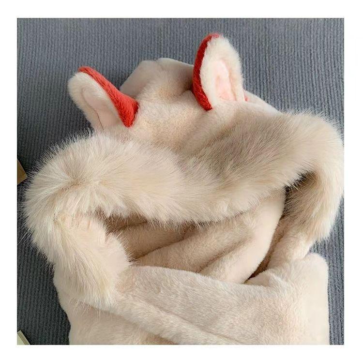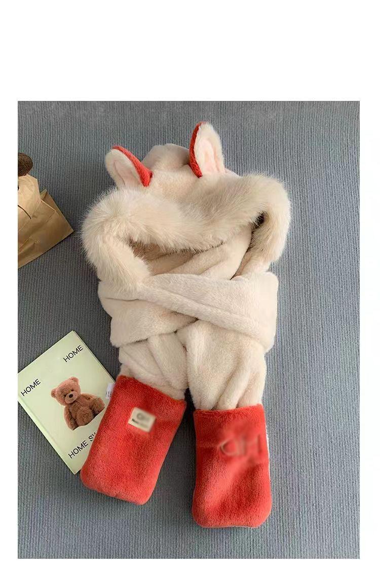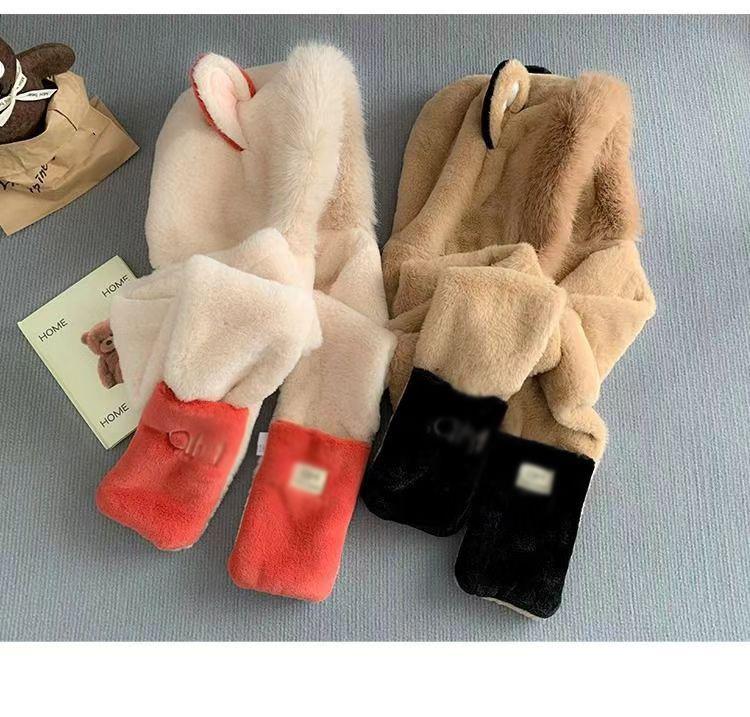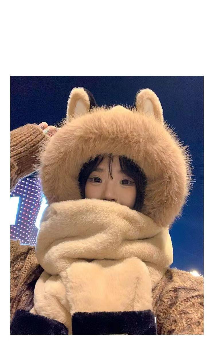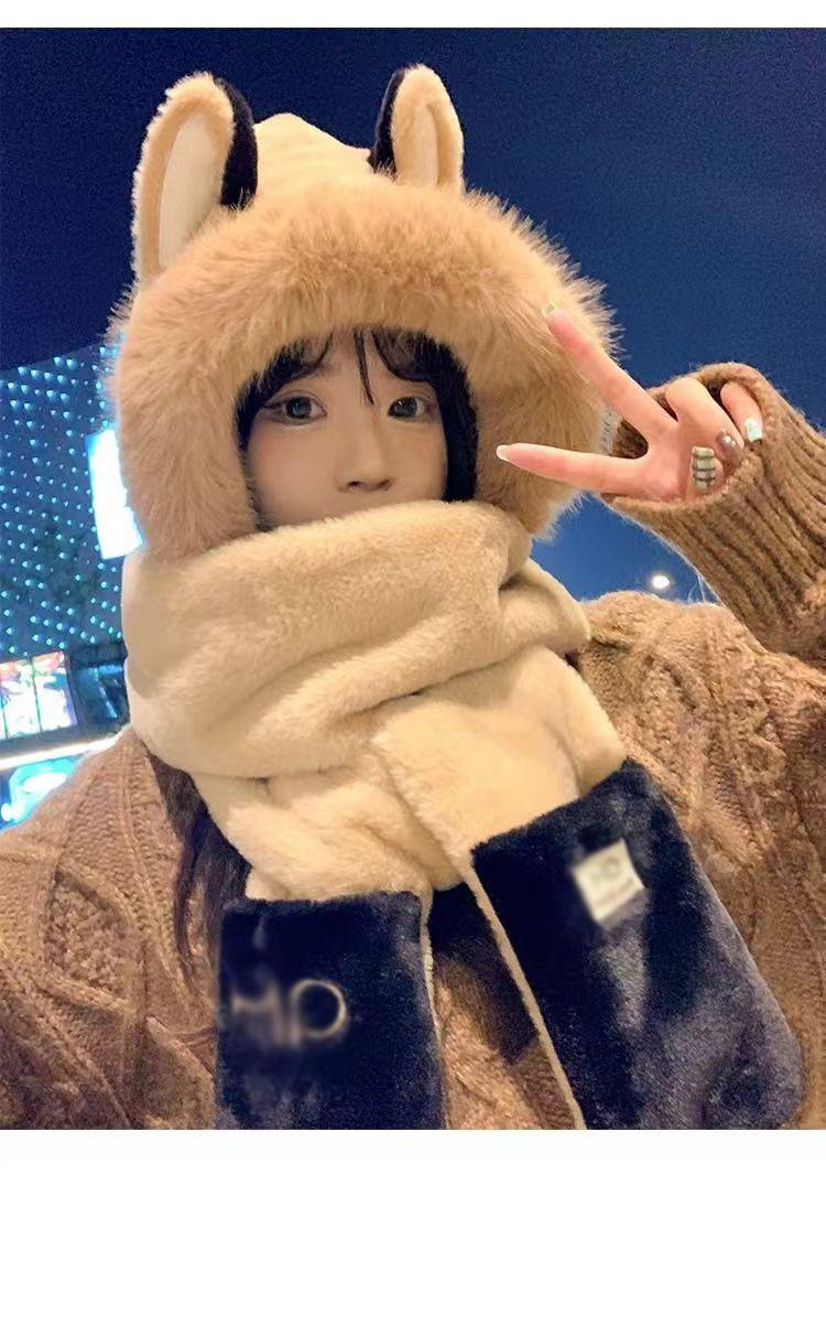 Invierno Nuevo Zorro de Fuego Sombrero de Felpa Bufanda Guantes para Mujer Conjunto de Tres Piezas Estudiante Sombrero Cálido Grueso