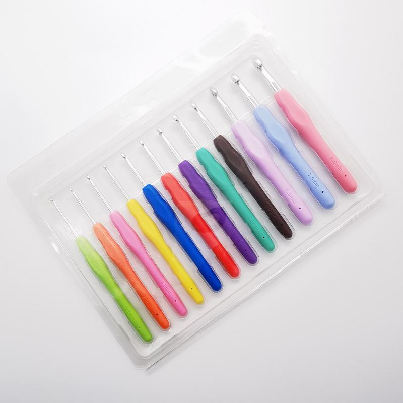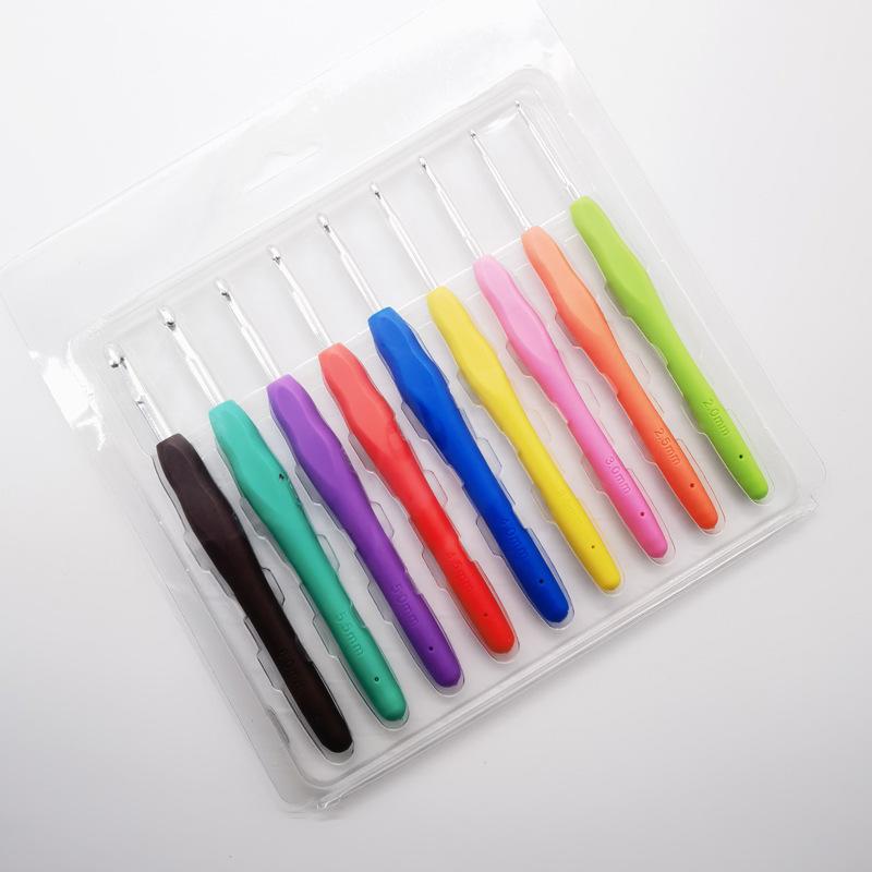 Herramientas de crochet de mango suave de TPR al por mayor hechas a mano DIY de silicona antideslizante tipo mango de crochet aluminio crochet transfronterizo
