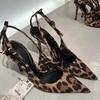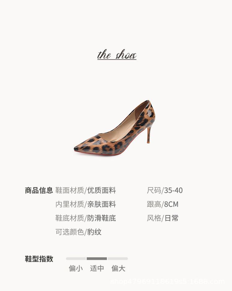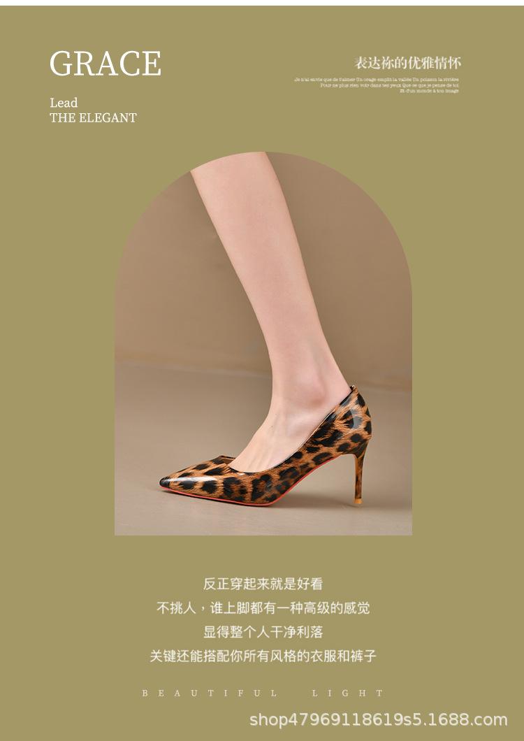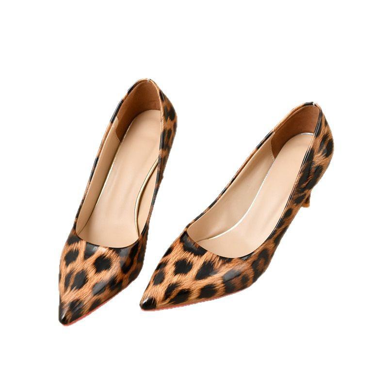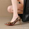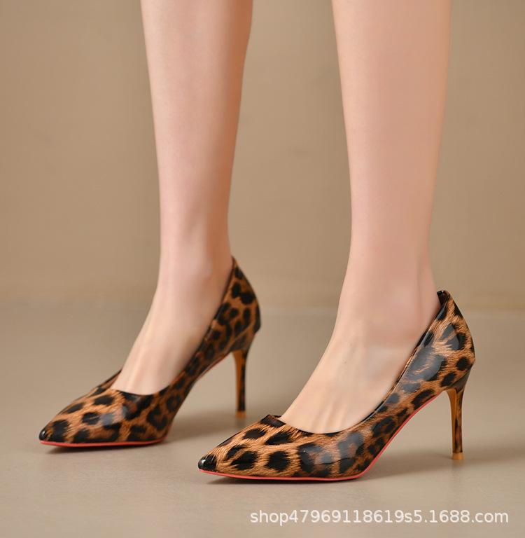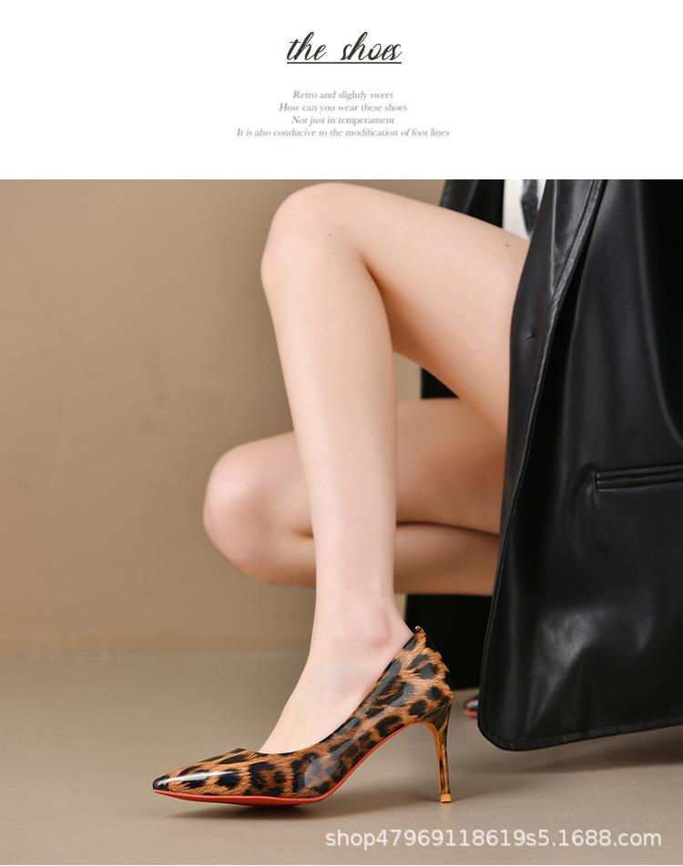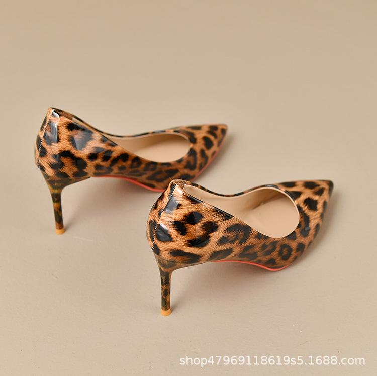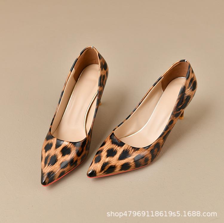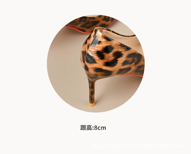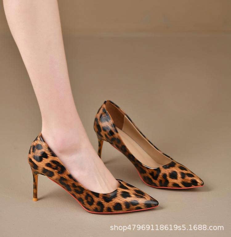 2025 Zapatos de Tacón Medio de Punta Estilo Francés para Mujer Transfronterizo Suela Roja Estampado Leopardo Talla Grande Boca Baja Tacones Altos Estilo Europeo y Americano