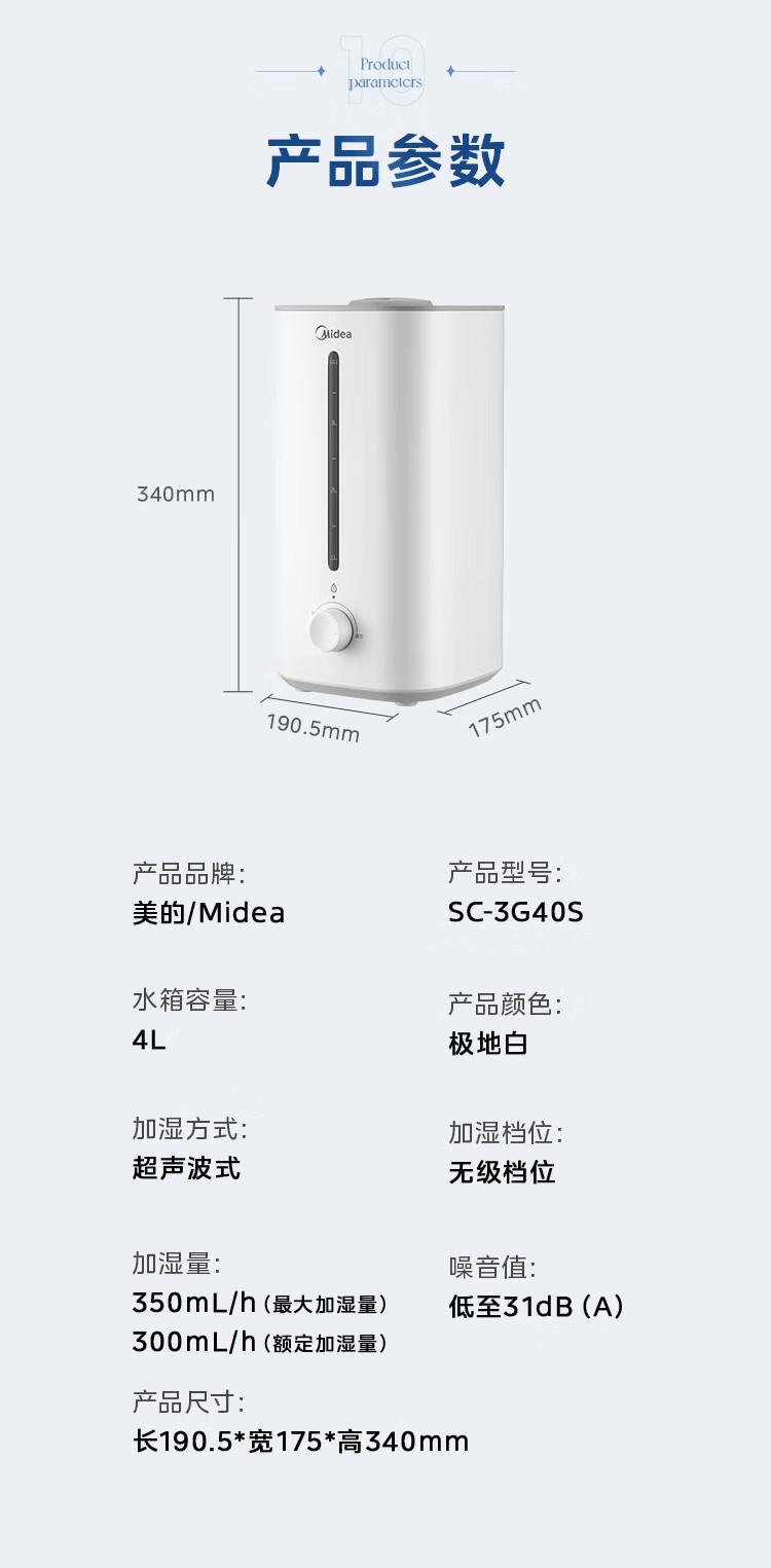 Humidificador Midea SC-3G40S Dormitorio Gran Capacidad Hogar Oficina Escritorio Bebé Bajo Ruido Rociador Mini