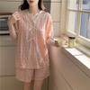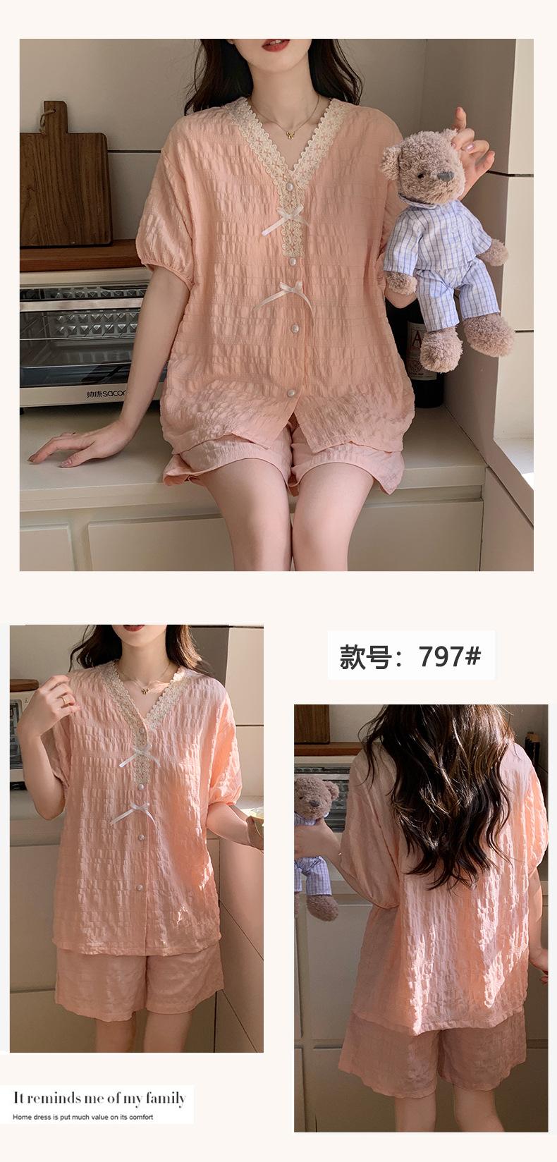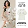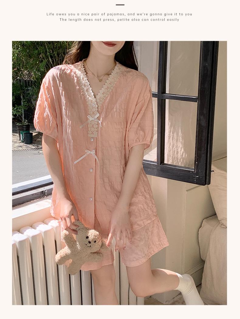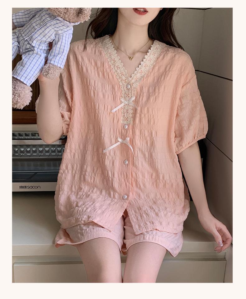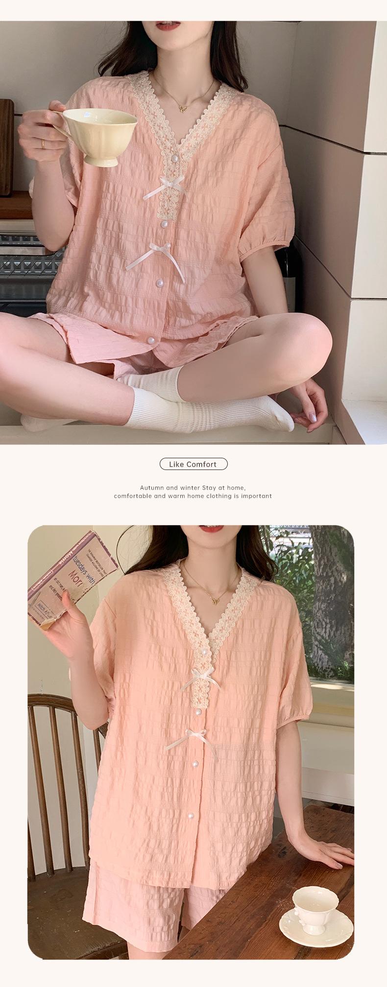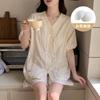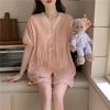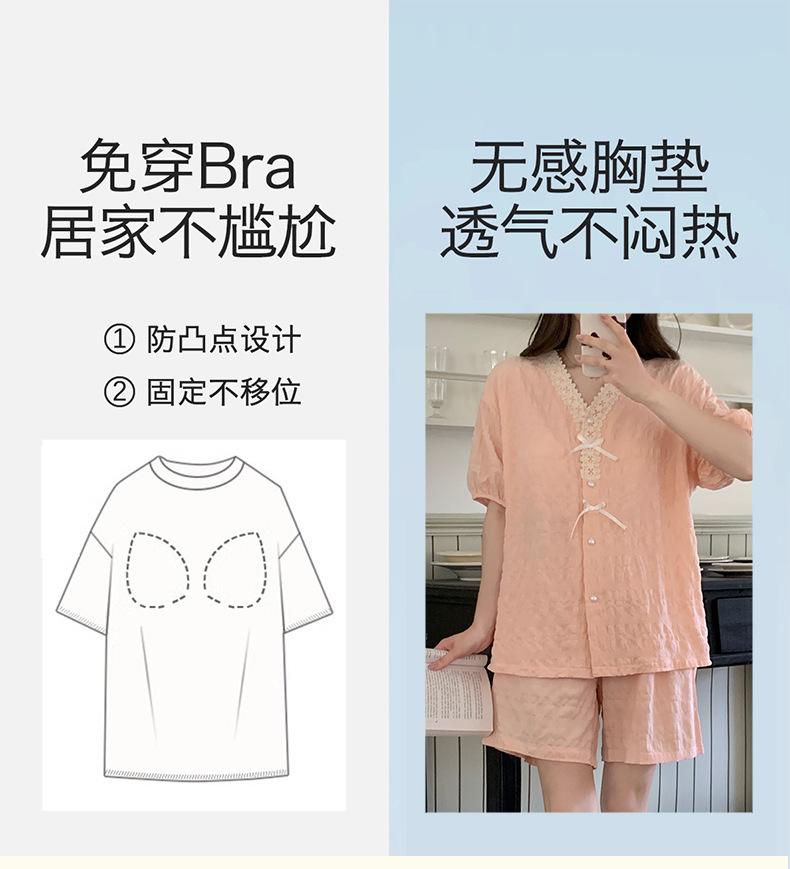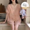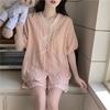 Pijamas para Mujer 2025 Nuevo Estilo de Verano con Almohadillas para el Busto, Dulce Encaje Manga Corta Shorts, Conjunto de Ropa para Casa Fino de Verano