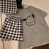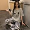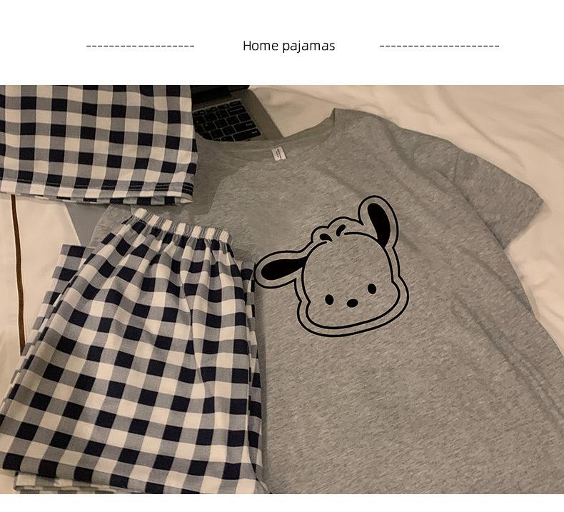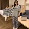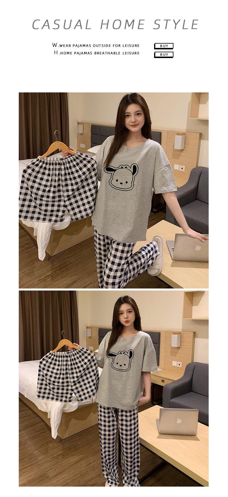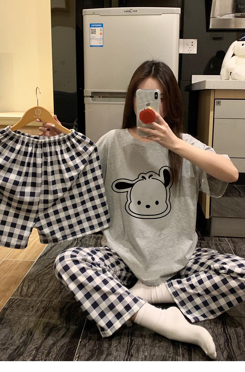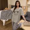 Pijama Nuevo de Algodón Puro 2025 para Mujer, Traje de Tres Piezas de Verano, Pantalones de Manga Corta a Cuadros, Ropa para Estar en Casa
