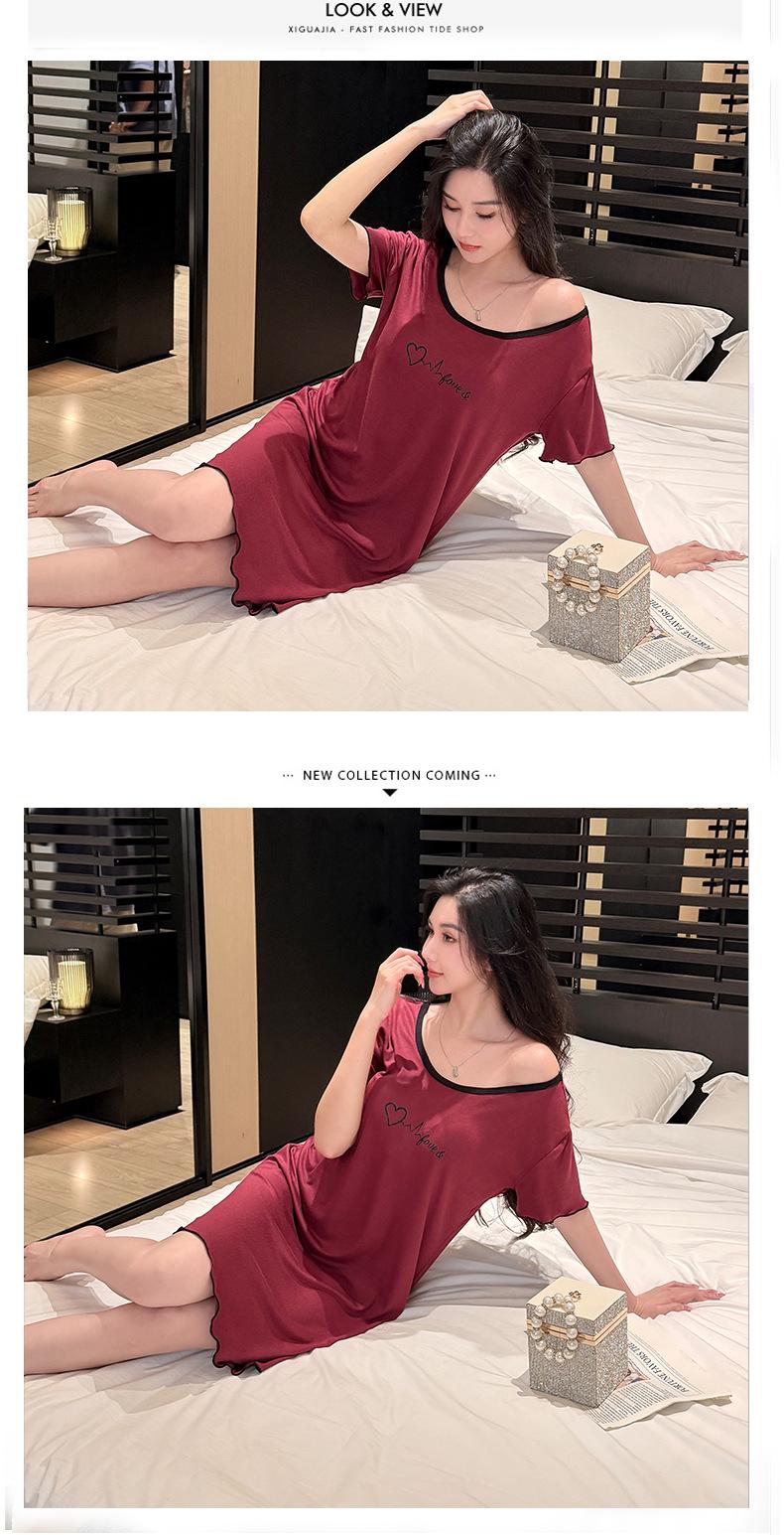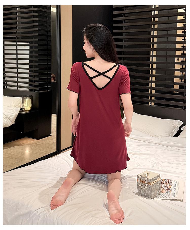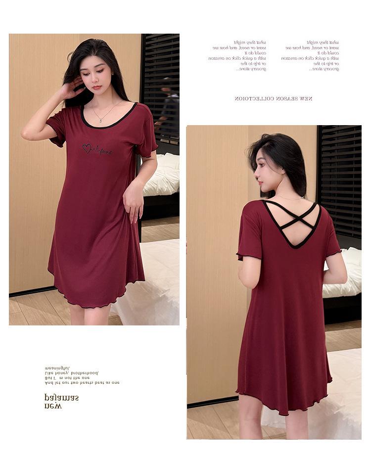 Camisón con Almohadillas para el Busto para Mujer, Vestido Modal Delgado de Verano, Pijama Simple para Mujer, Ropa Sexy para Estar en Casa