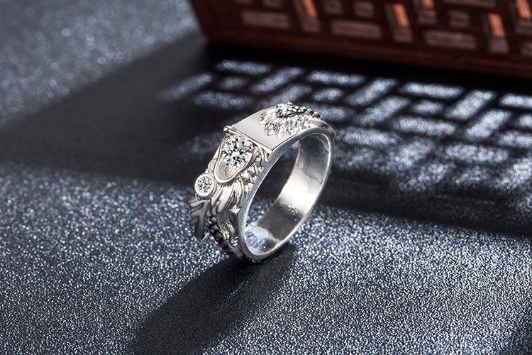 Anillo de estilo Panlong de Amazon europeo y americano, personalizado, creativo, retro, tailandés, de plata, tótem, dragón, anillo de moda