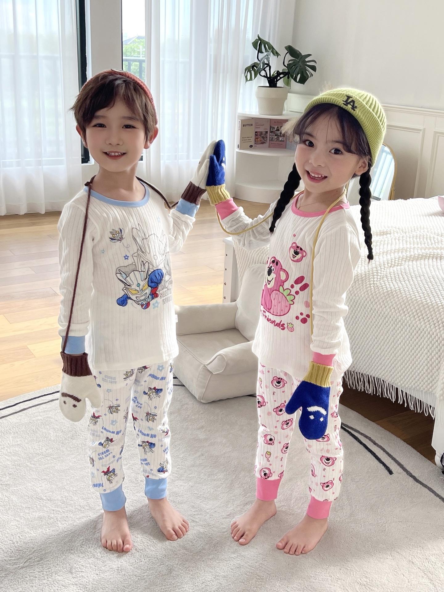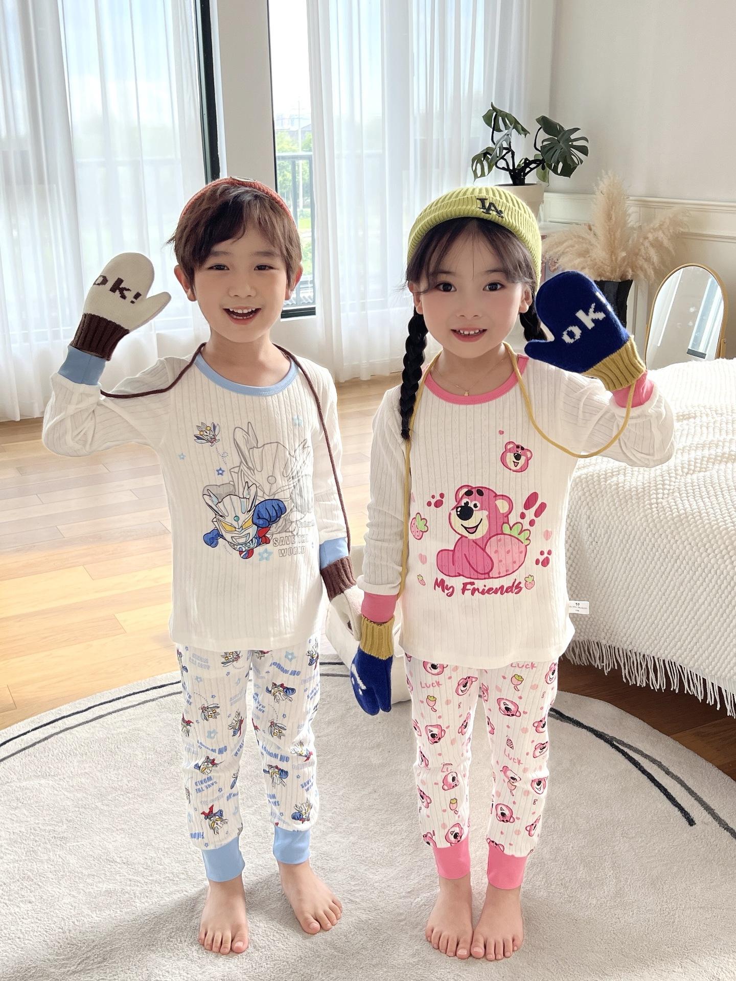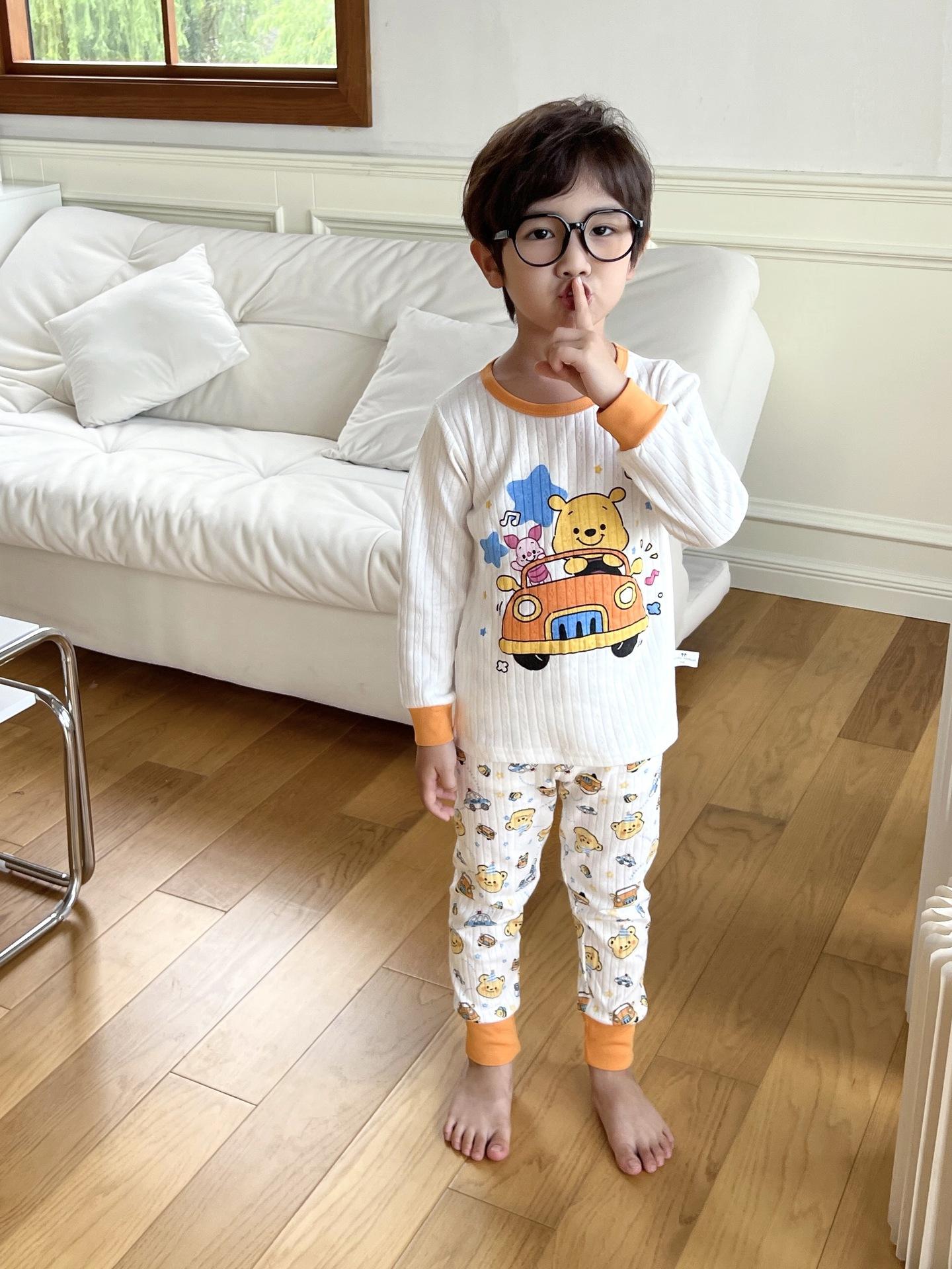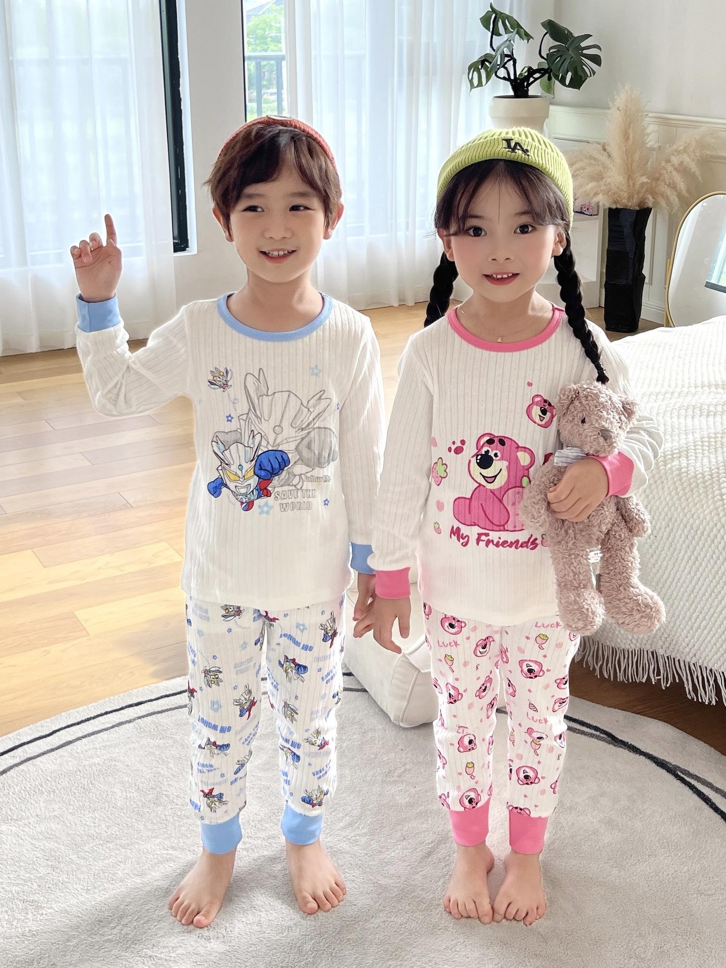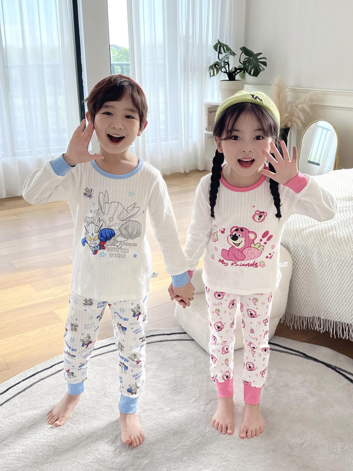 [Algodón Transpirable de Doble Capa] 24 Otoño Nuevo Conjunto de Ropa para el Hogar de Algodón Puro para Niños y Niñas, Pijama de Manga Larga, Ropa de Otoño