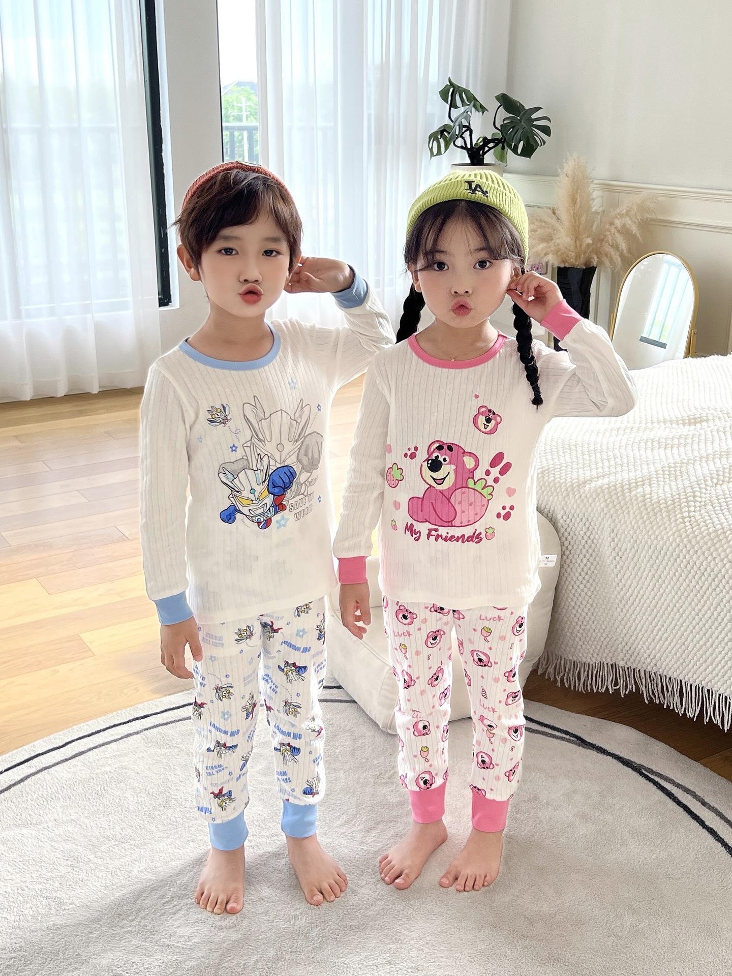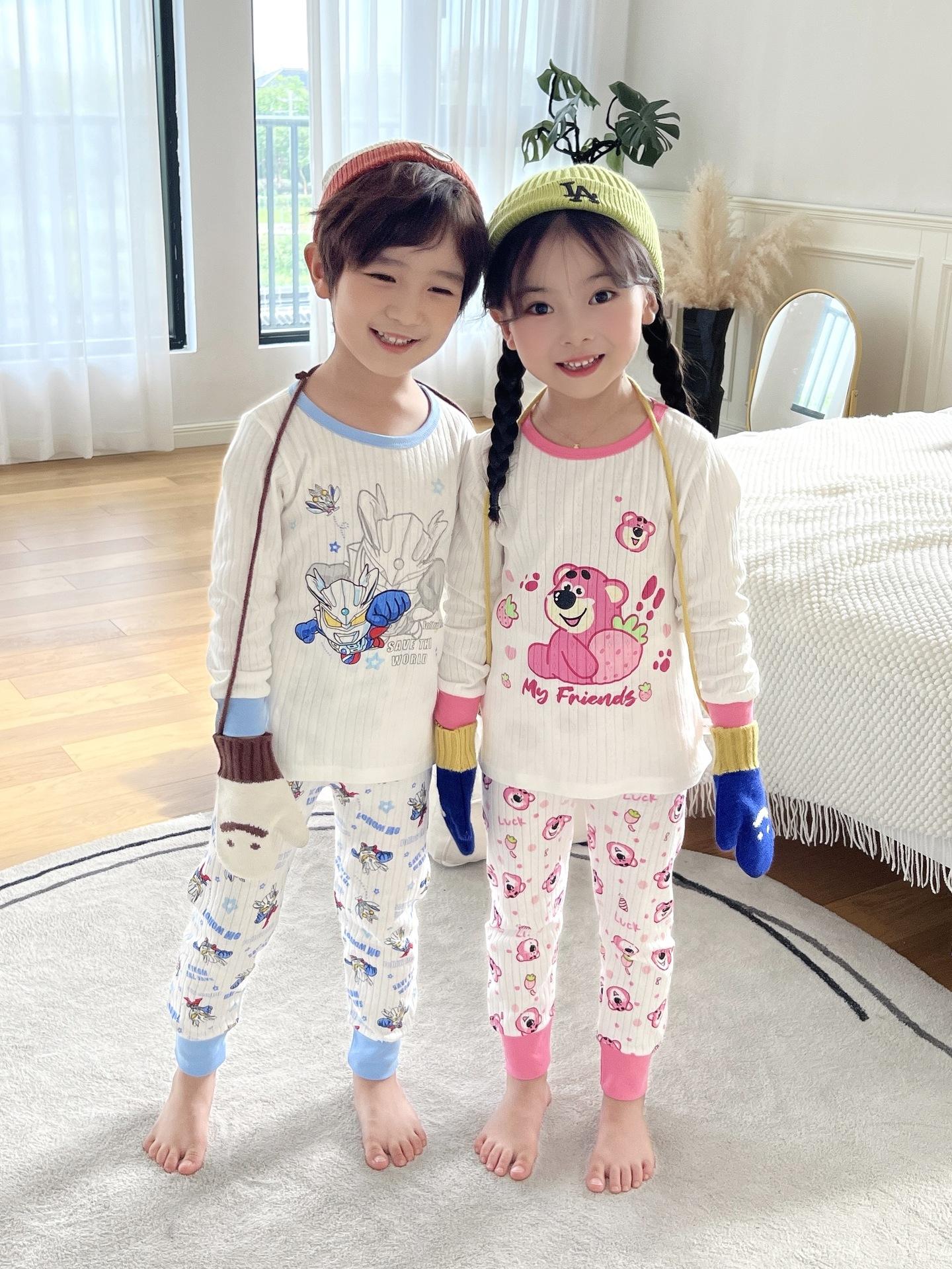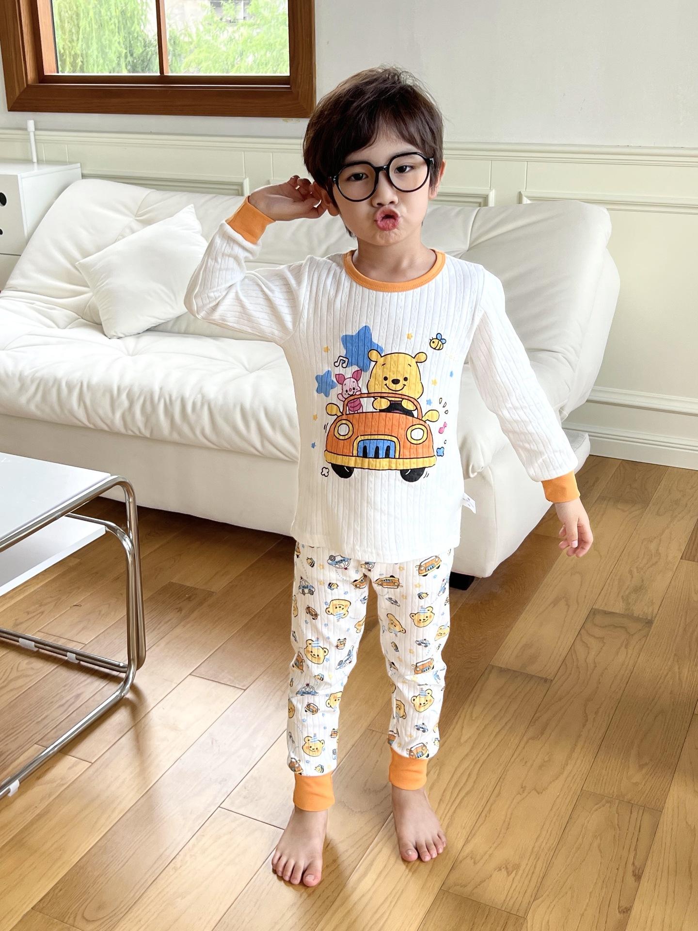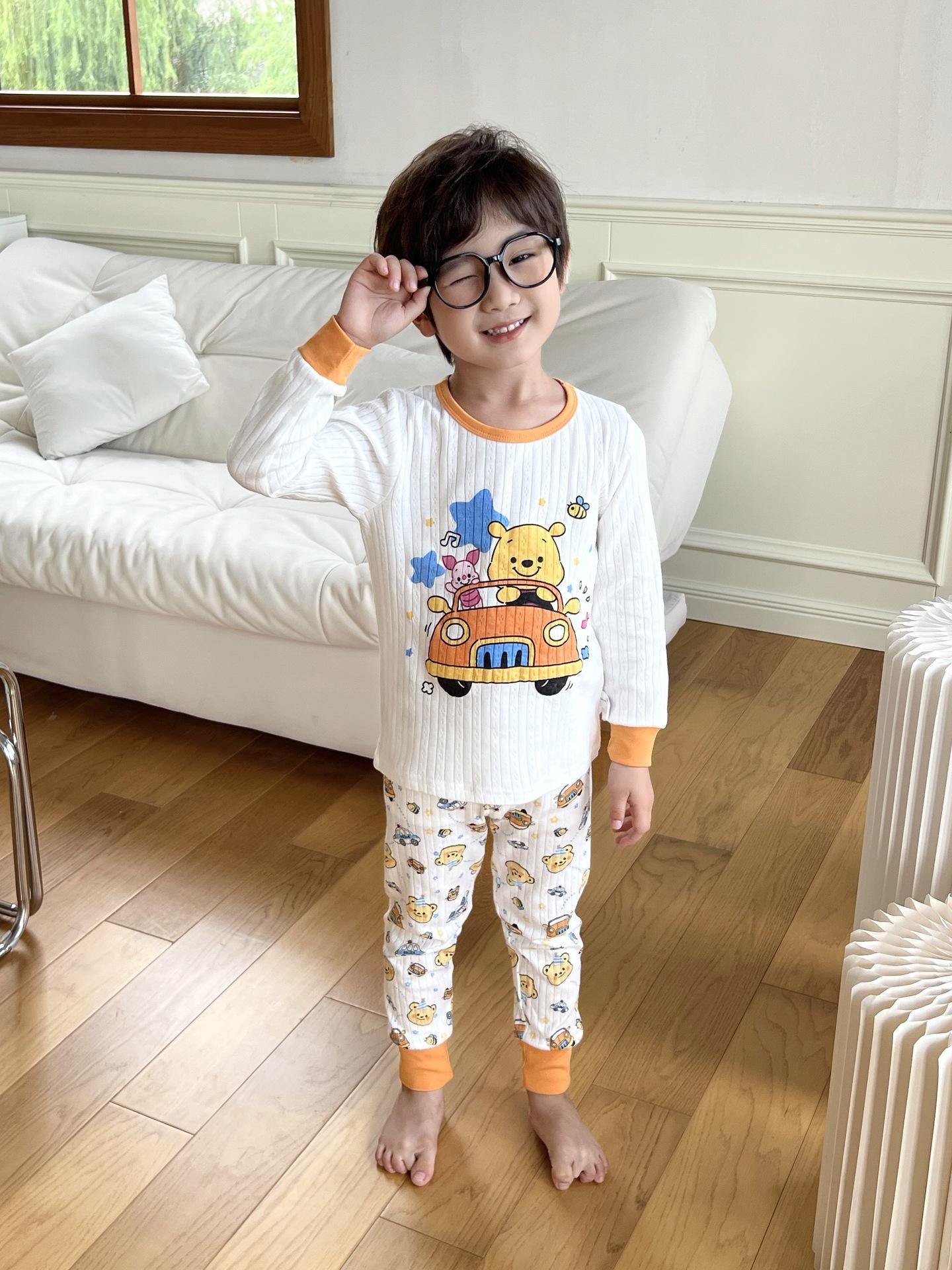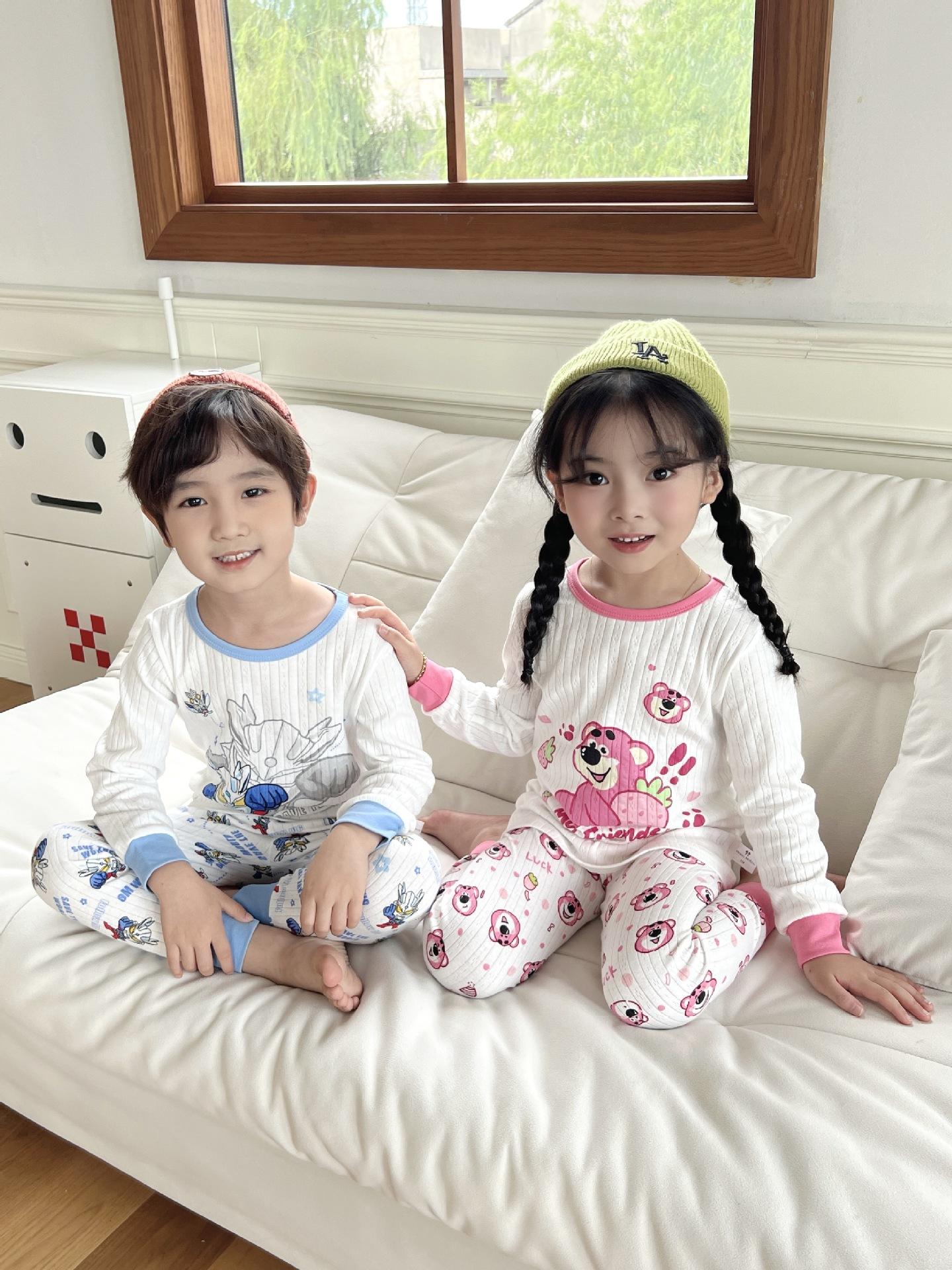 [Algodón Transpirable de Doble Capa] 24 Otoño Nuevo Conjunto de Ropa para el Hogar de Algodón Puro para Niños y Niñas, Pijama de Manga Larga, Ropa de Otoño