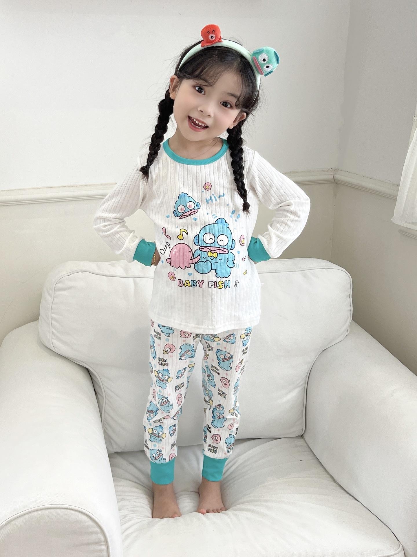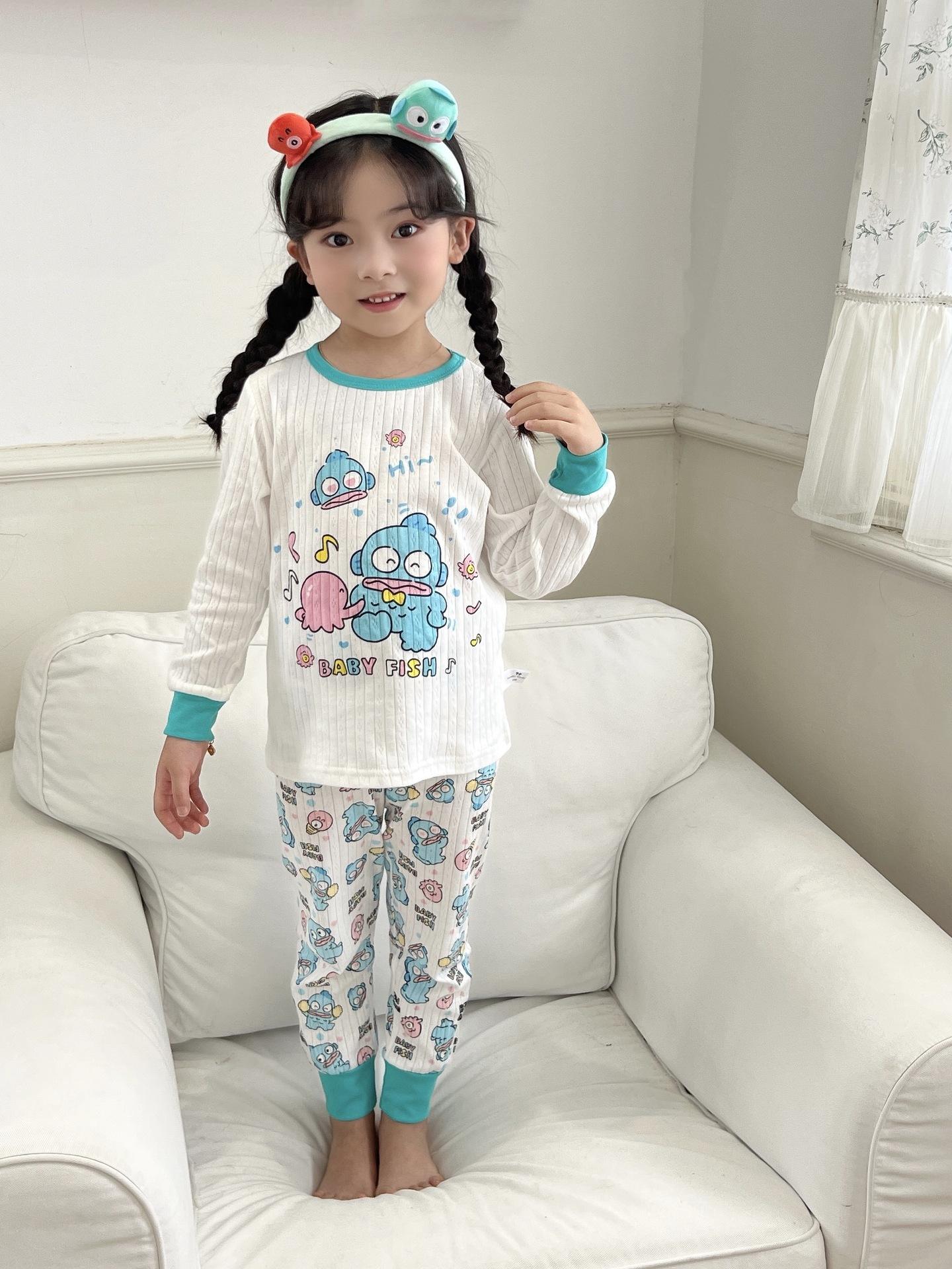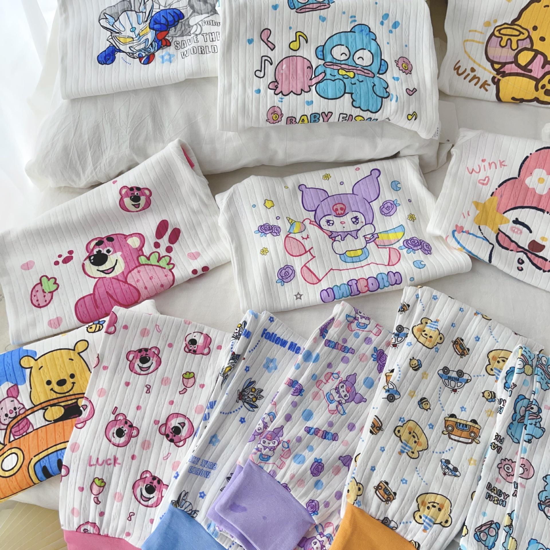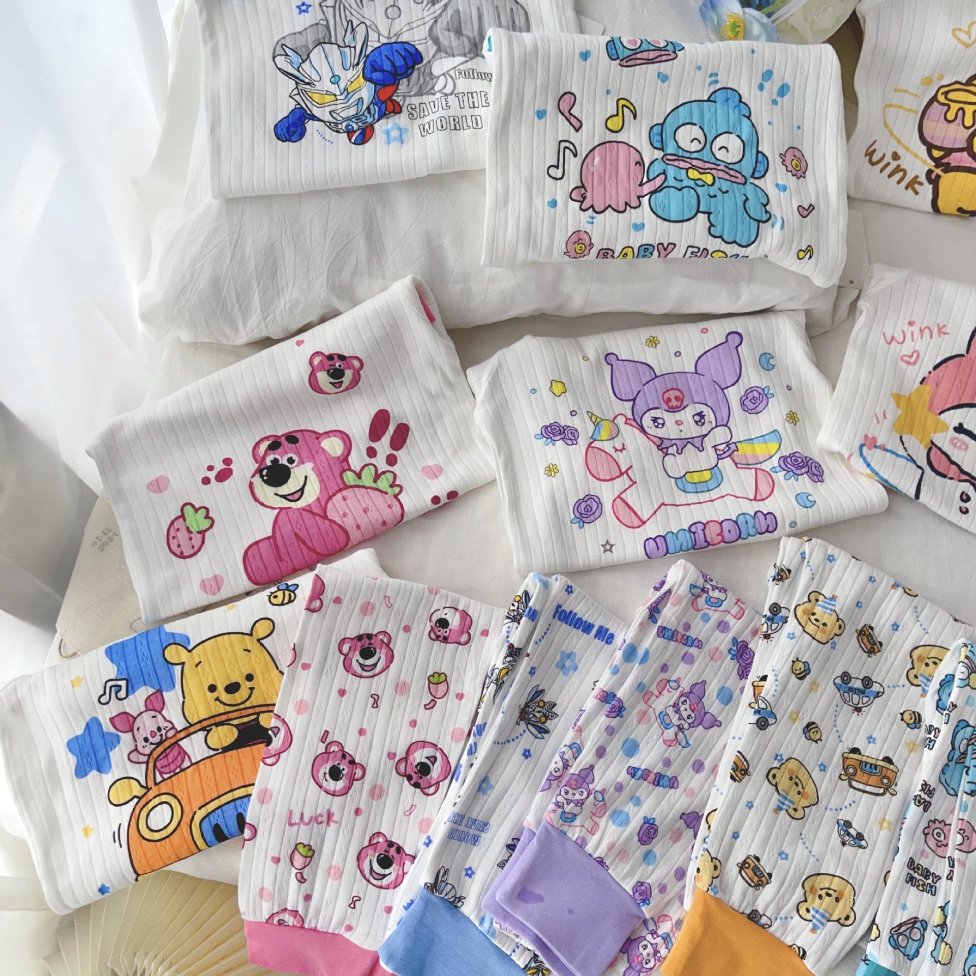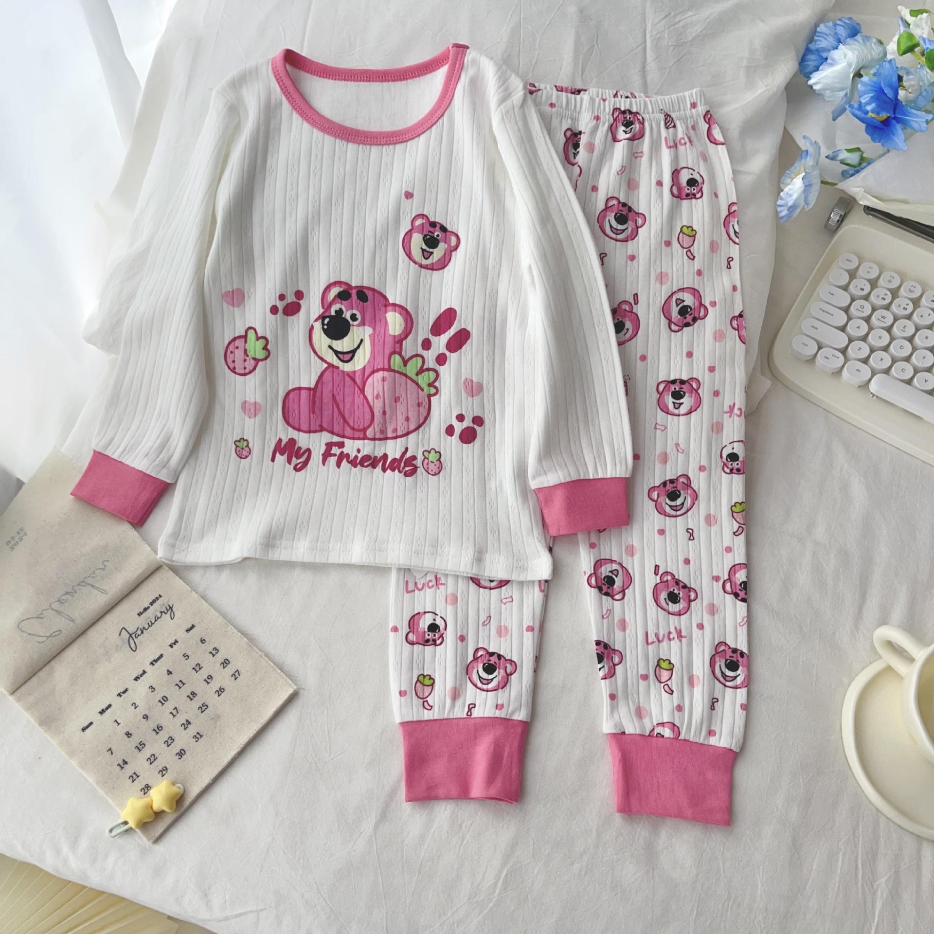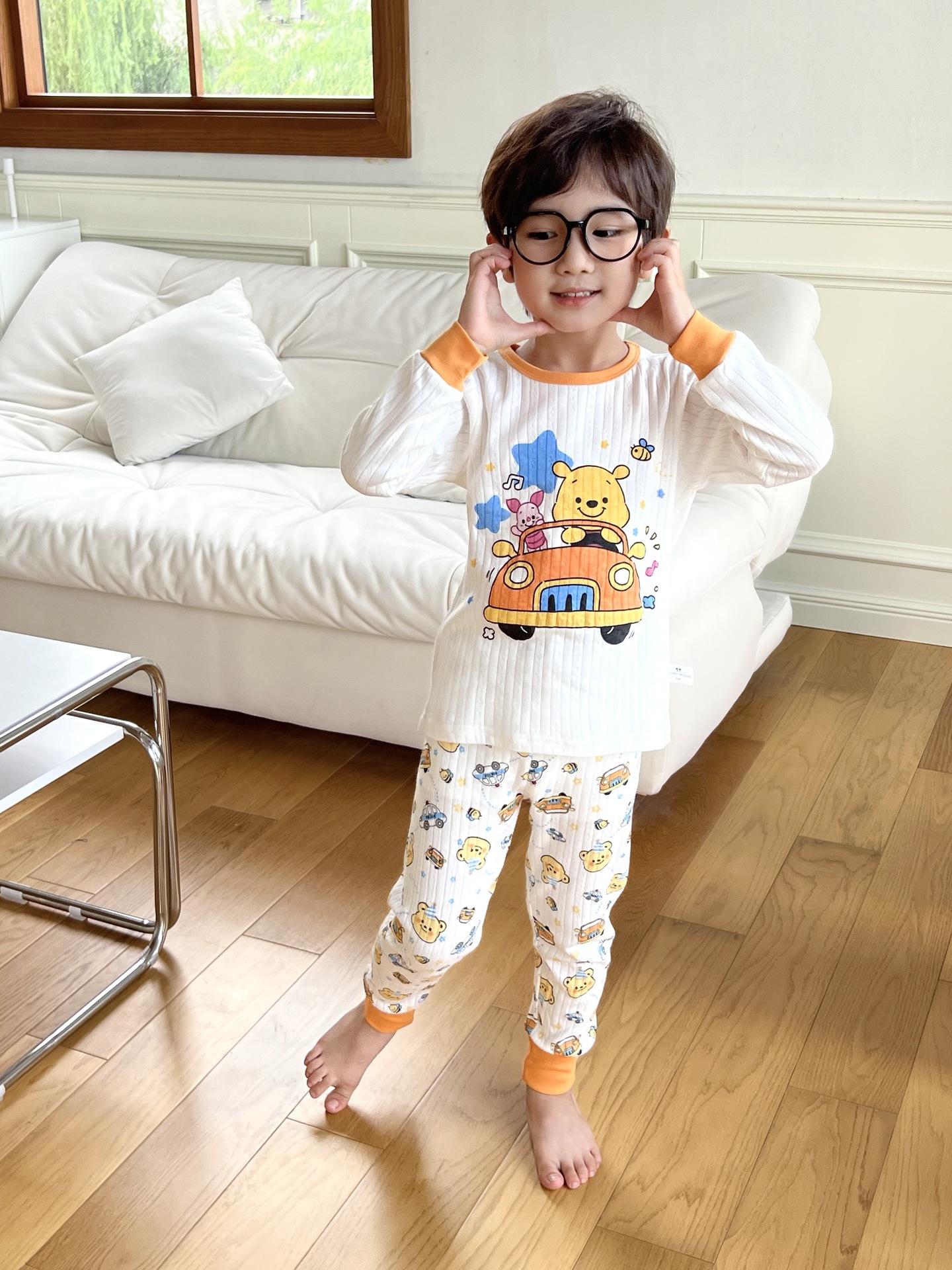 [Algodón Transpirable de Doble Capa] 24 Otoño Nuevo Conjunto de Ropa para el Hogar de Algodón Puro para Niños y Niñas, Pijama de Manga Larga, Ropa de Otoño