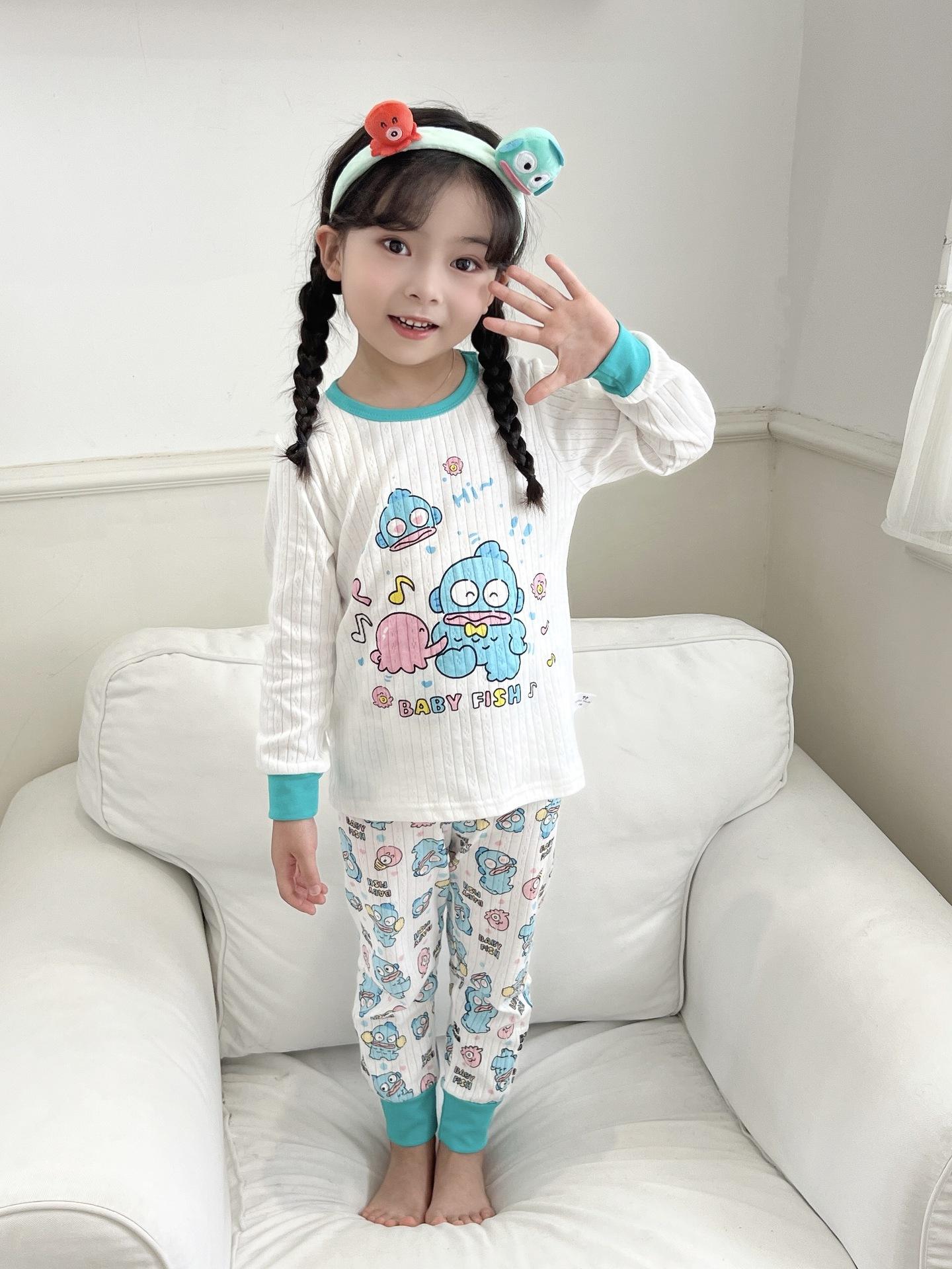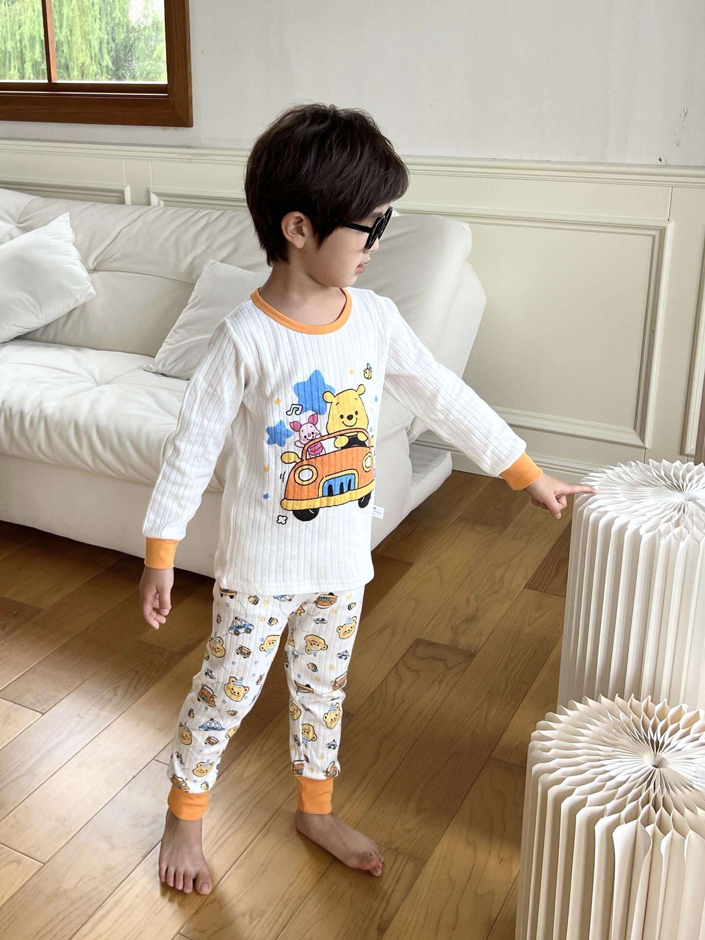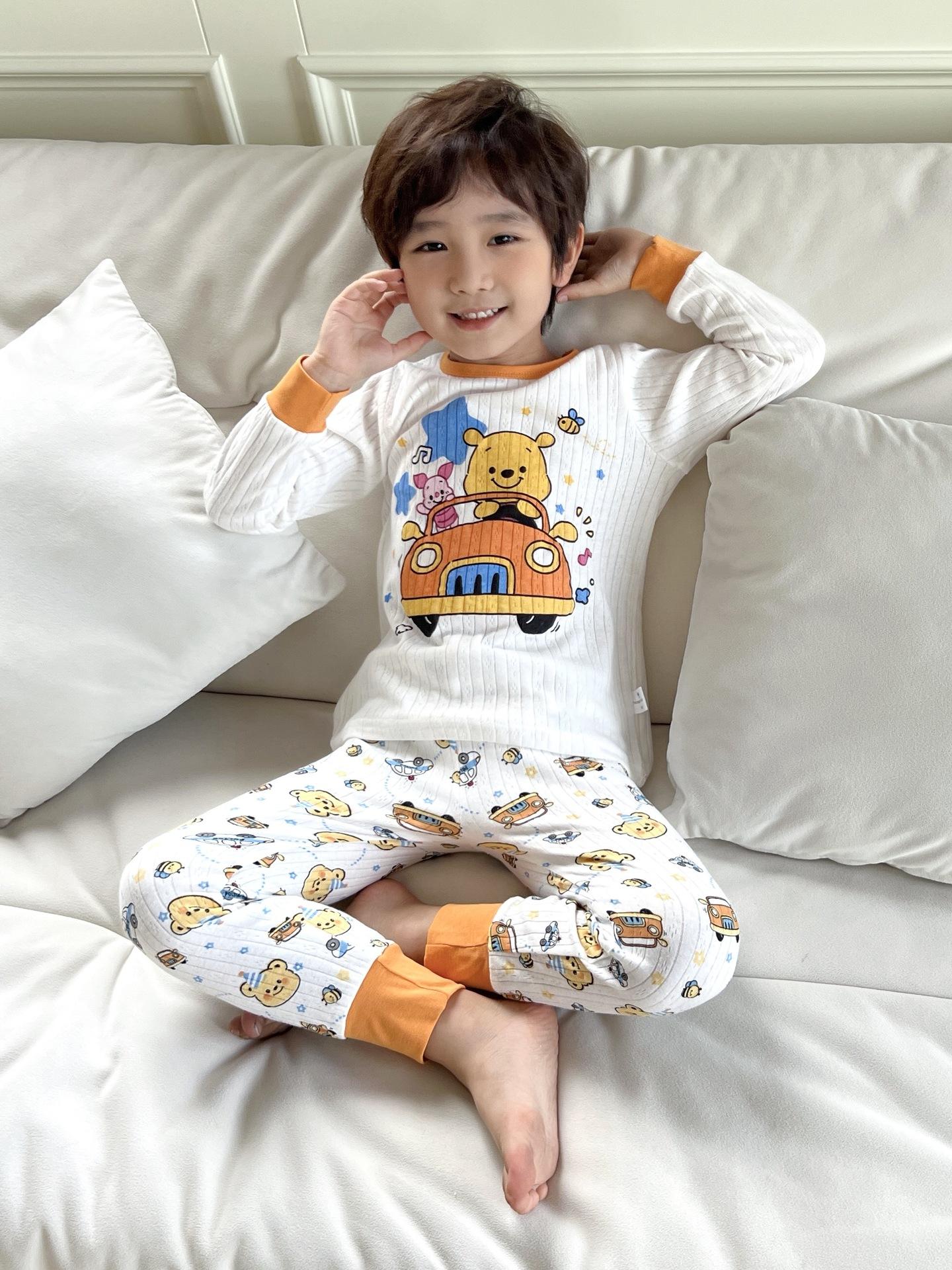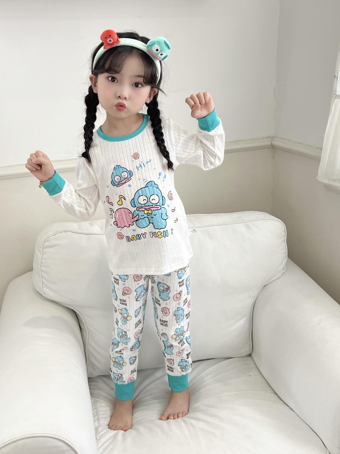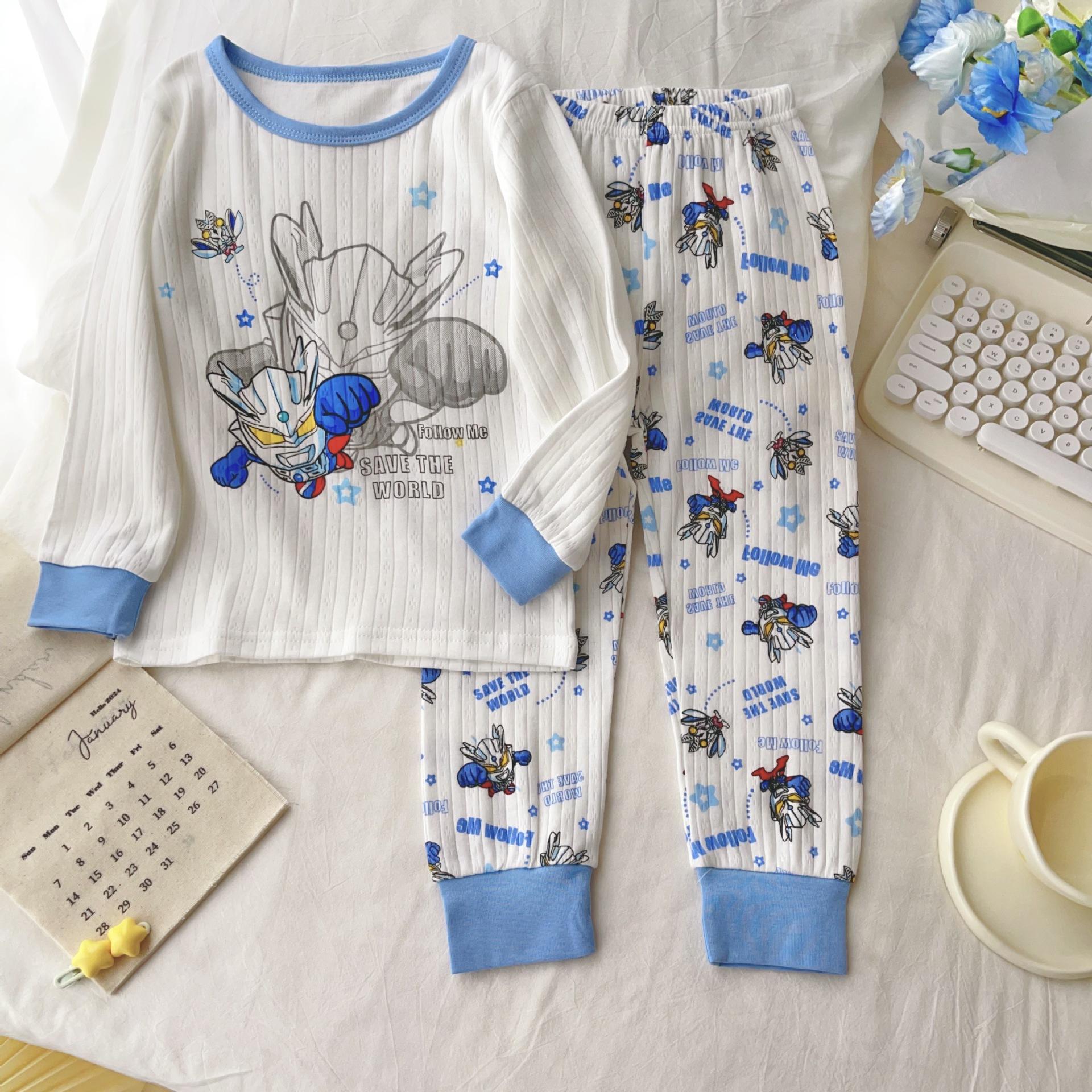 [Algodón Transpirable de Doble Capa] 24 Otoño Nuevo Conjunto de Ropa para el Hogar de Algodón Puro para Niños y Niñas, Pijama de Manga Larga, Ropa de Otoño