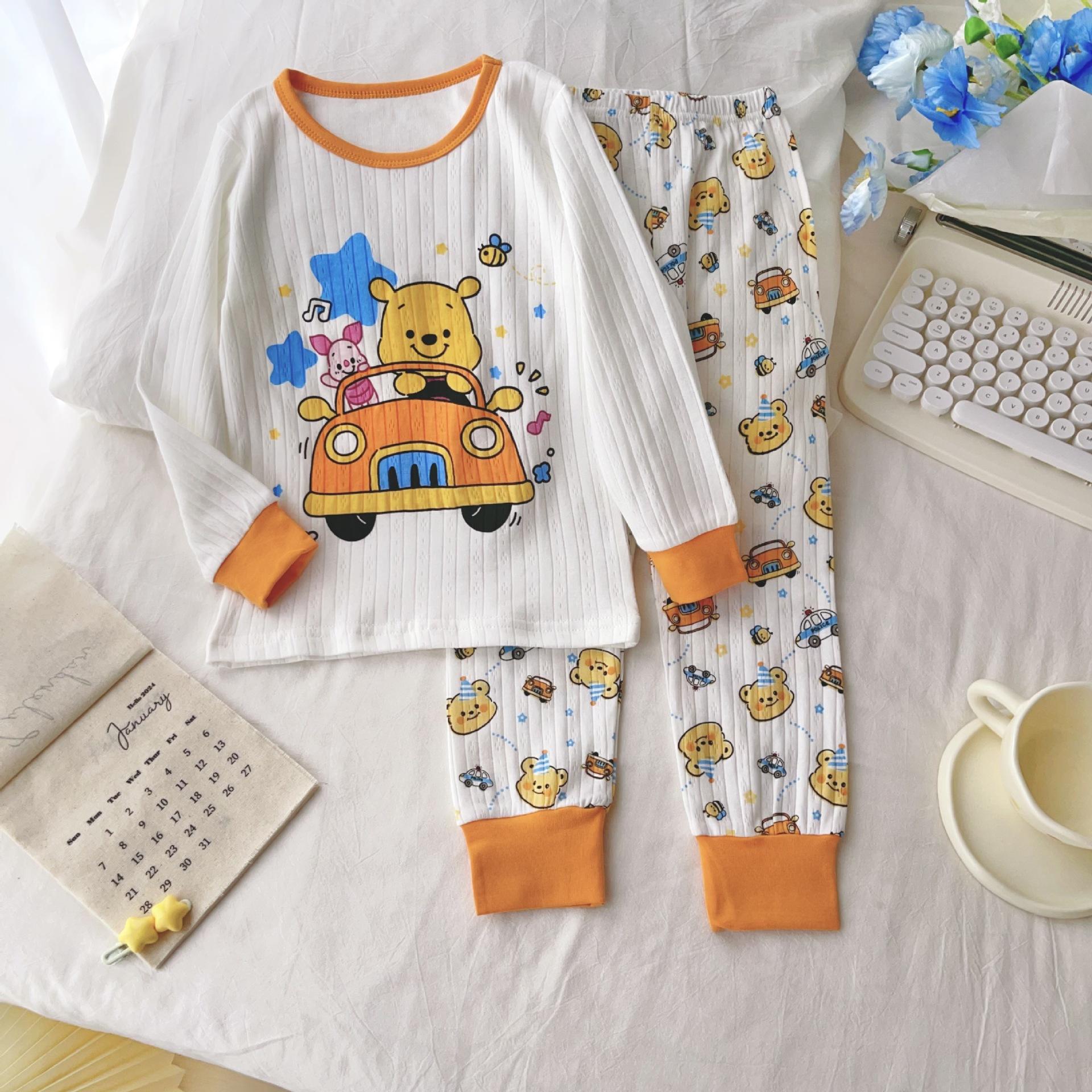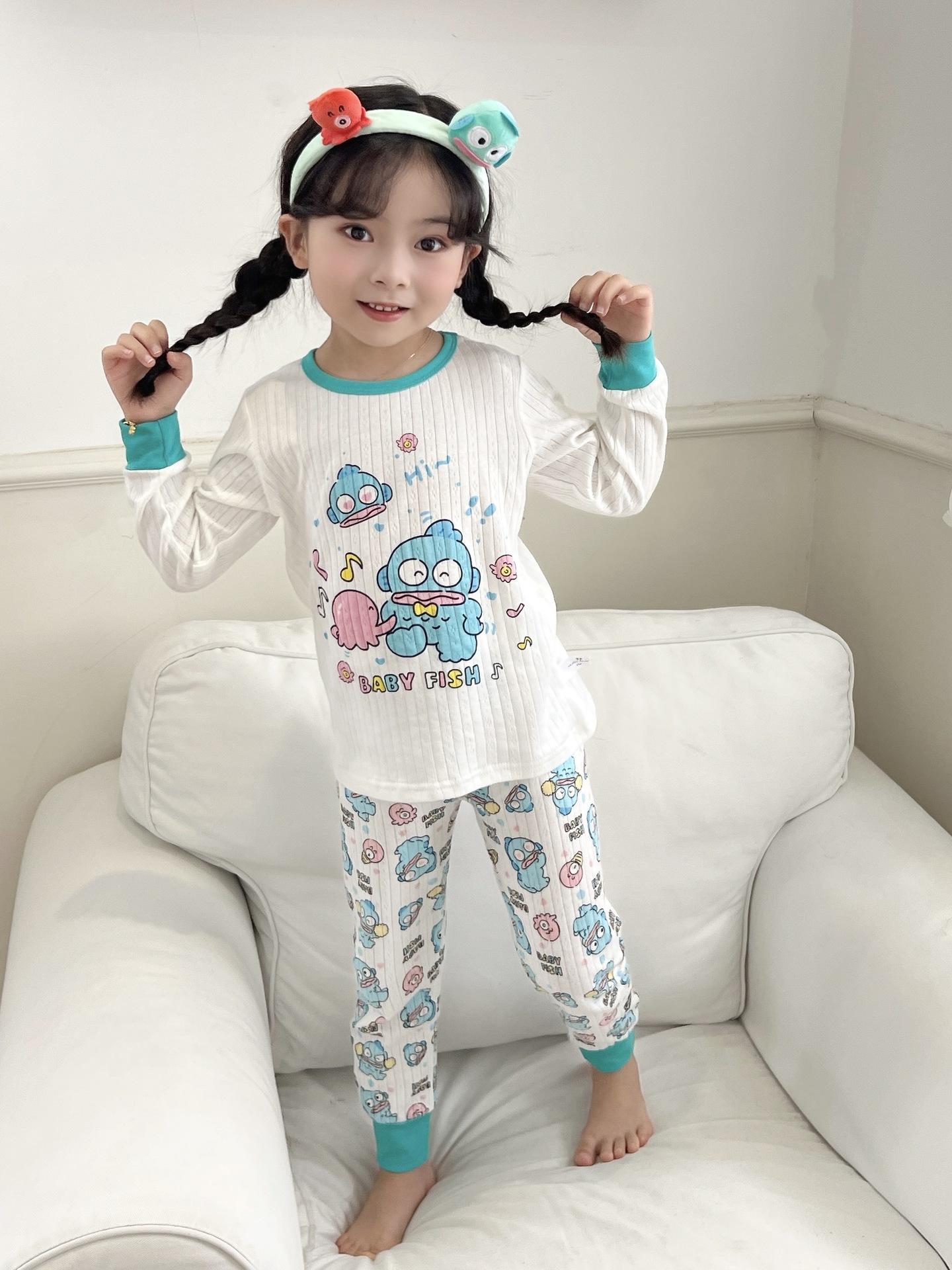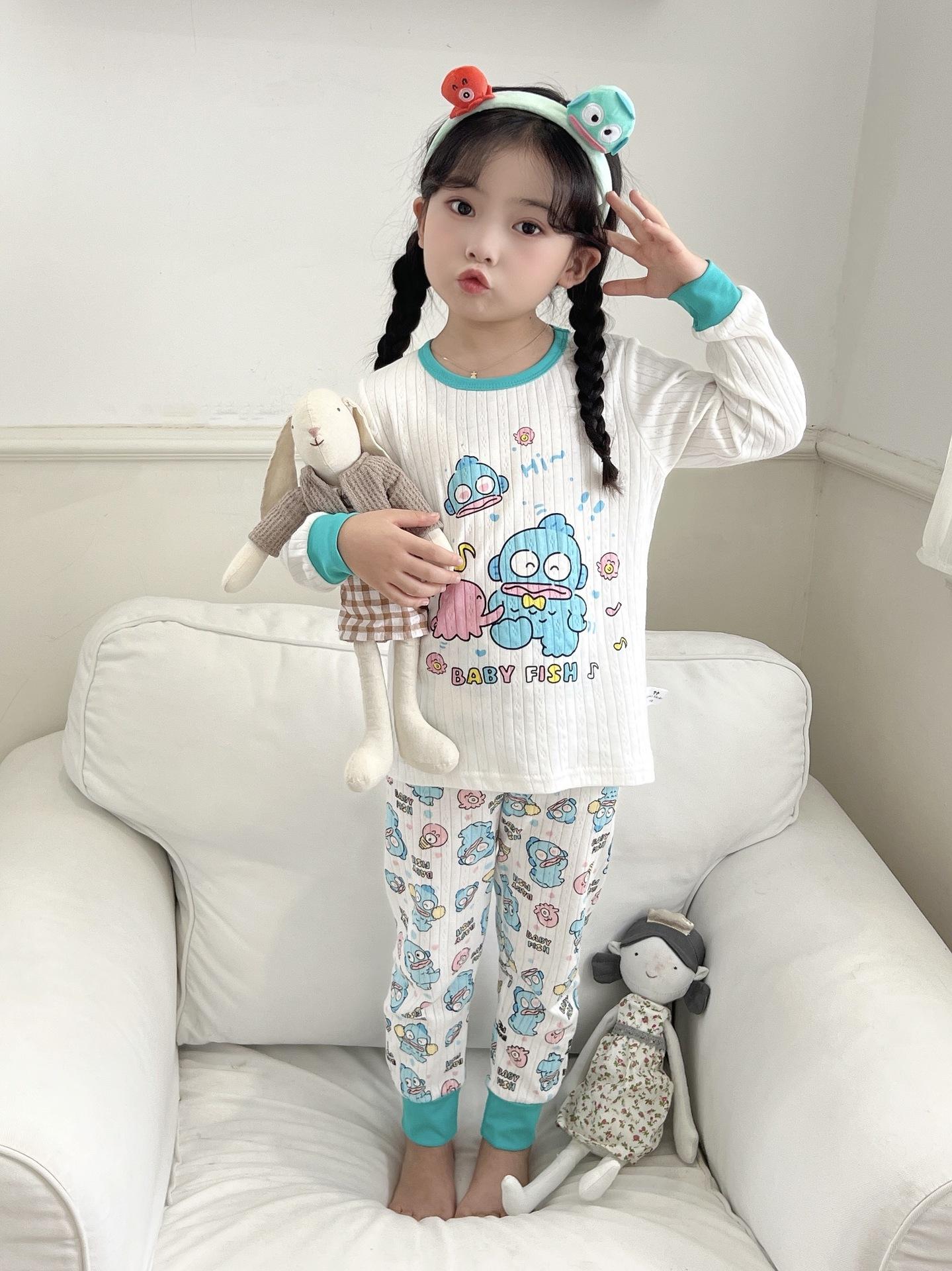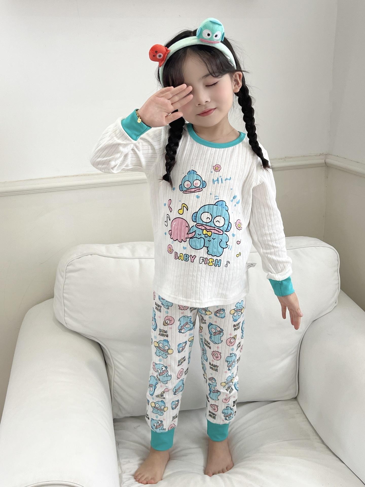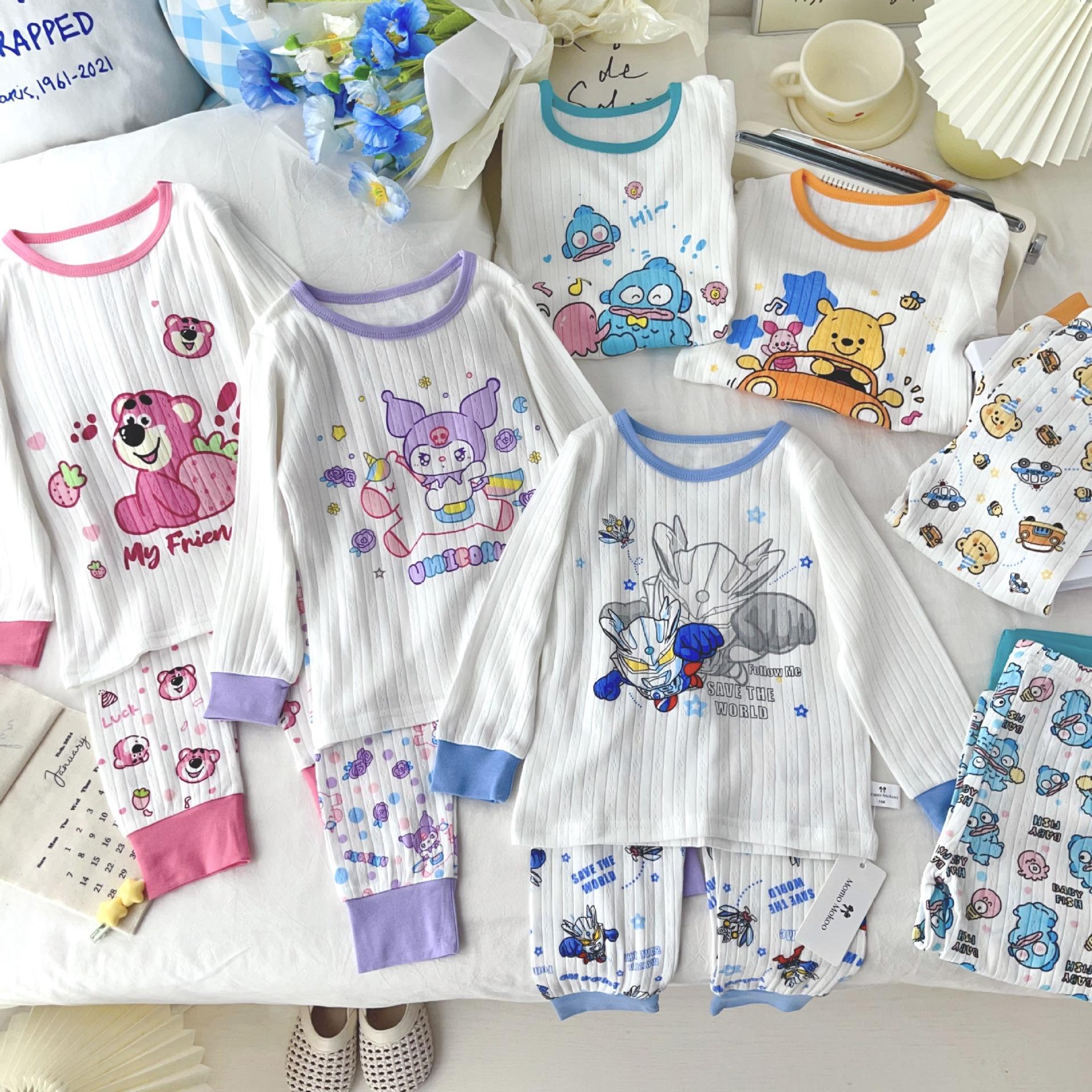 [Algodón Transpirable de Doble Capa] 24 Otoño Nuevo Conjunto de Ropa para el Hogar de Algodón Puro para Niños y Niñas, Pijama de Manga Larga, Ropa de Otoño