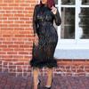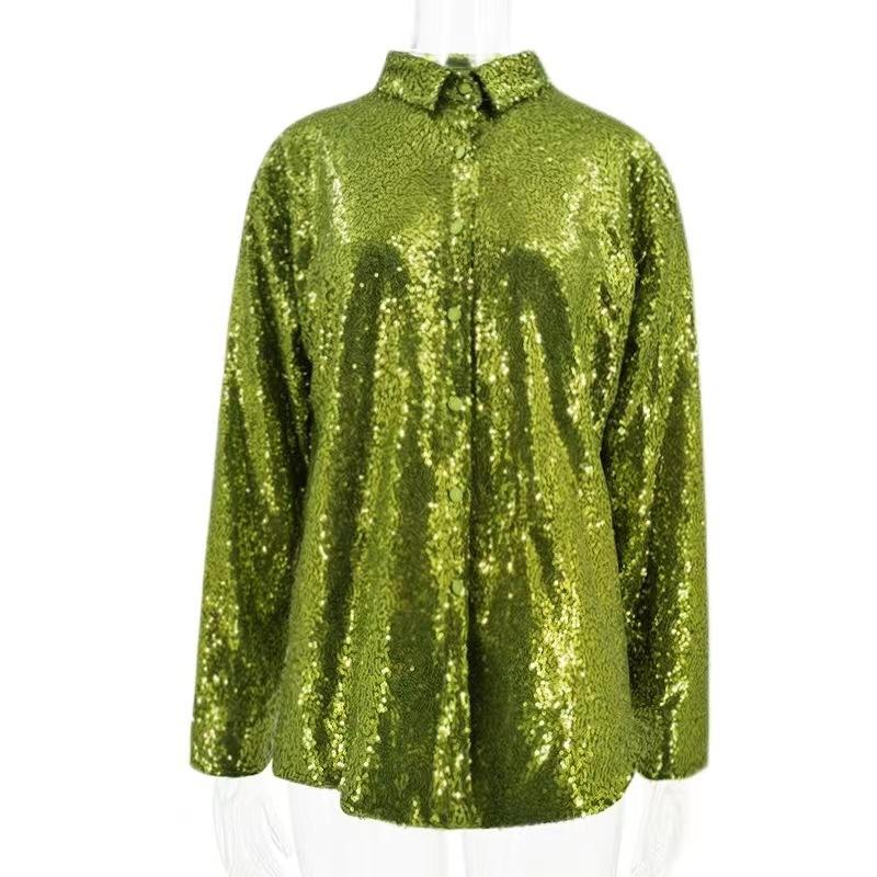 Top europeo y americano para mujer, comercio exterior, moda de otoño, temperamento, solapa de lentejuelas, vestido camisero de manga larga, nuevo Amazon