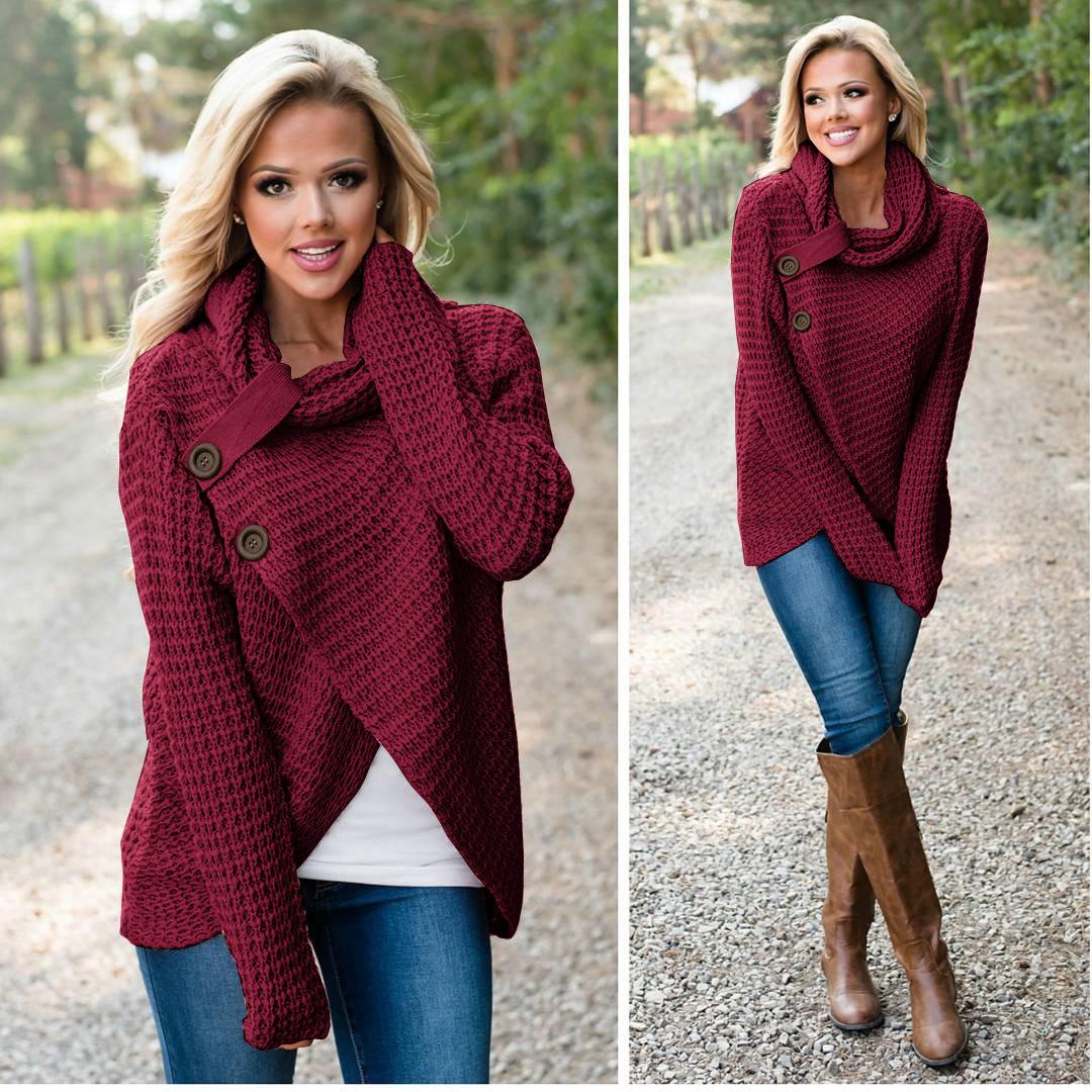 deseo Amazon eBay transfronterizo europeo y americano más vendido para mujer otoño e invierno manga larga versátil manga larga tops de punto suéteres