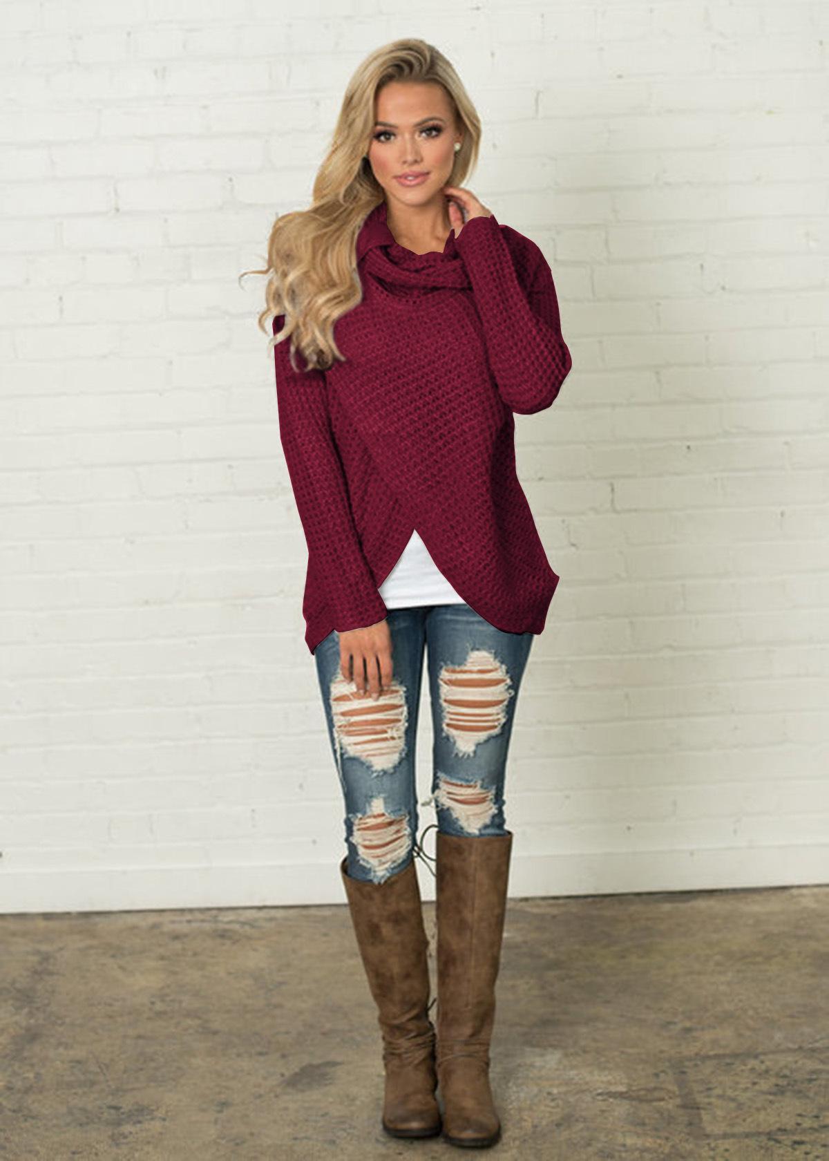 Deseo Amazon Ebay Transfronterizo Europeo y Americano Nuevo Otoño e Invierno para Mujer Manga Larga Versátil Manga Larga Tejido Top Suéter
