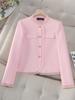 Abrigo Rosa Estilo Chanel para Mujer 2025 Nuevo Primavera y Otoño Damas Elegante Traje Corto Pequeño Moda Top con Ribete de Oreja
