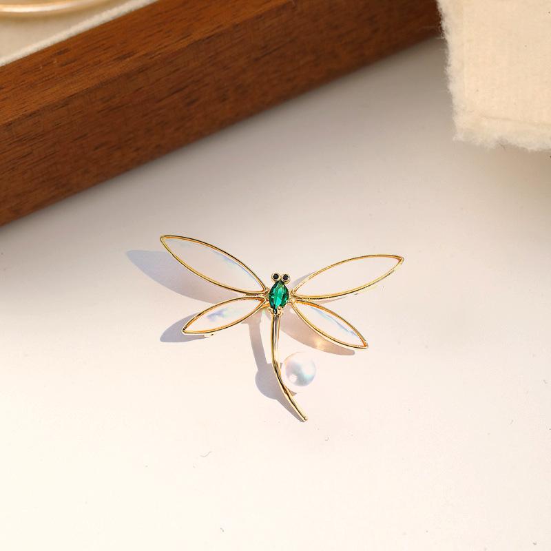 Broche para Mujer, Corsage de Libélula de Perla de Agua Dulce a la Moda, Pin Pequeño Elegante de Nicho Simple para Fijación de Traje