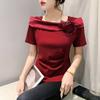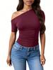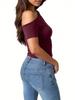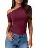 Las blusas de hombros descubiertos de color sólido y manga corta para mujer son modernas y adecuadas para el verano. Tops burdeos