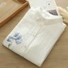 2024 Otoño Nuevo Camisa de Manga Larga de Hilo de Algodón de Doble Capa para Mujer Holgada Combinable Artística Suave Camisa de Mujer