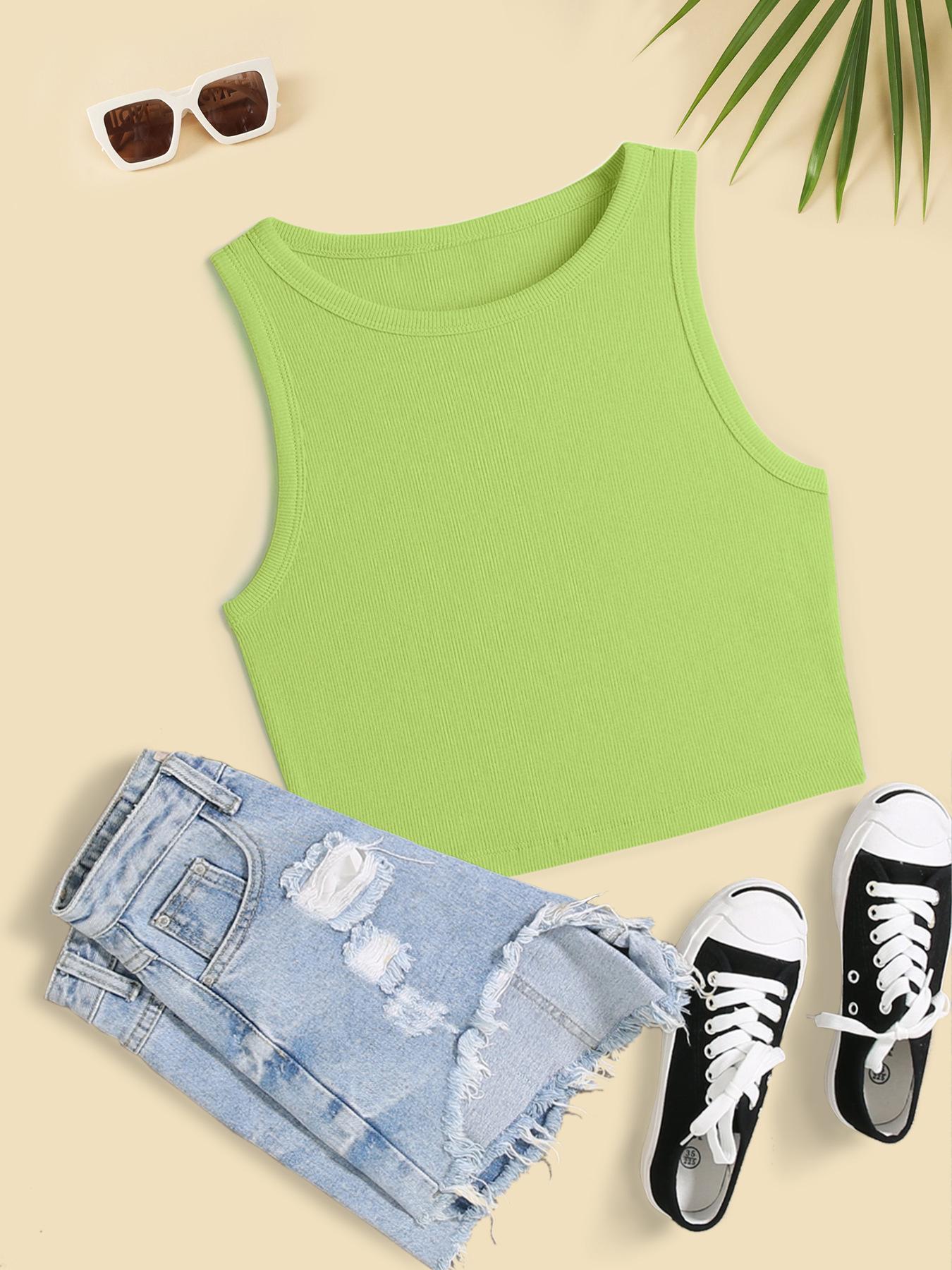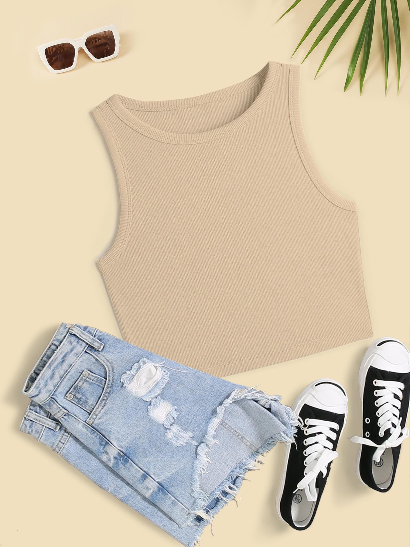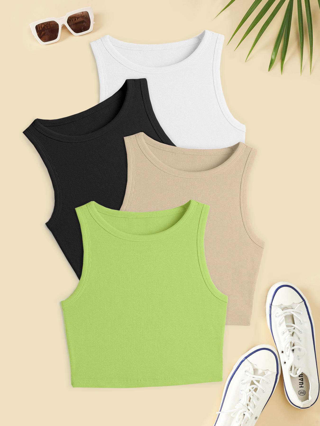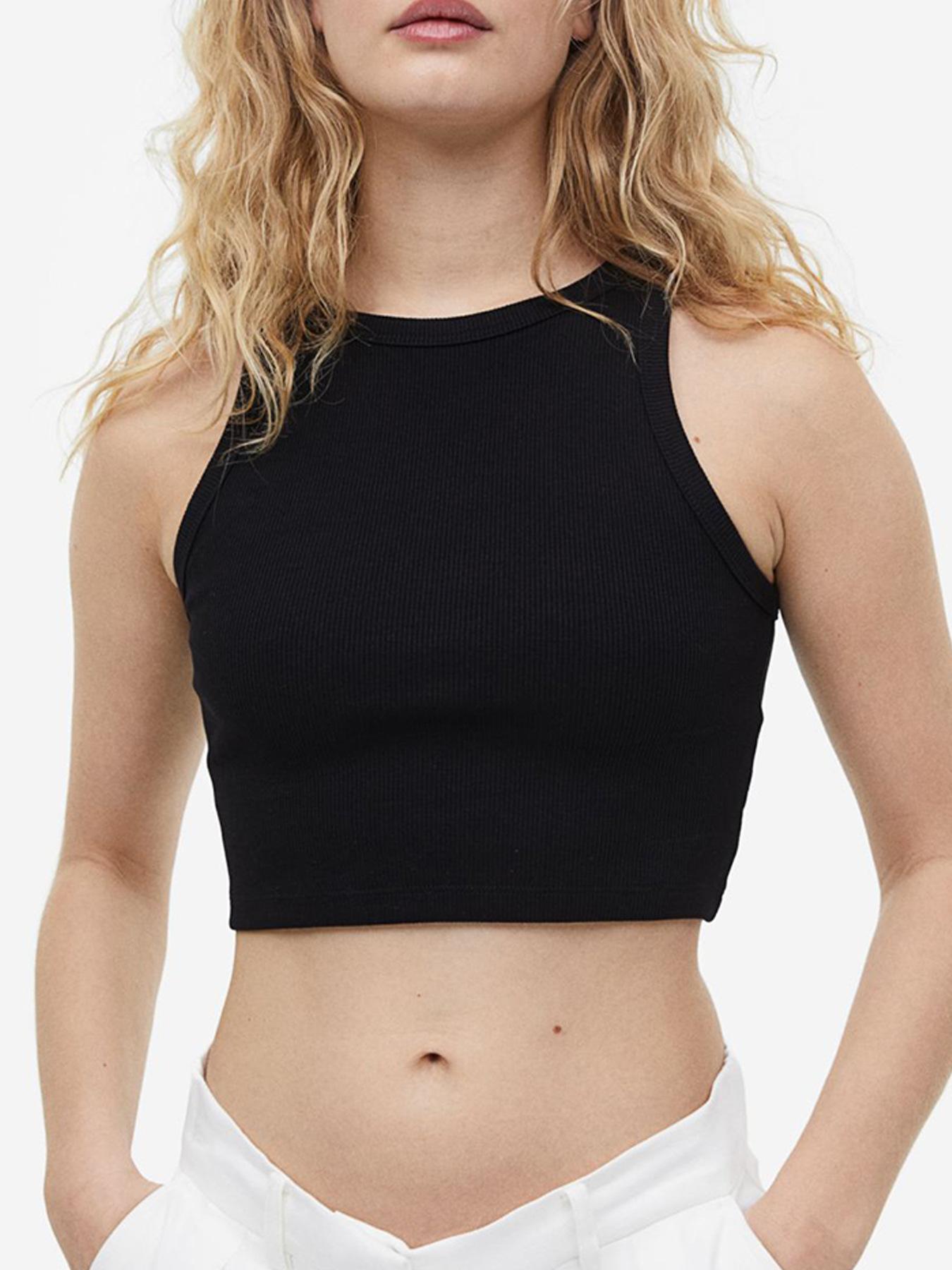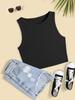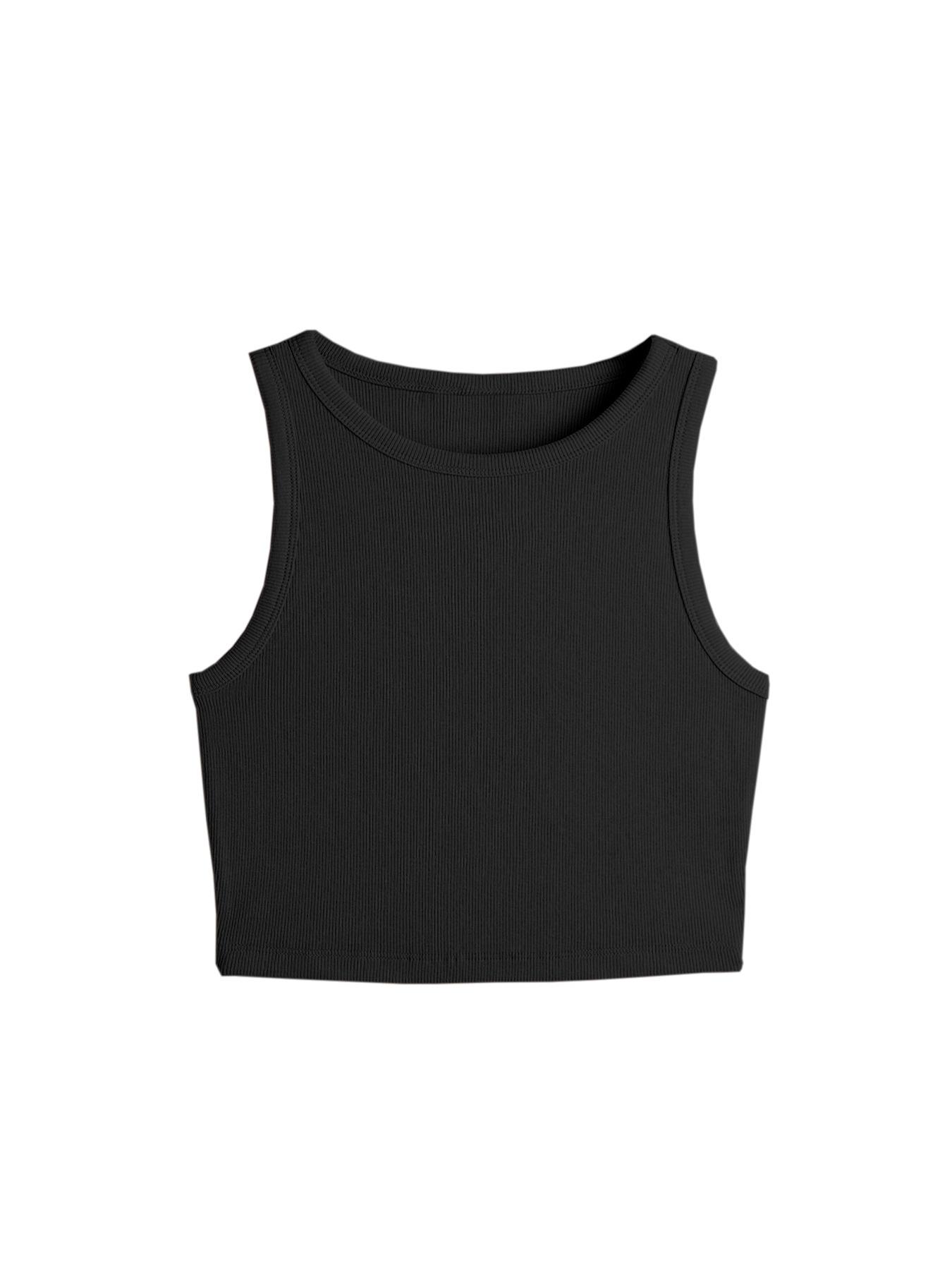 Chaleco Sexy Popular sin Mangas para Mujer Transfronterizo Europeo y Americano Multicolor Ajustado Cuello Redondo Sexy Negro Top Corto Chaleco