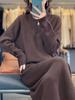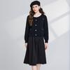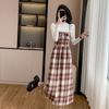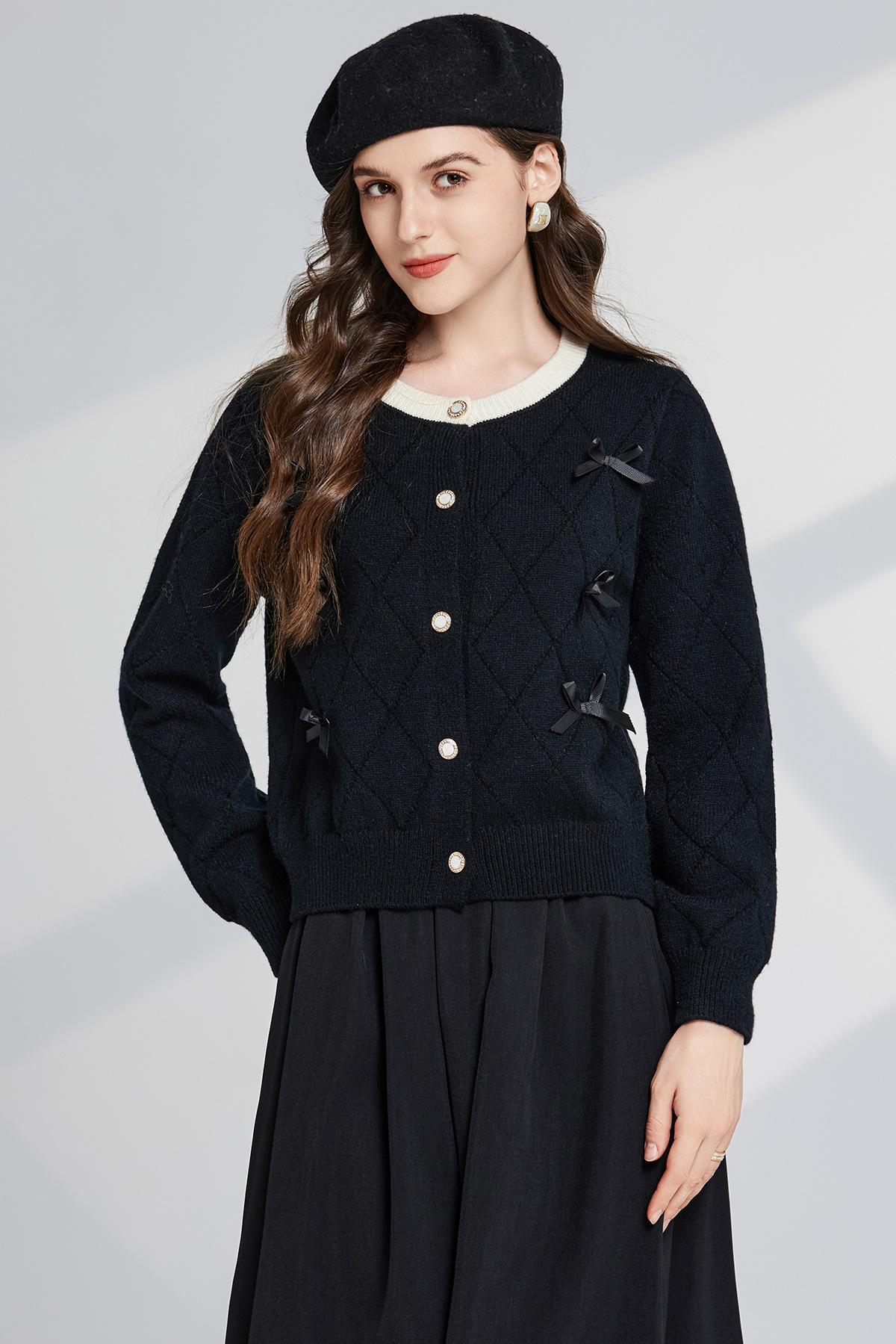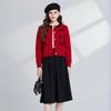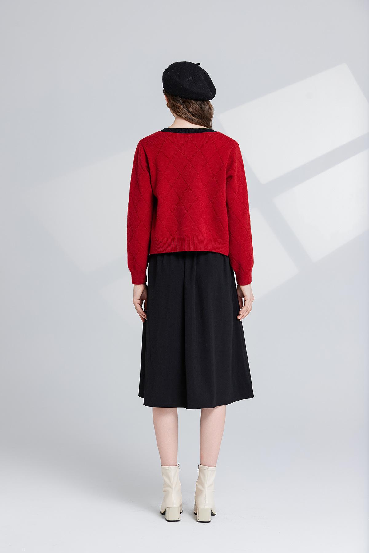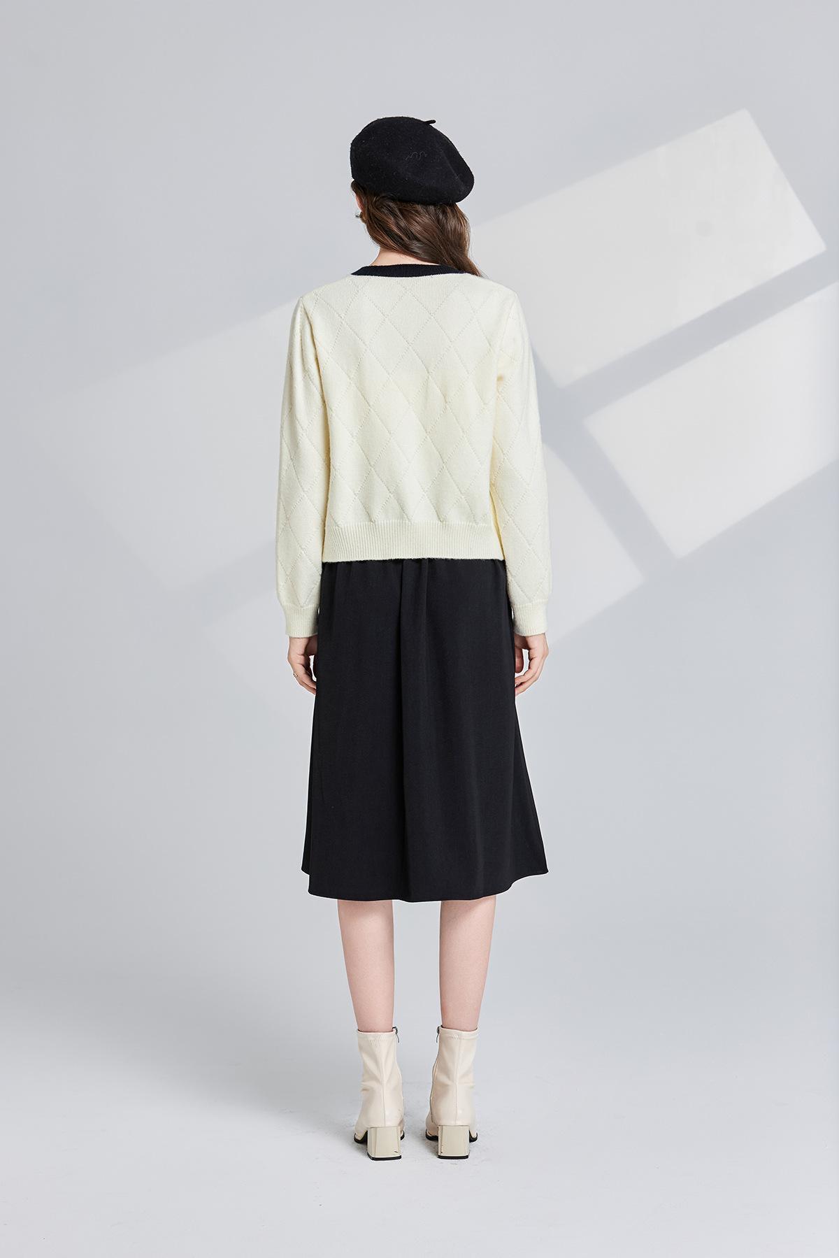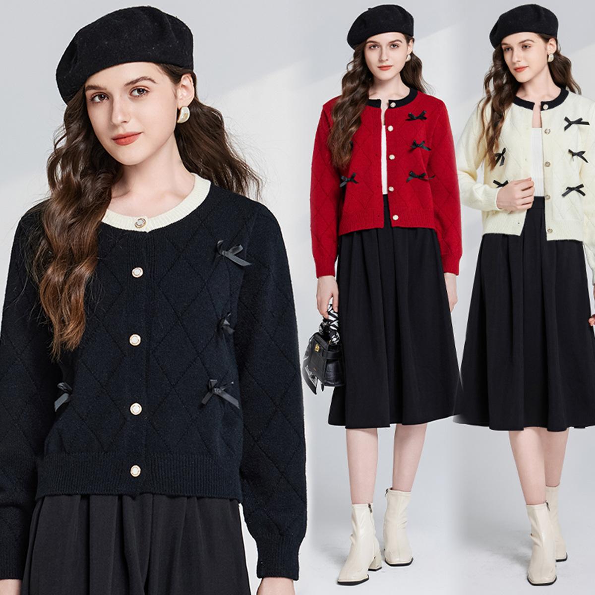 Conjunto de dos piezas de suéter con cuello redondo y falda de cintura alta con lazo y personalidad de otoño e invierno de toma real