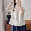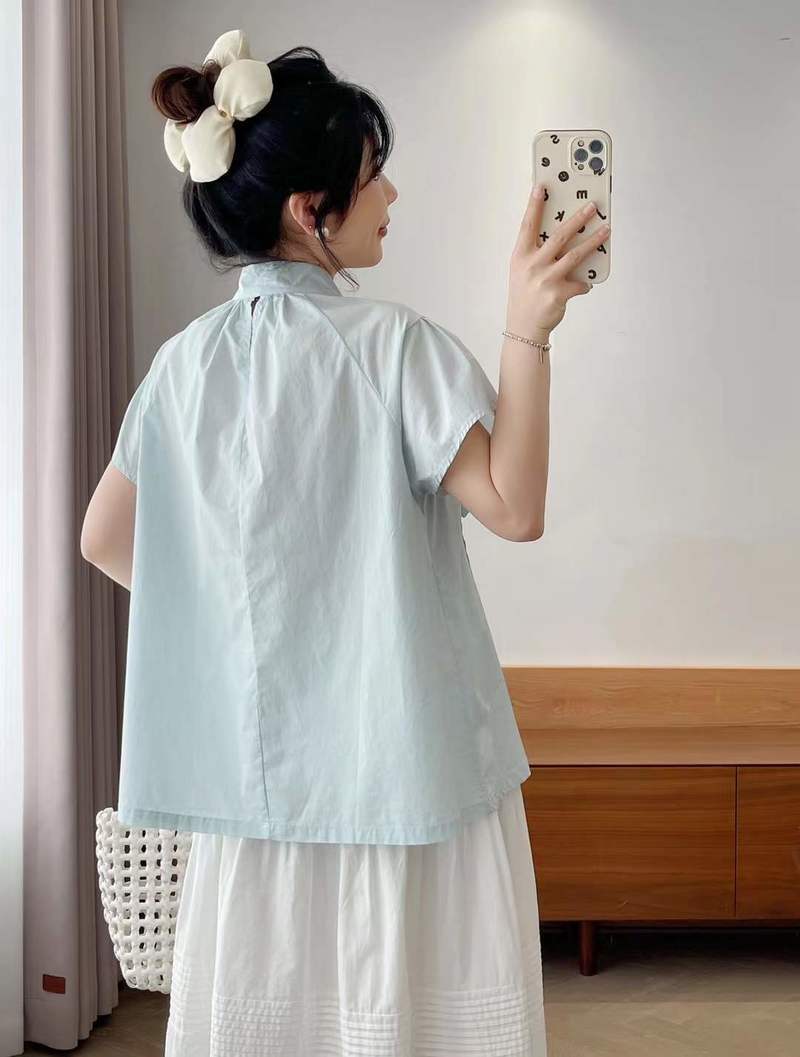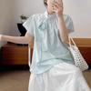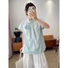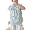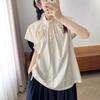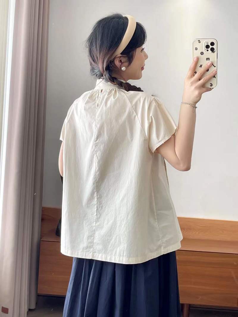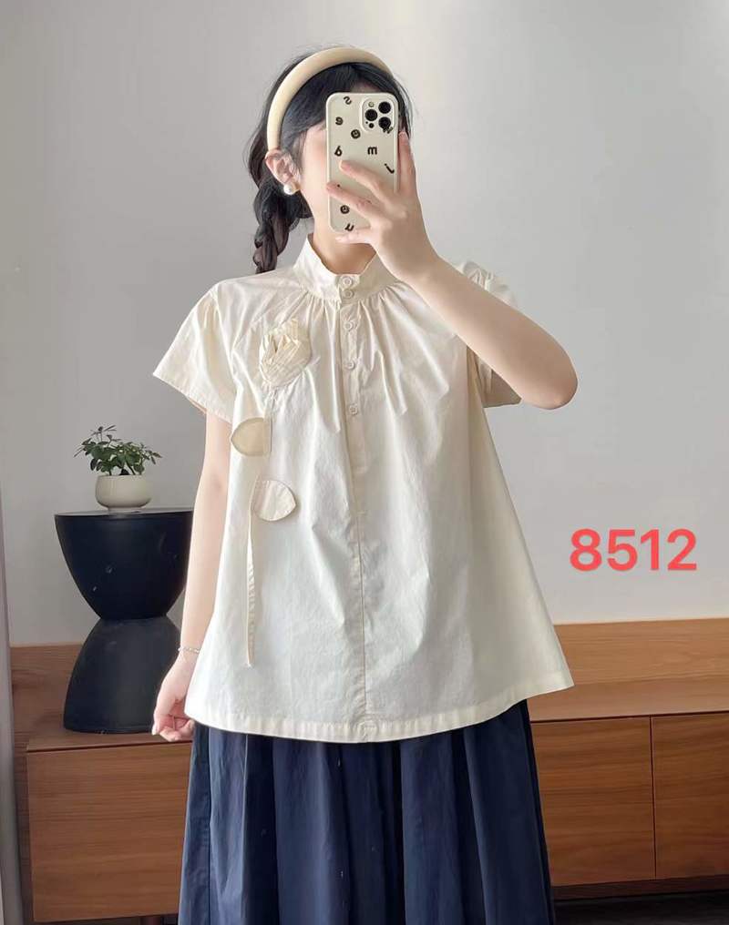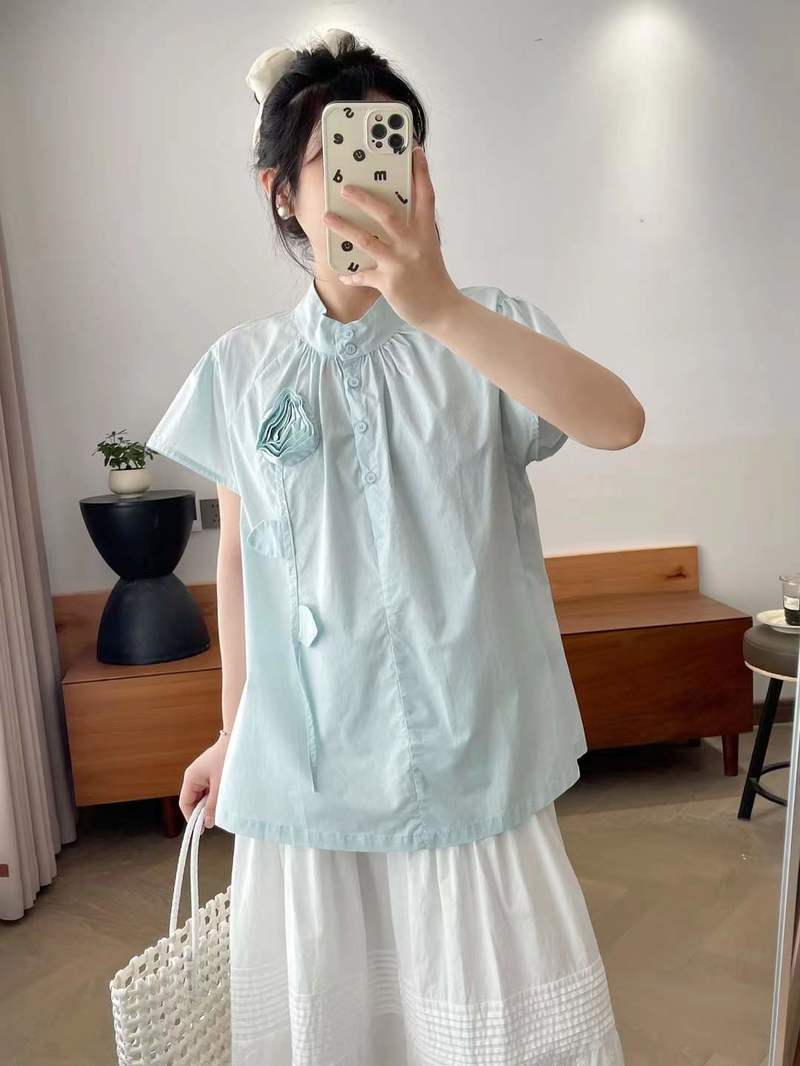 Verano 2025 Nuevo Retro Dulce Cuello Alto Flor Tridimensional Camisa de Manga Corta Suelta Adelgazante Camisa Pulóver Venta al por Mayor