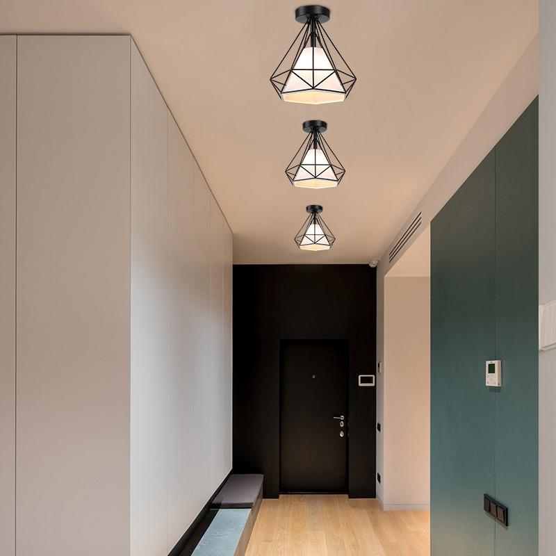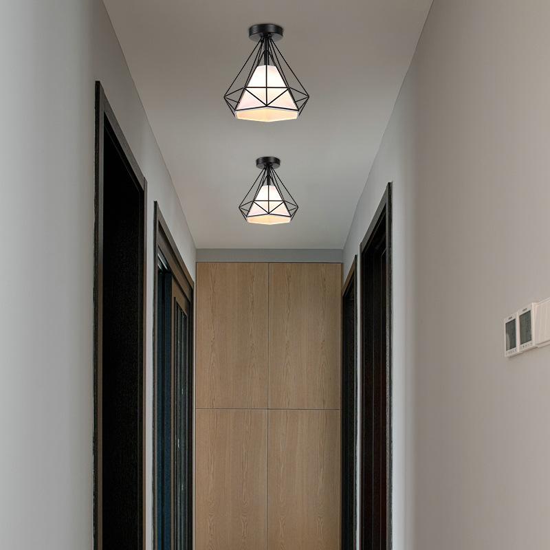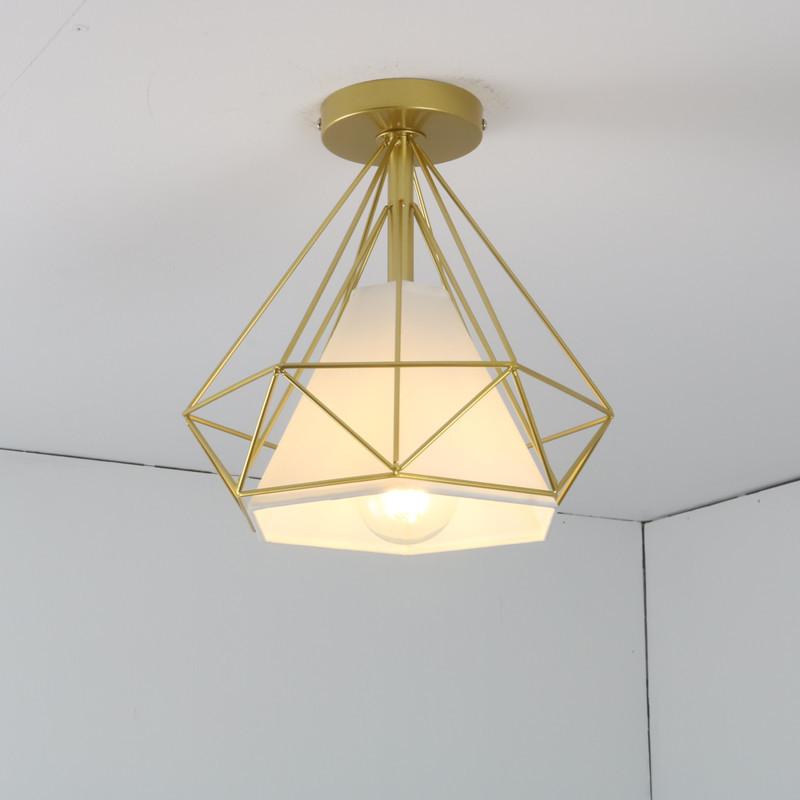 Luz de Techo Creativa Nórdica Marco Diamante Luz de Techo Diamante led Luz para Sala de Estar Retro Hierro Lámparas de Pasillo para Restaurante