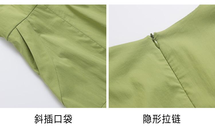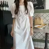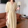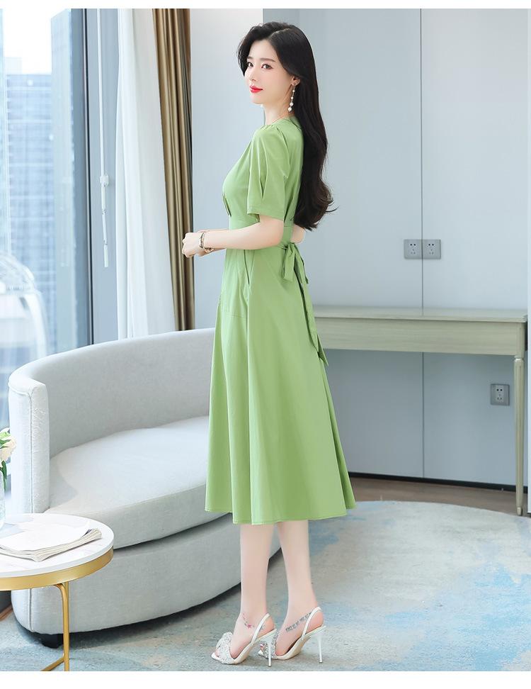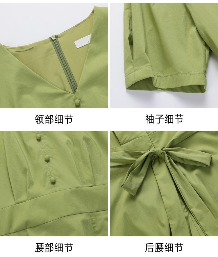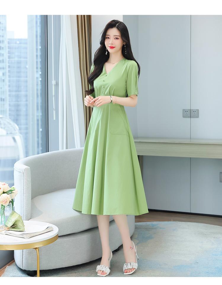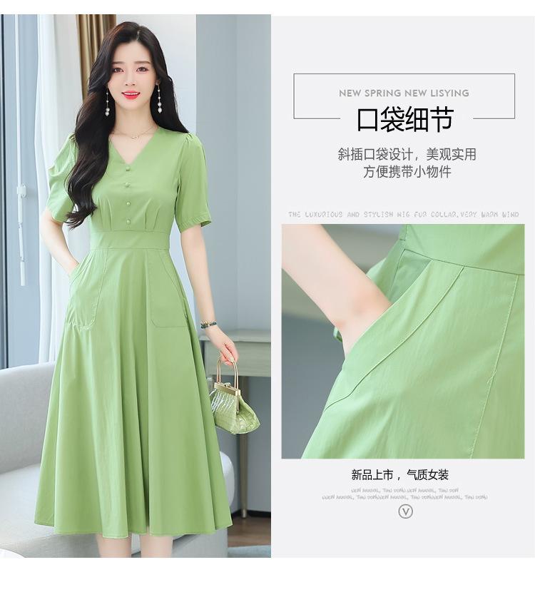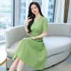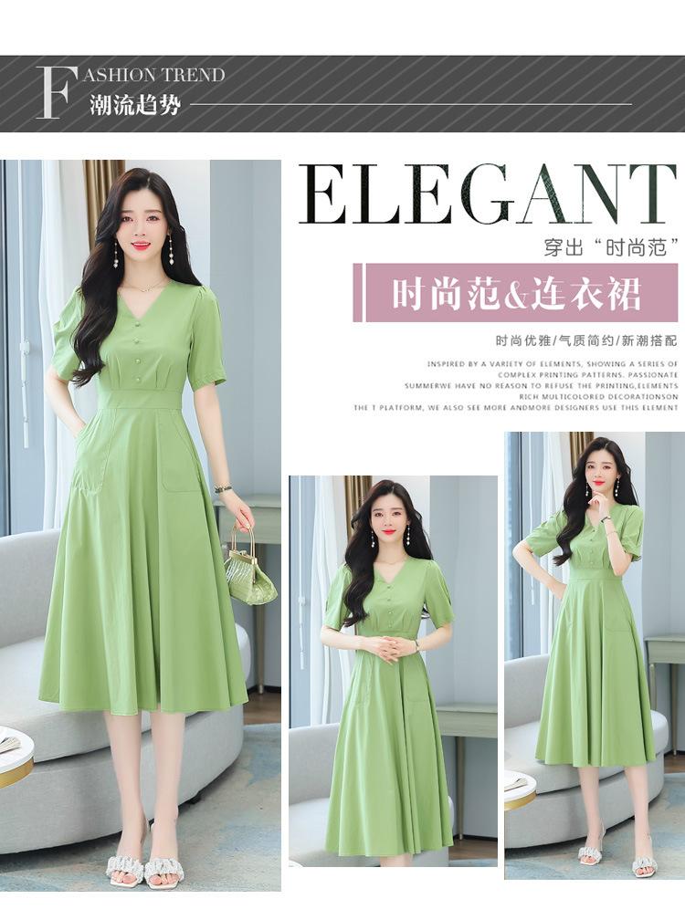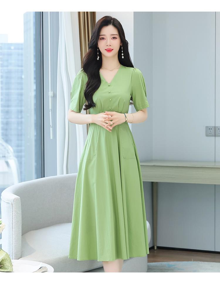 Foto Real de Vestido Retro Francés Blanco Verde Aguacate Primavera y Verano Dulce Cintura Cuello en V Falda Larga Línea A