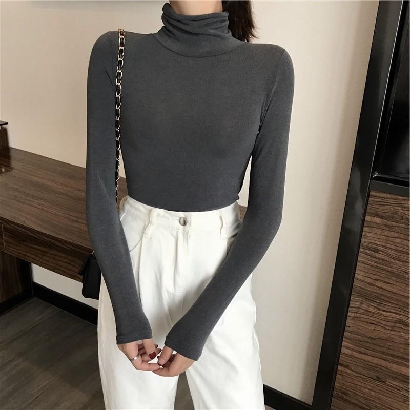 Mayoreo 2025 Color Puro Primavera Temprana Camiseta Básica de Cuello Alto para Mujer, Versátil Camiseta Interior de Manga Larga Estilo Coreano para Mujer, Top Ajustado