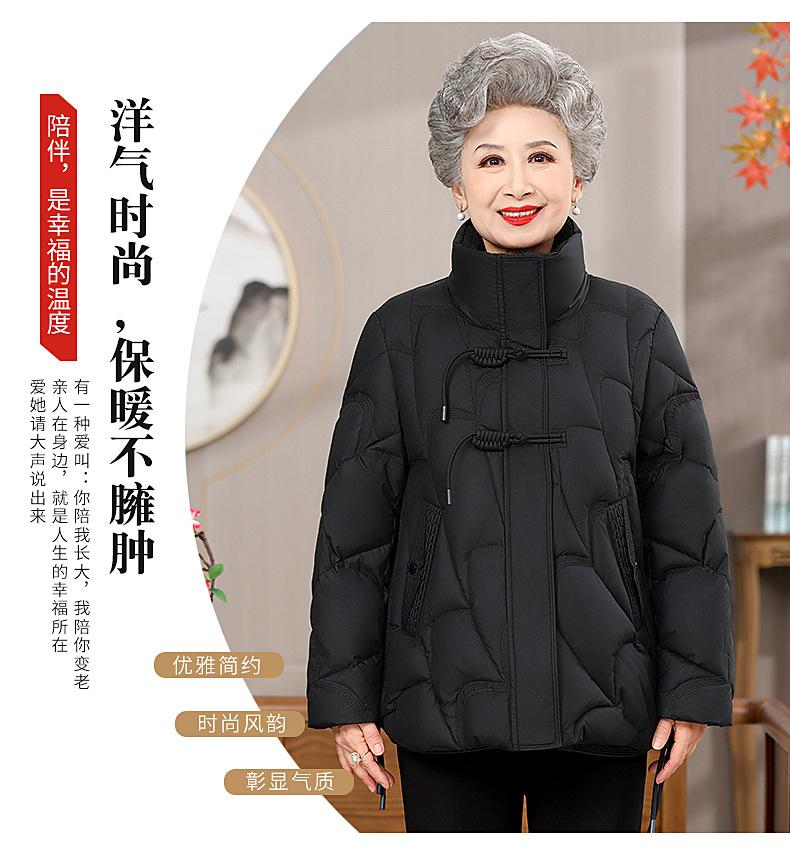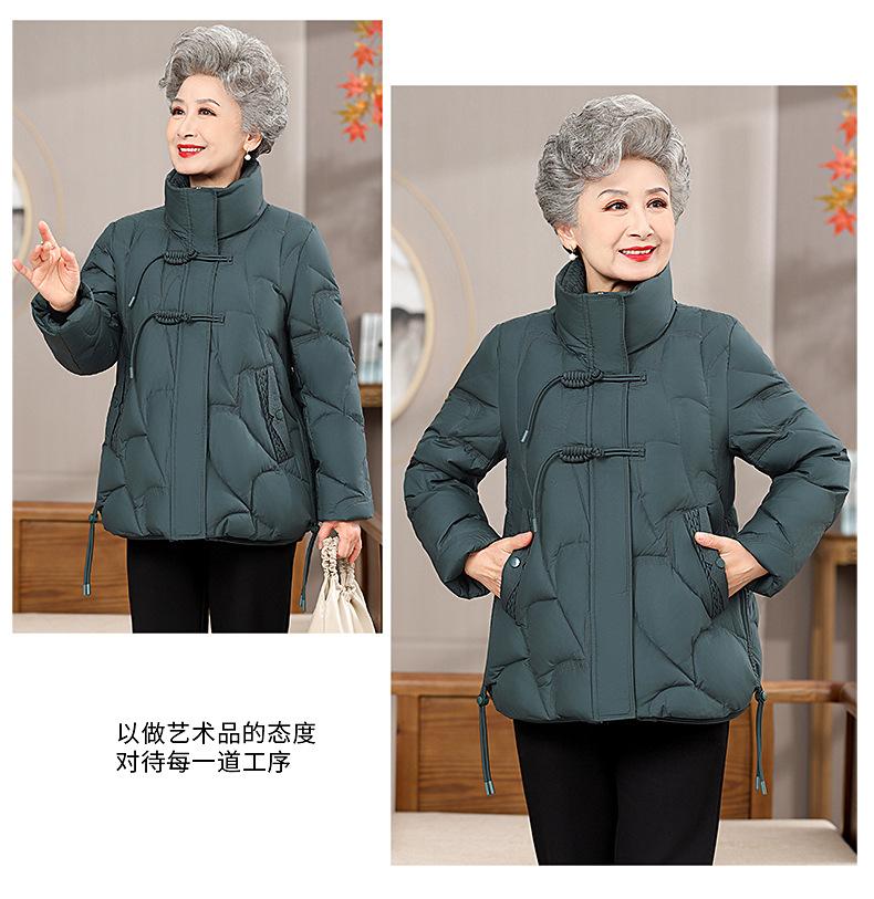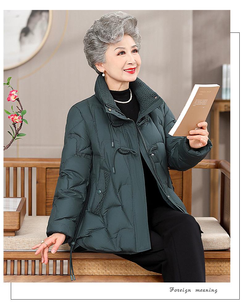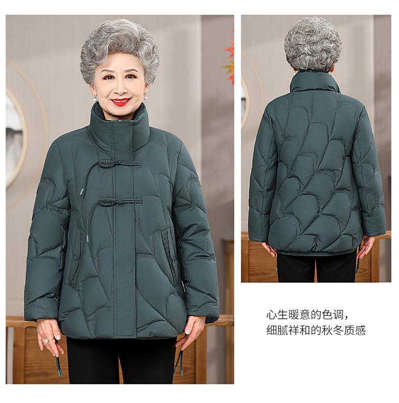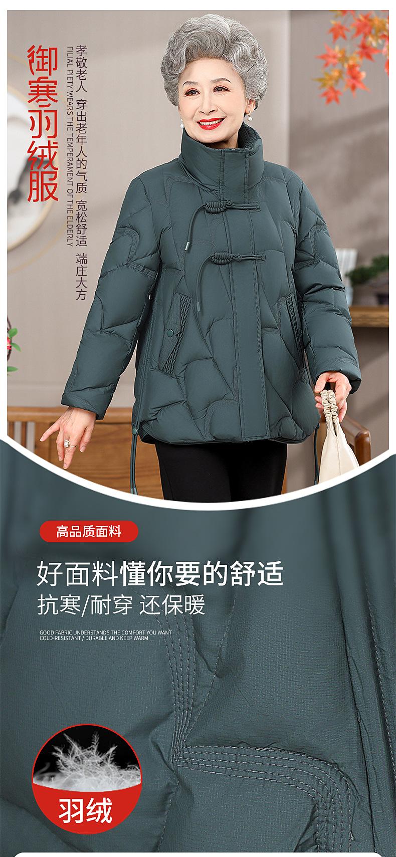 Chaqueta corta de plumón de invierno para mujeres de mediana edad y mayores, chaqueta noble de plumón de pato blanco de la abuela, ropa de invierno gruesa a prueba de frío para madres