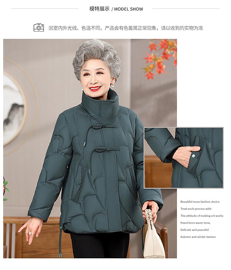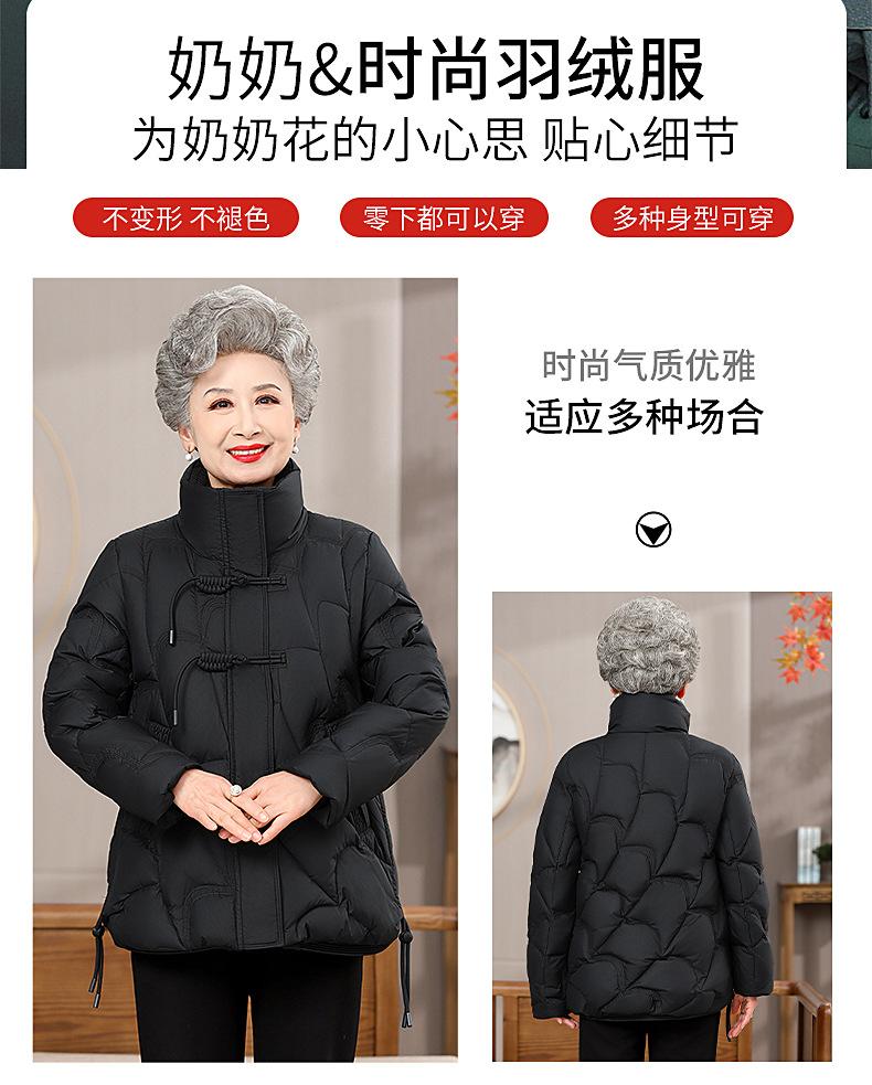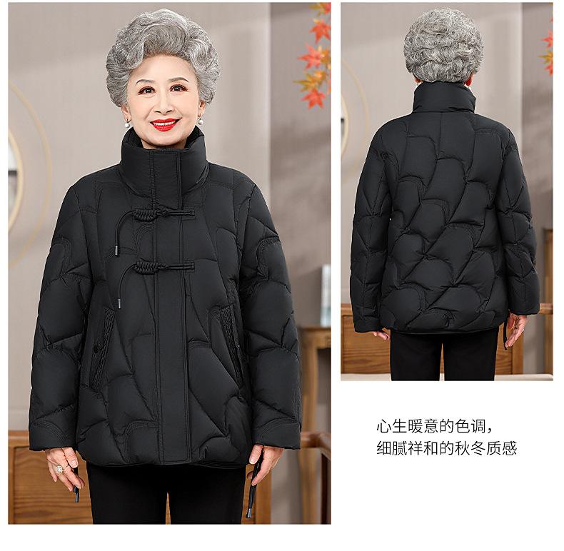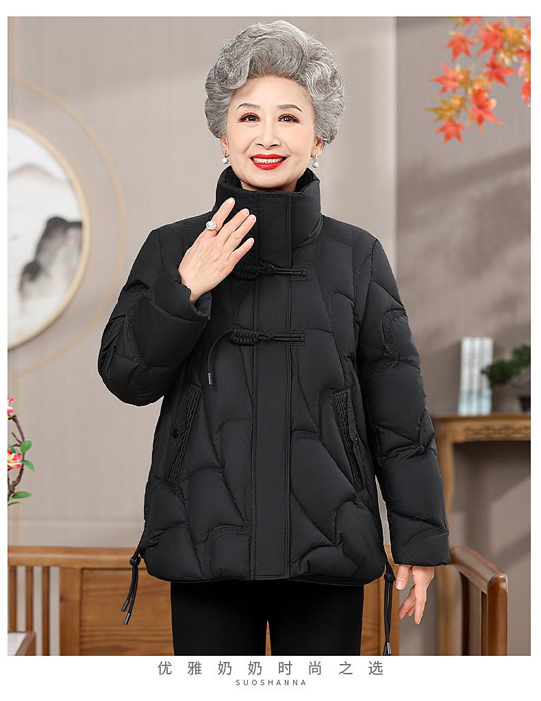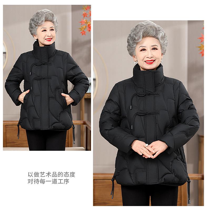 Chaqueta corta de plumón de invierno para mujeres de mediana edad y mayores, chaqueta noble de plumón de pato blanco de la abuela, ropa de invierno gruesa a prueba de frío para madres