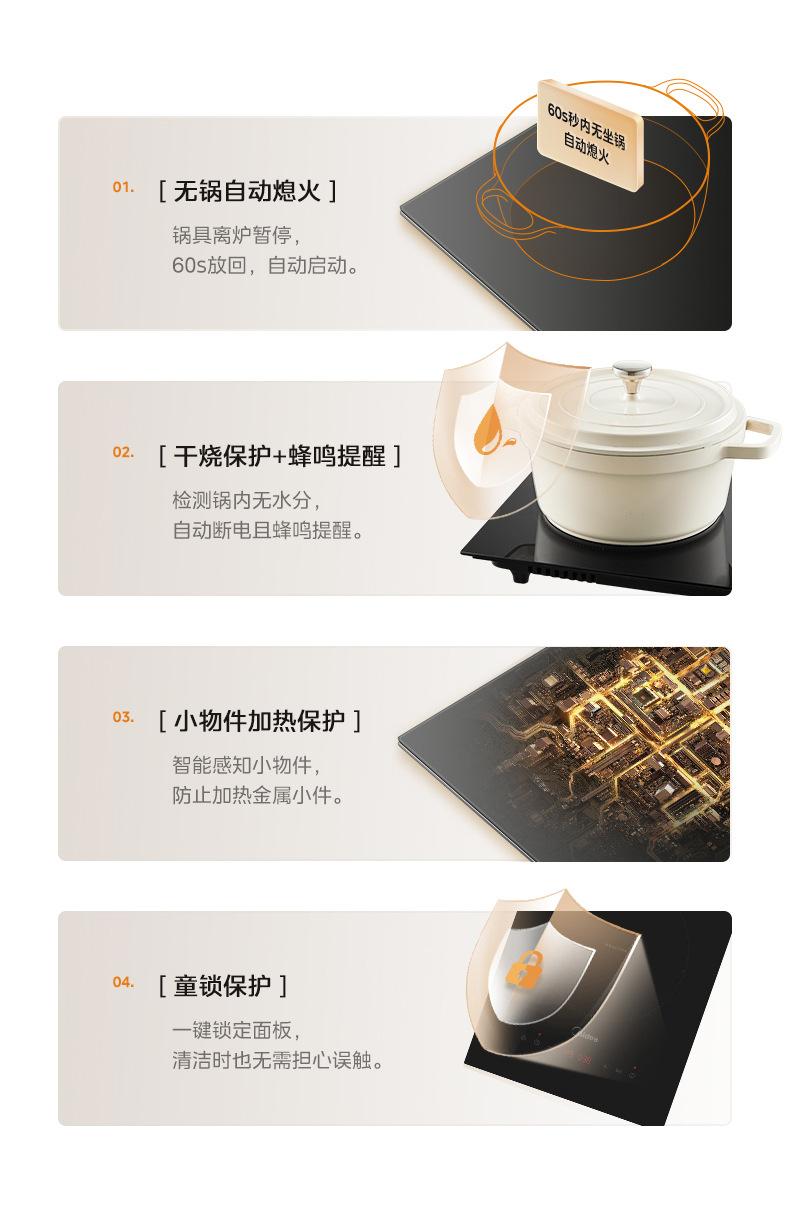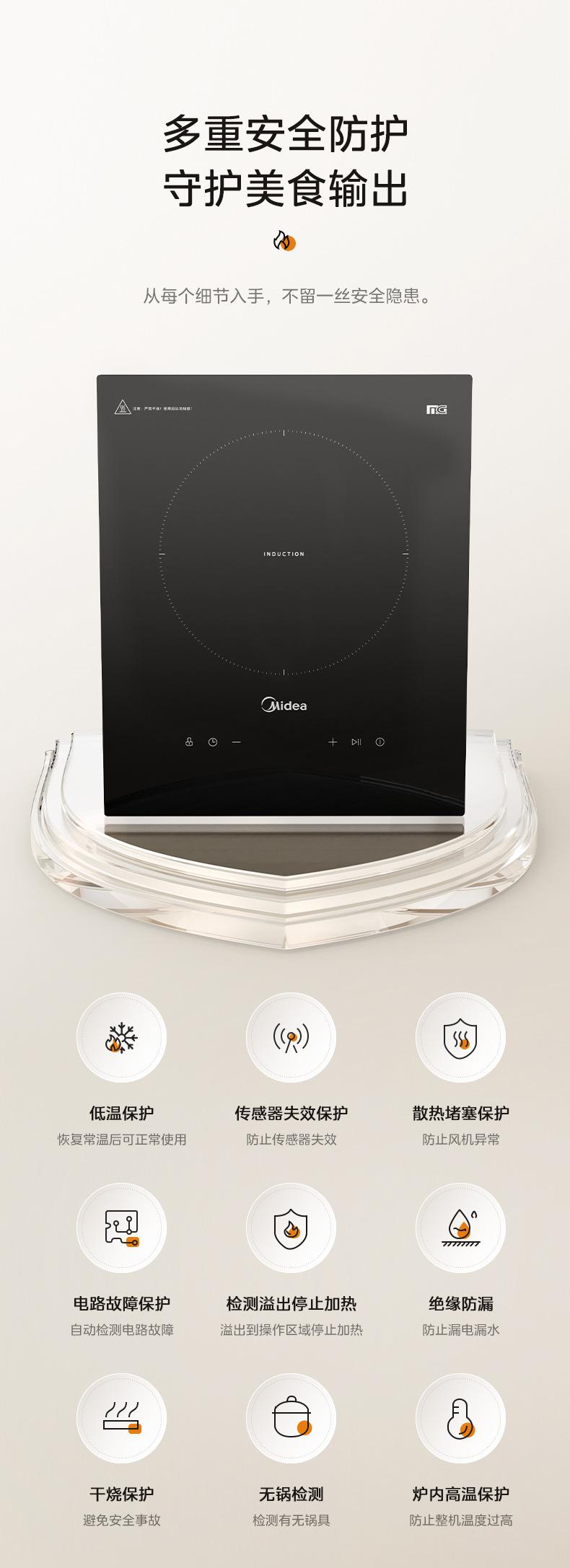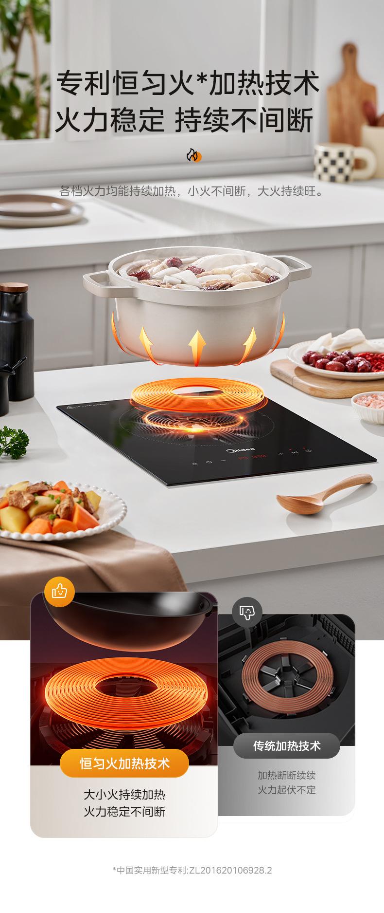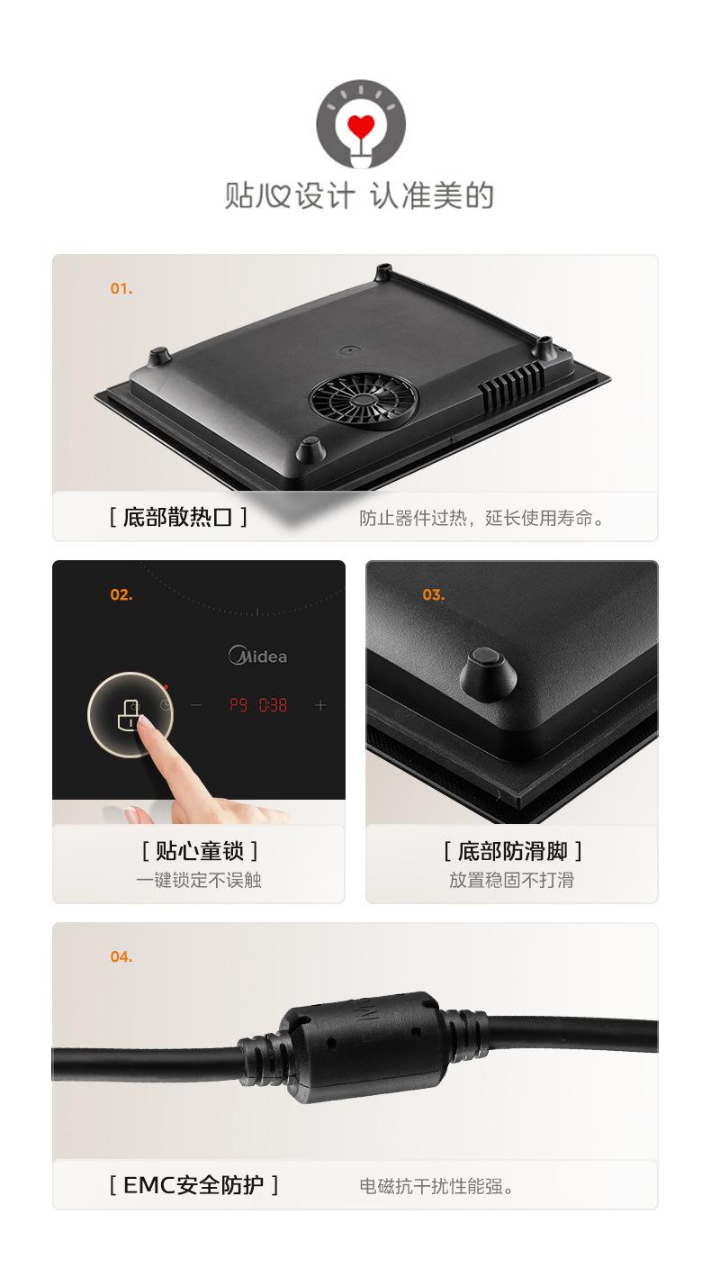 Midea Mc-Dz22S04E Cocina de Inducción Un Quemador Empotrable para Hogar Alta Potencia Apartamento Cocina de Inducción Empotrada