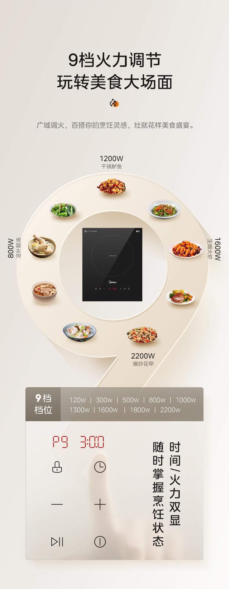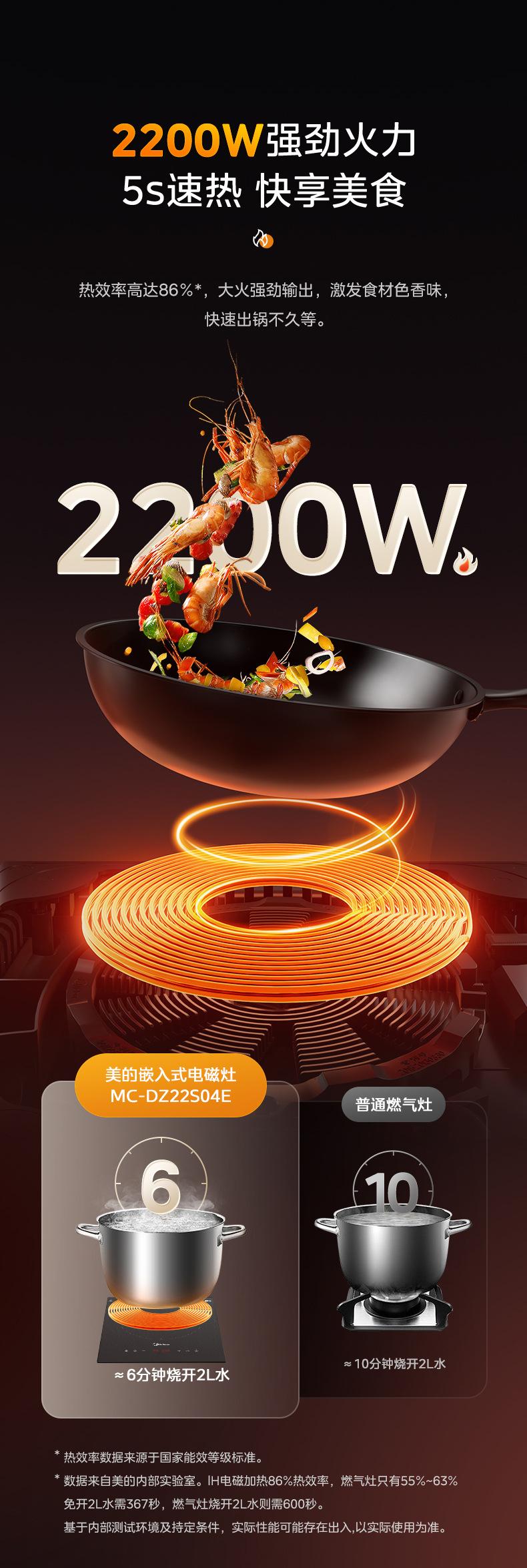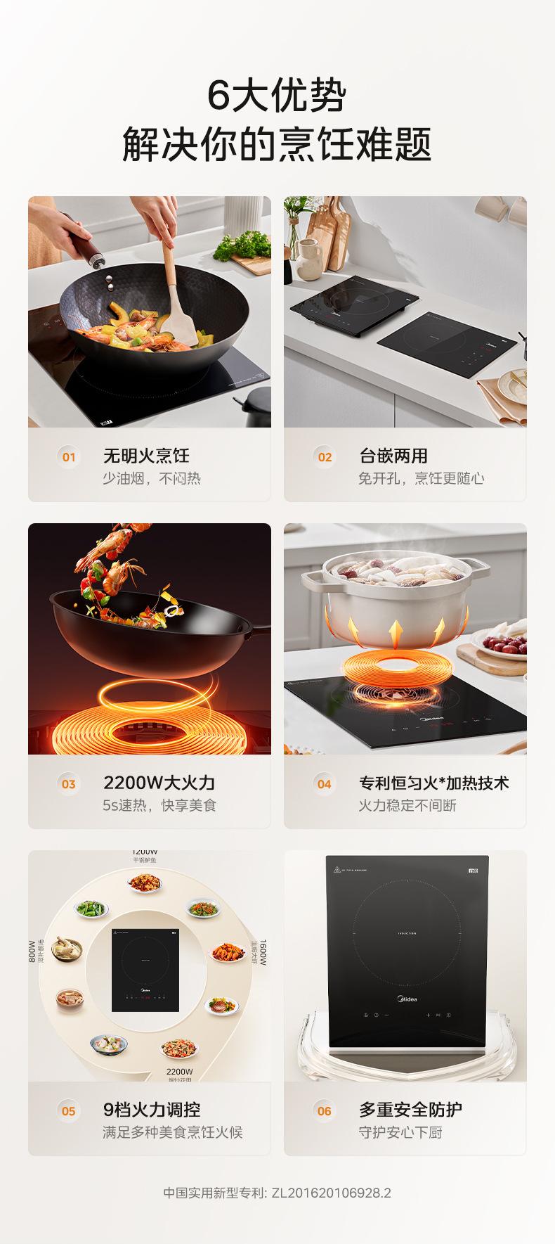 Midea Mc-Dz22S04E Cocina de Inducción Un Quemador Empotrable para Hogar Alta Potencia Apartamento Cocina de Inducción Empotrada