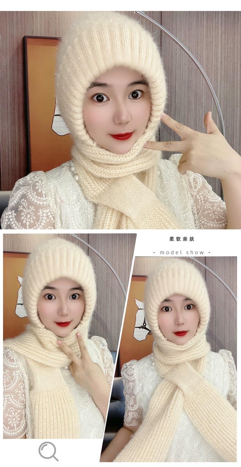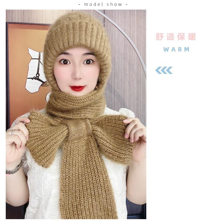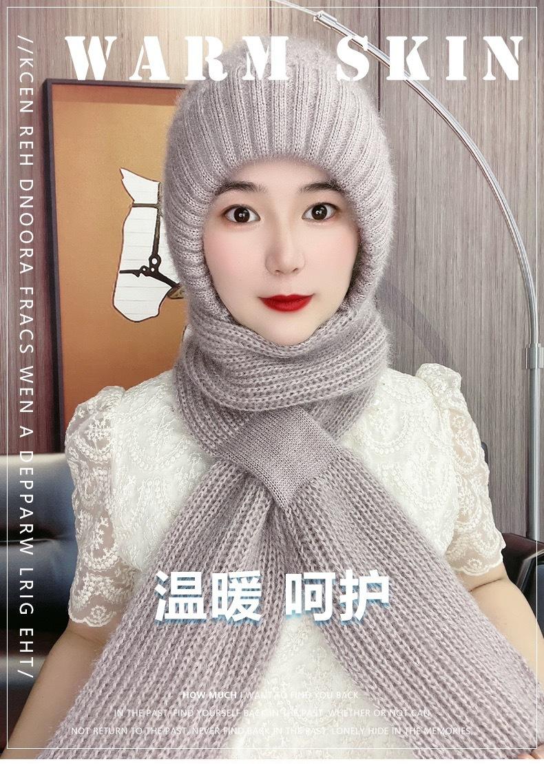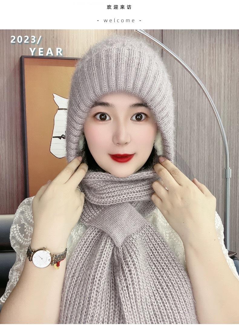 Gorro de Invierno Cálido para Viento y Nieve para Mujer, Gorro de Lana Tejida, Bufanda para Cuello Exterior a Prueba de Viento y Frío, Lana Imitación