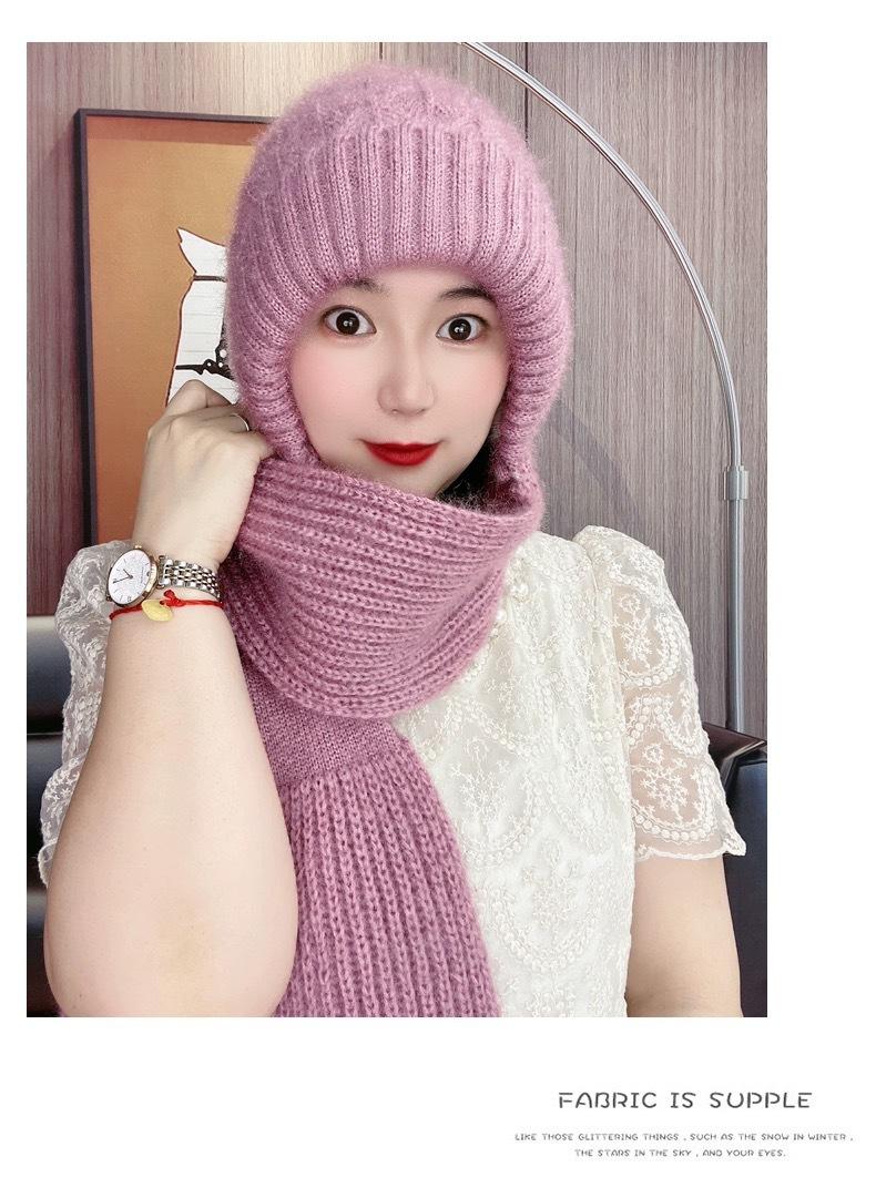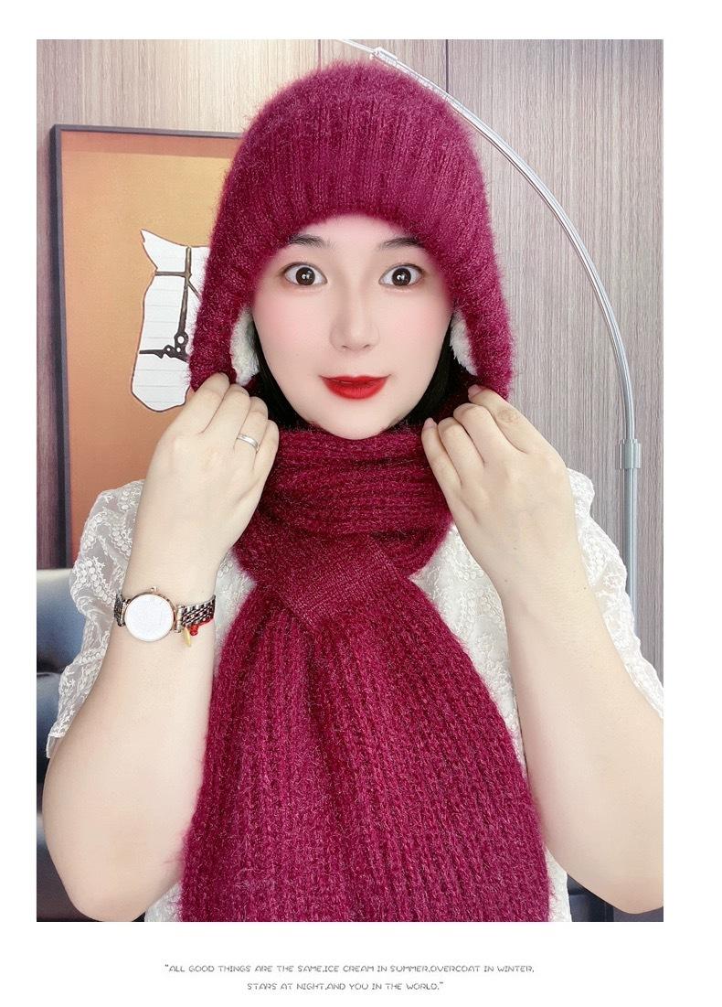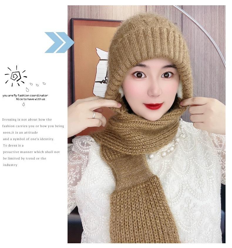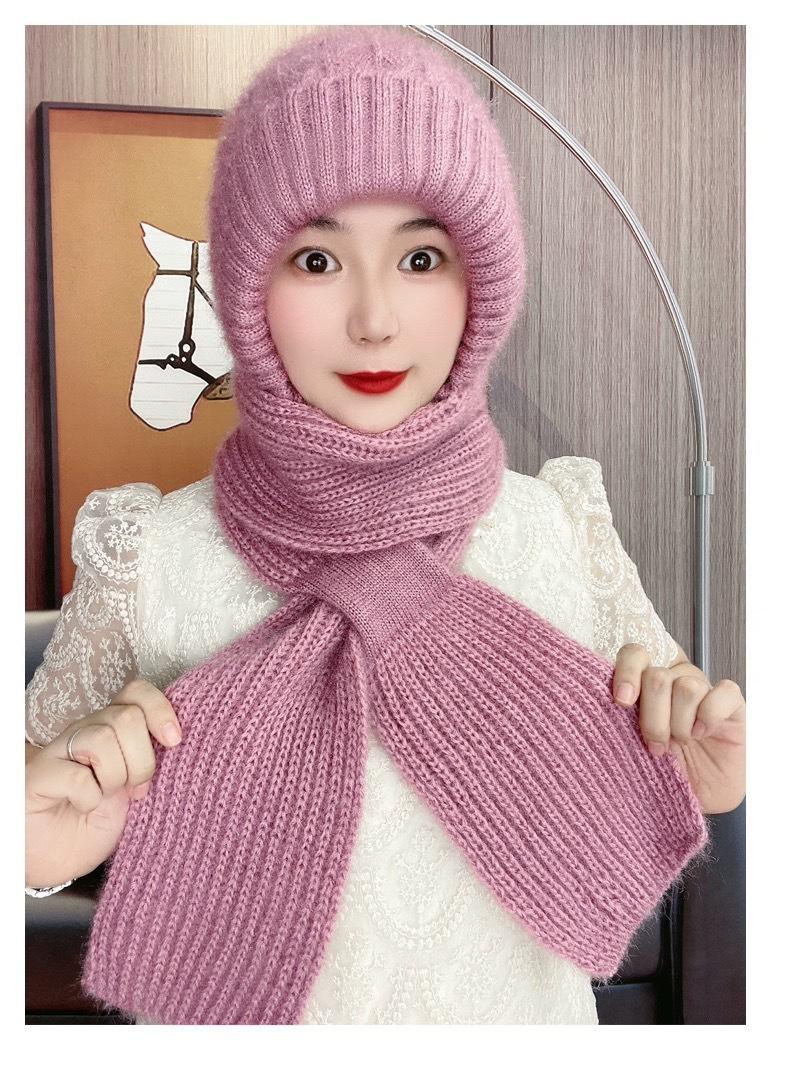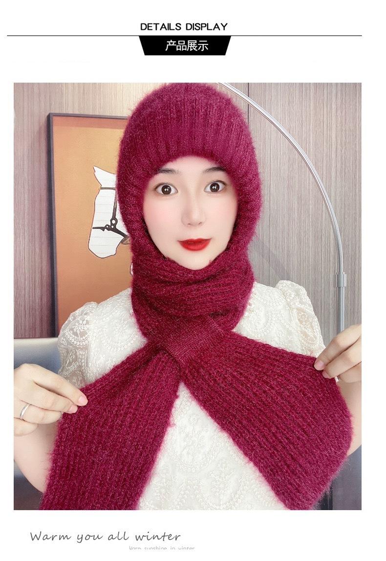 Gorro de Invierno Cálido para Viento y Nieve para Mujer, Gorro de Lana Tejida, Bufanda para Cuello Exterior a Prueba de Viento y Frío, Lana Imitación