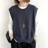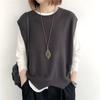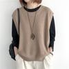 Chaleco de Punto para Mujer Primavera y Otoño Color Sólido Suelto Cuello Redondo Irregular Jersey Chaleco Corto Chaleco Exterior