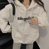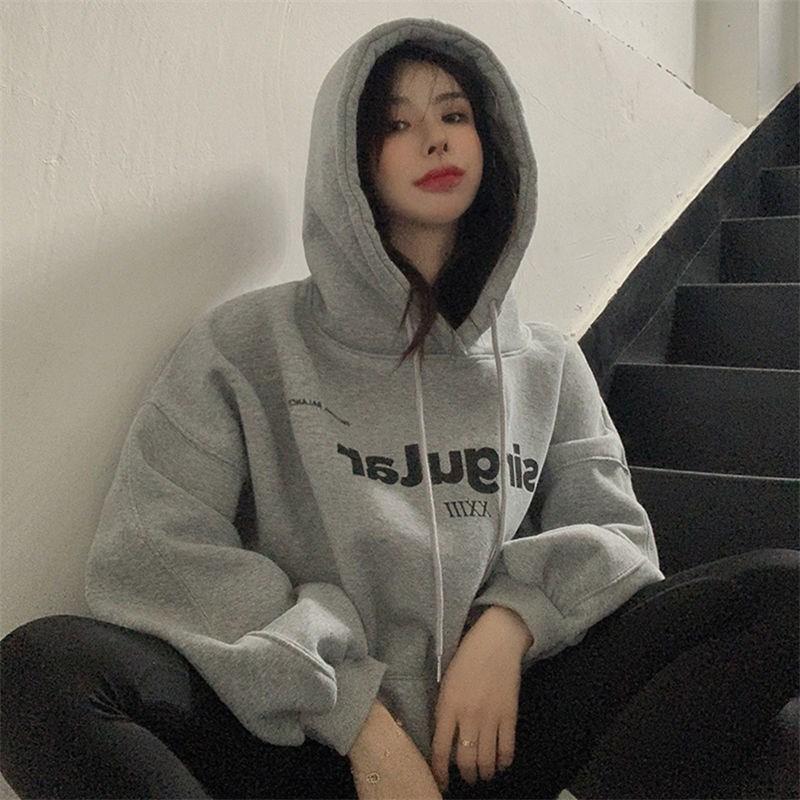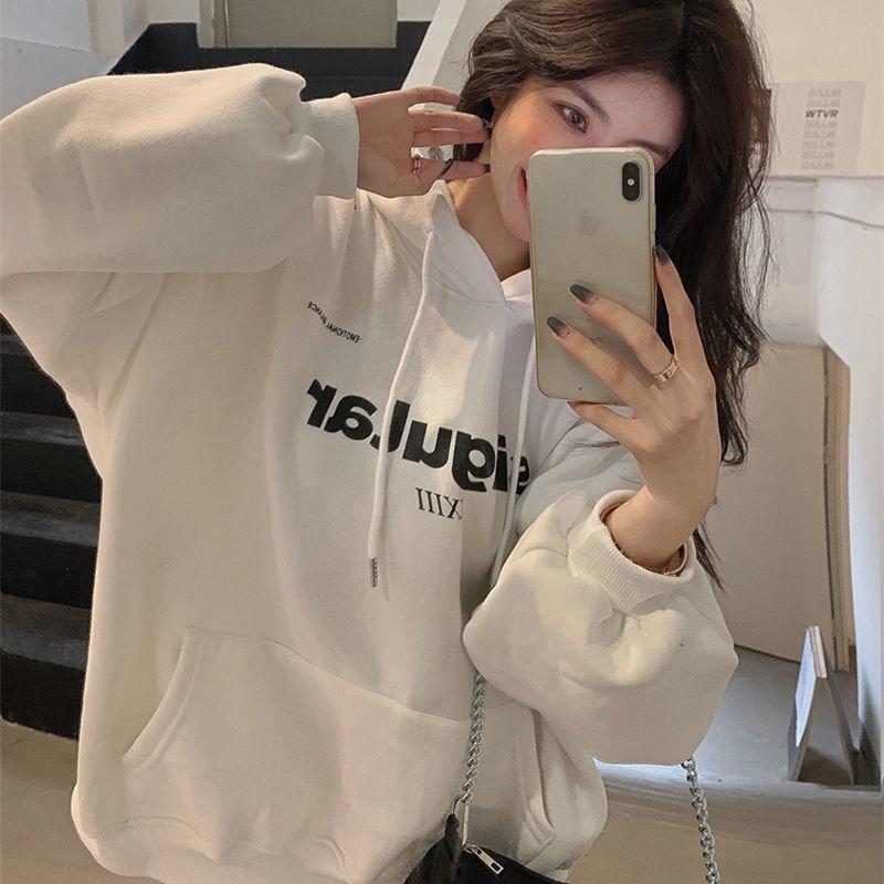 Suéter con capucha grueso de otoño e invierno con forro polar para mujer, estilo coreano, talla grande, abrigo para chica gordita, top holgado, ropa de pareja para estudiantes
