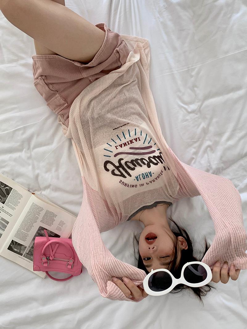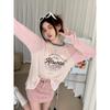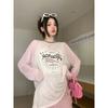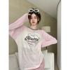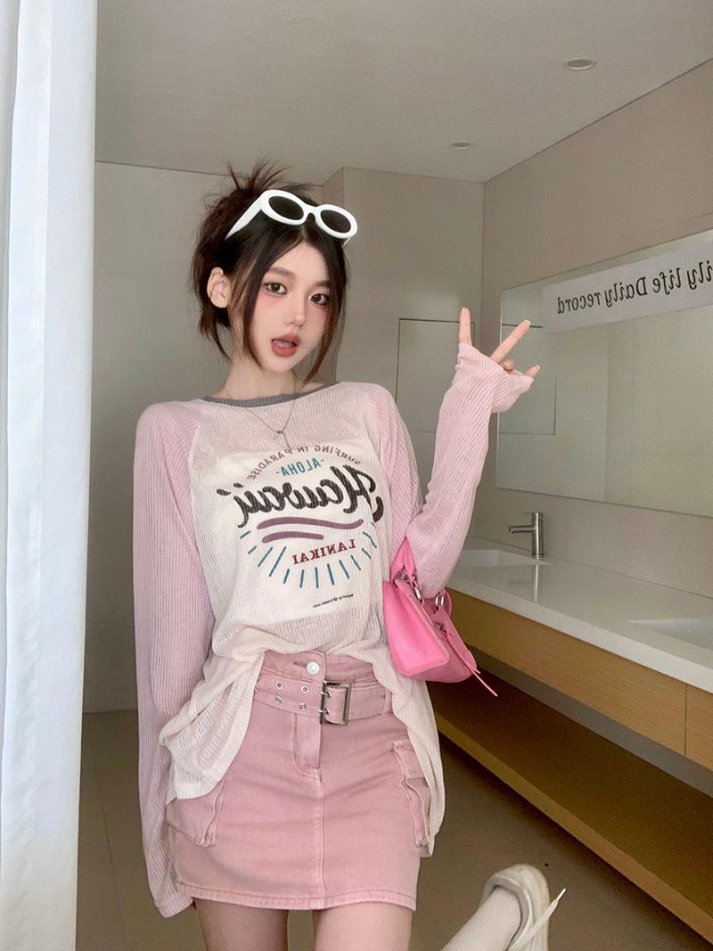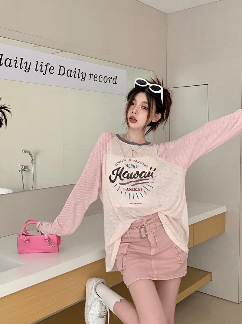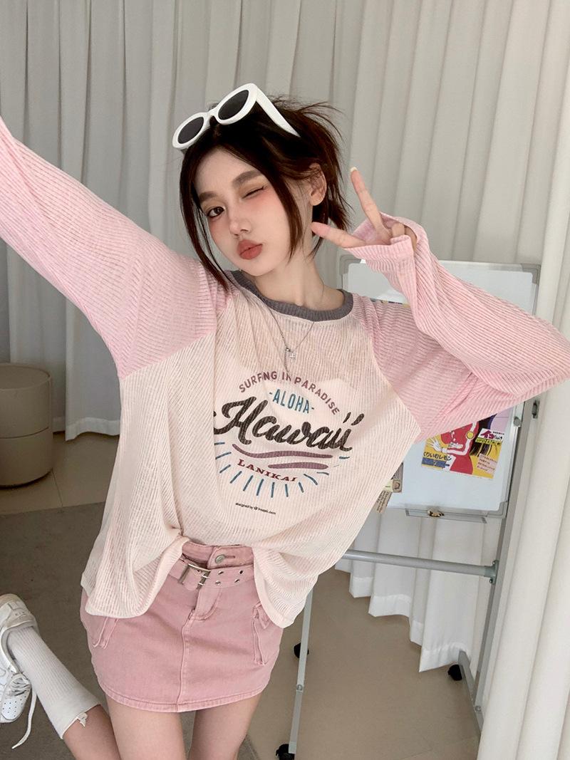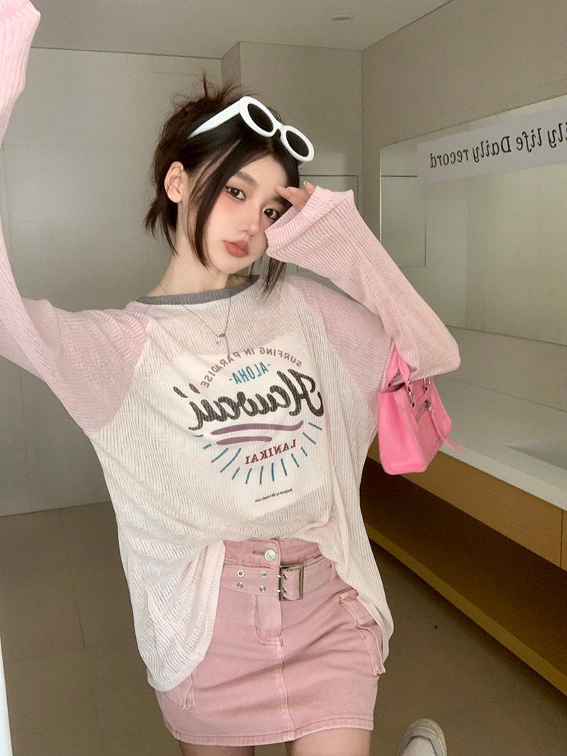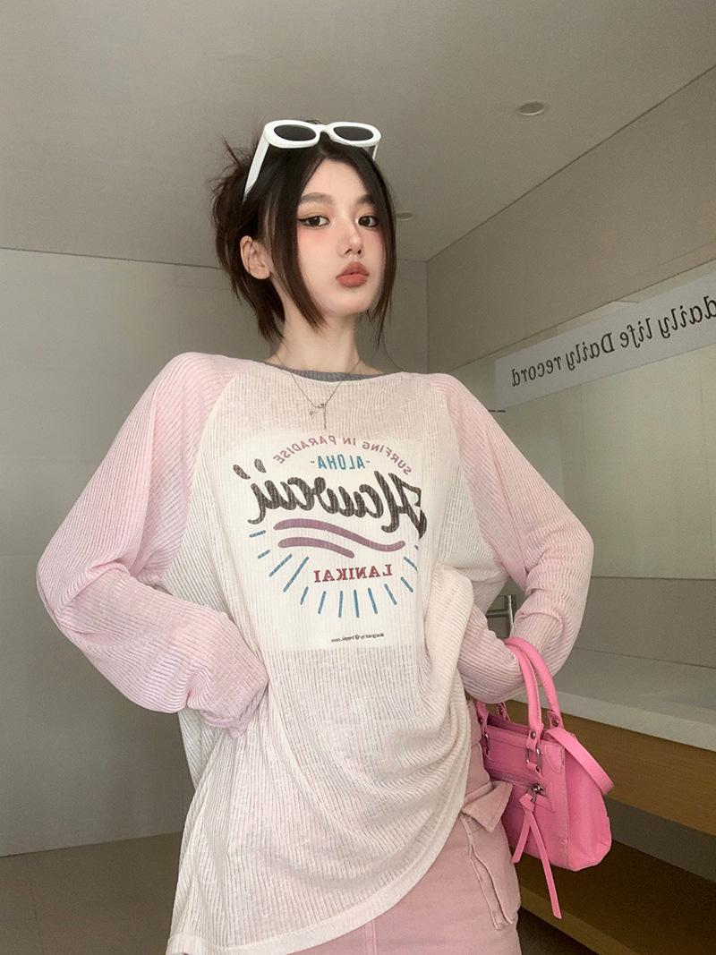 Camiseta de Manga Larga con Manga Raglán y Protección Solar para Mujer, Verano Nuevo Estilo Coreano con Estampado de Letras, Color en Contraste, Largo Medio, Combinable con Todo, Top Moderno