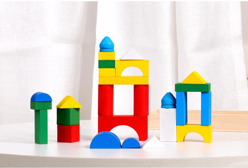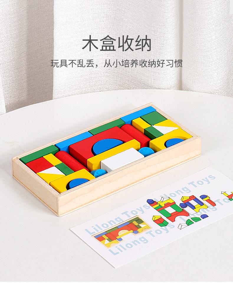 Bloques de construcción de castillo de madera caja de madera 26 piezas ensamblaje bloques de construcción pequeños estudiantes de primaria forma geométrica ayudas para la enseñanza de matemáticas juguetes