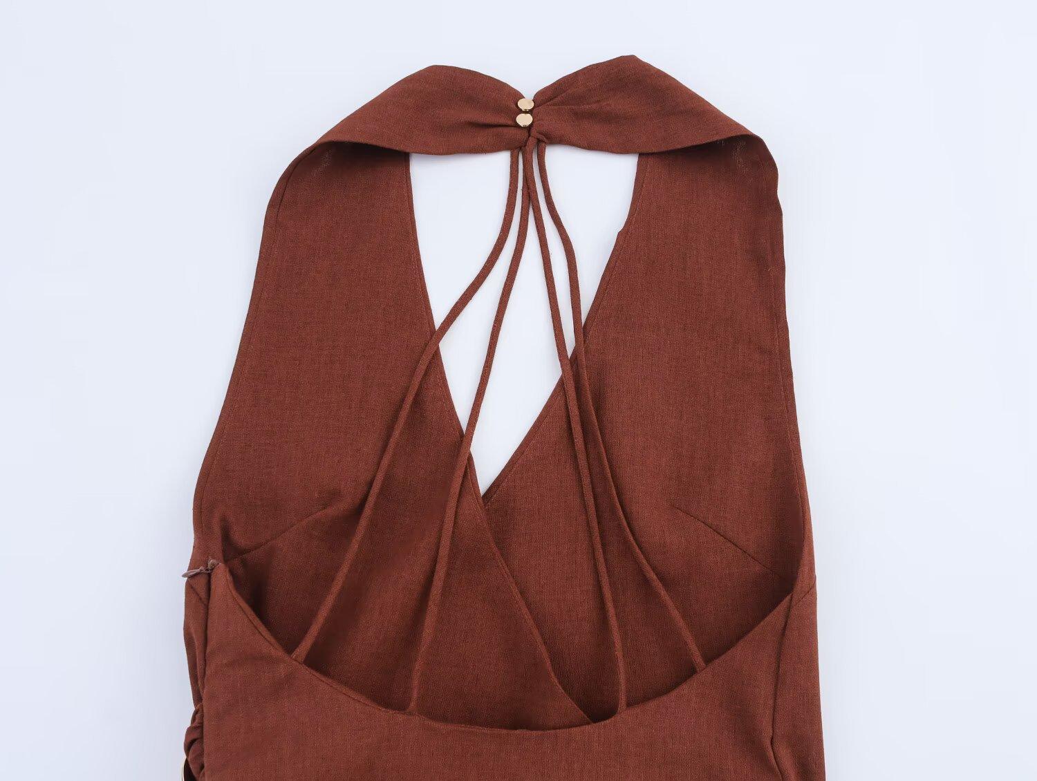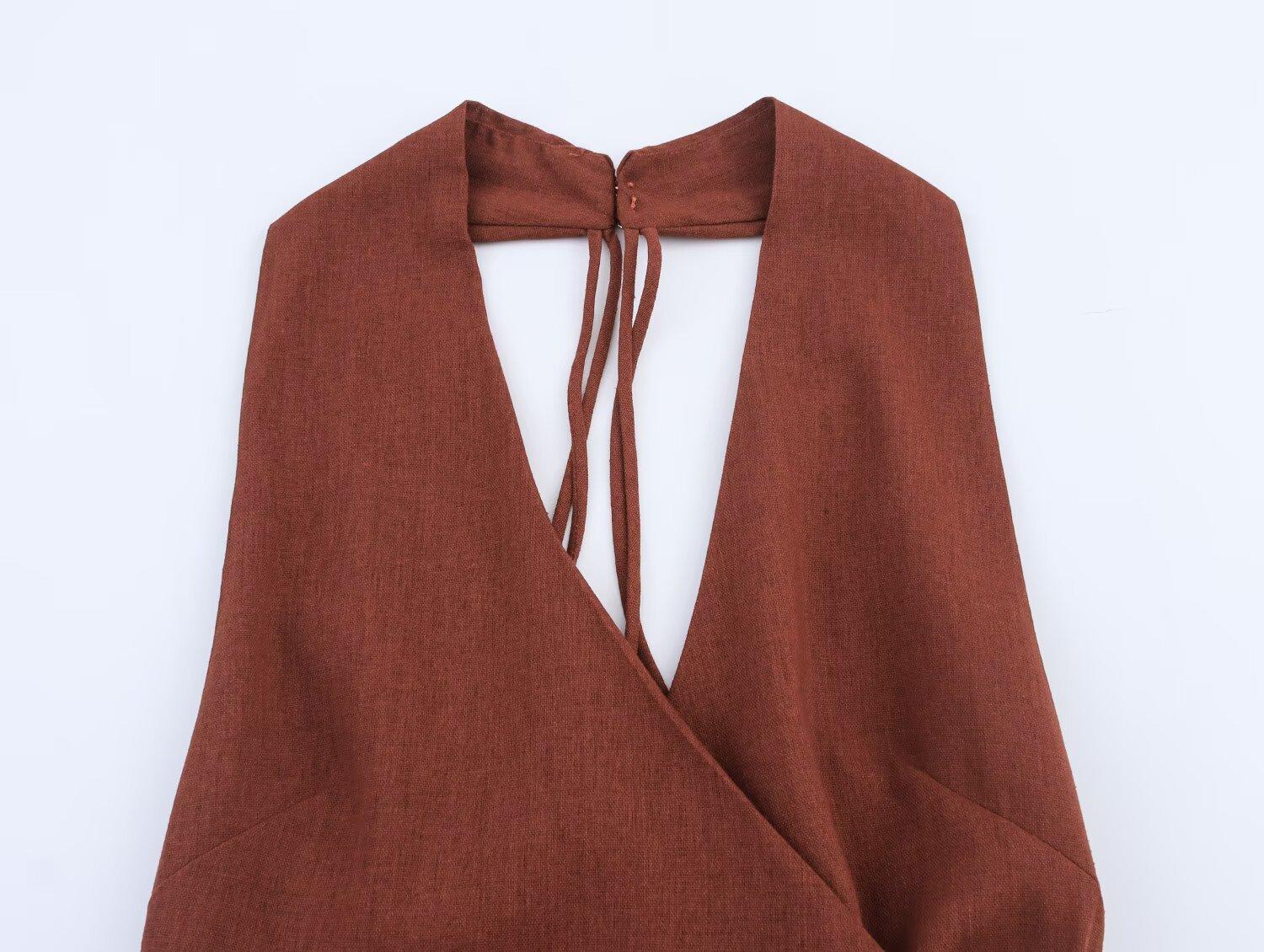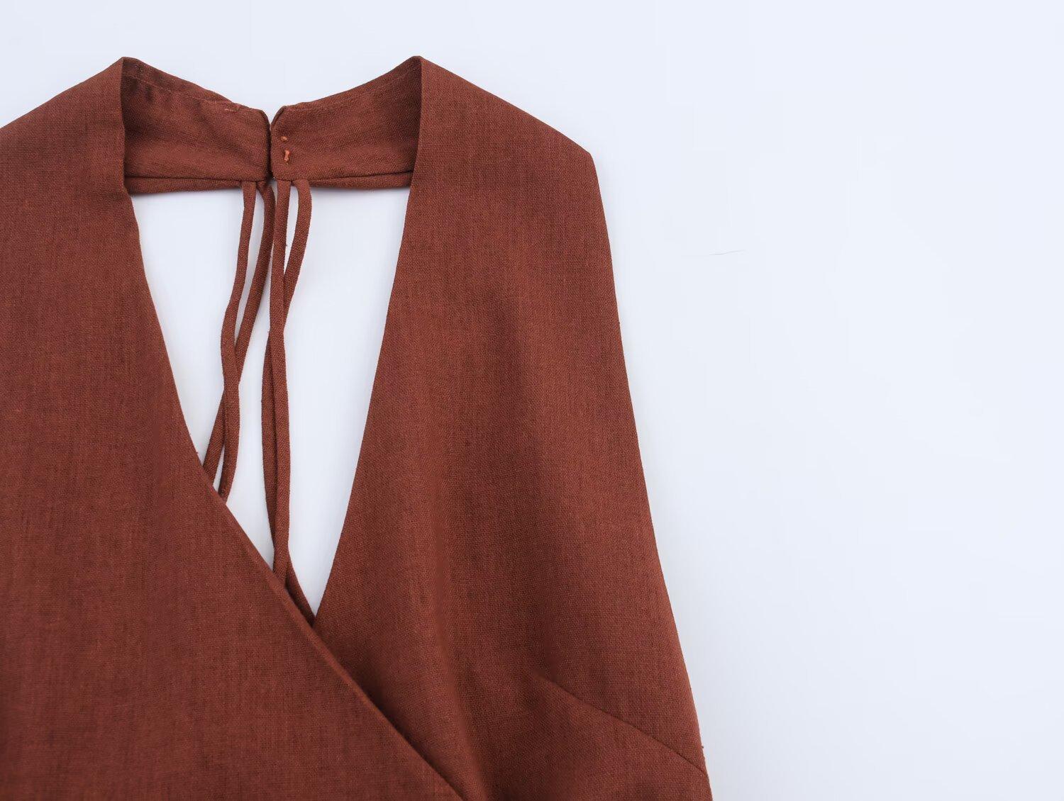 Verano 2025 Nuevo Europeo y Americano Transfronterizo para Mujer Lino Mezclado con Decoración Vestido Midi w028 82526