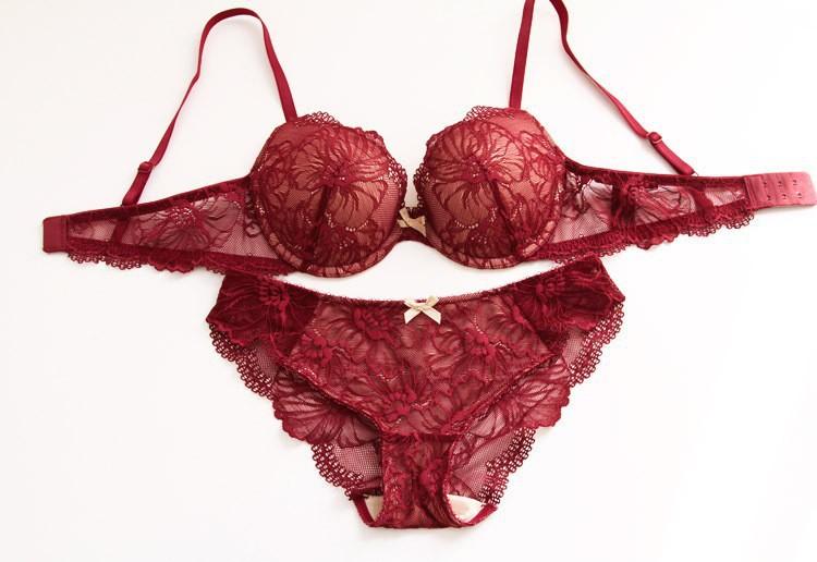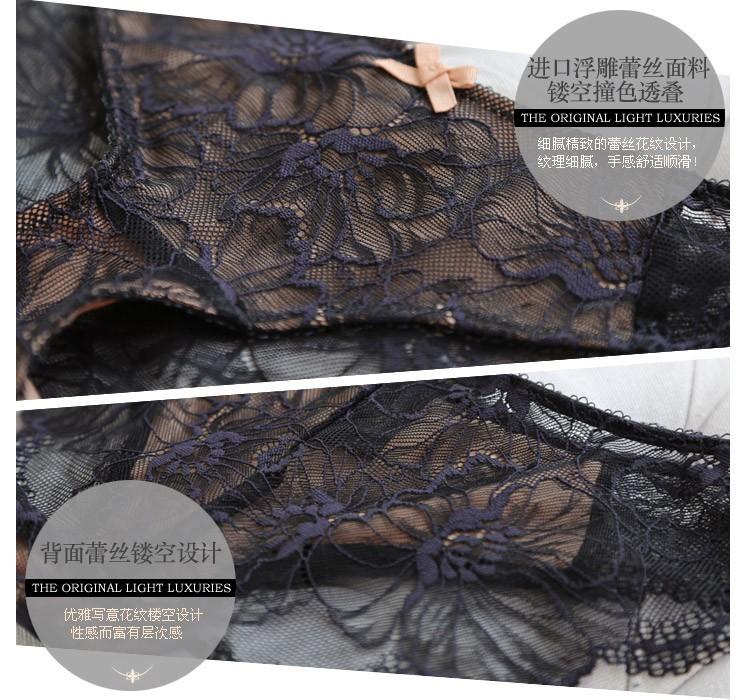| |  | Pecho grande pequeño Francés sexy ultradelgado encaje ropa interior mujer push-up sujetador suave con aro de acero conjunto de sujetador talla grande | 53 libras |