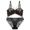 | Pecho grande pequeño Francés sexy ultradelgado encaje ropa interior mujer push-up sujetador suave con aro de acero conjunto de sujetador talla grande |