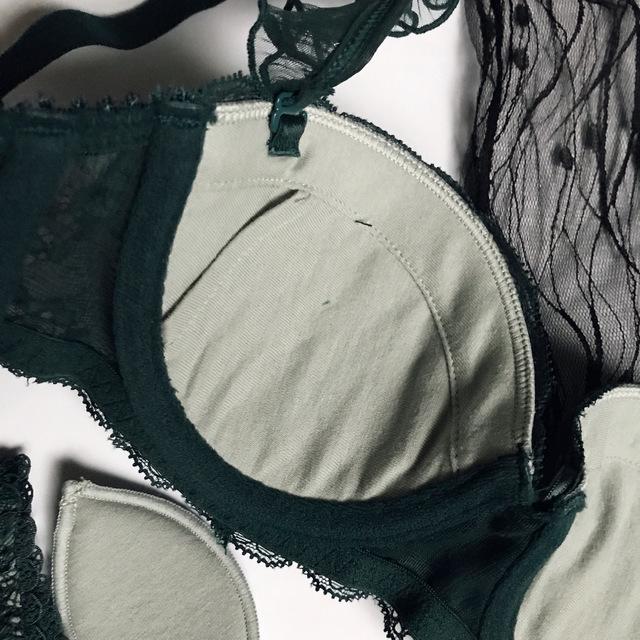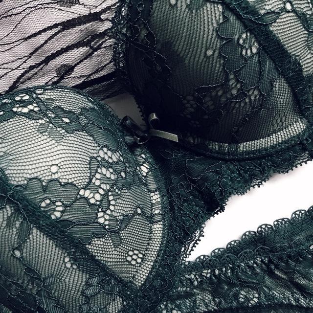 | |  | Pecho grande pequeño Francés sexy ultradelgado encaje ropa interior mujer push-up sujetador suave con aro de acero conjunto de sujetador talla grande | 53 libras |