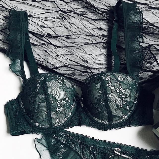 | 21 nuevo conjunto de brasier sexy francés con copa ultradelgada, aro de acero y realce, para mujer, talla grande, ropa interior europea y americana de origen al por mayor | 47 libras |