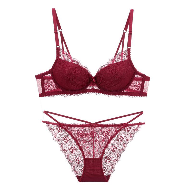 | |  | Pecho grande pequeño Francés sexy ultradelgado encaje ropa interior mujer push-up sujetador suave con aro de acero conjunto de sujetador talla grande | 53 libras |