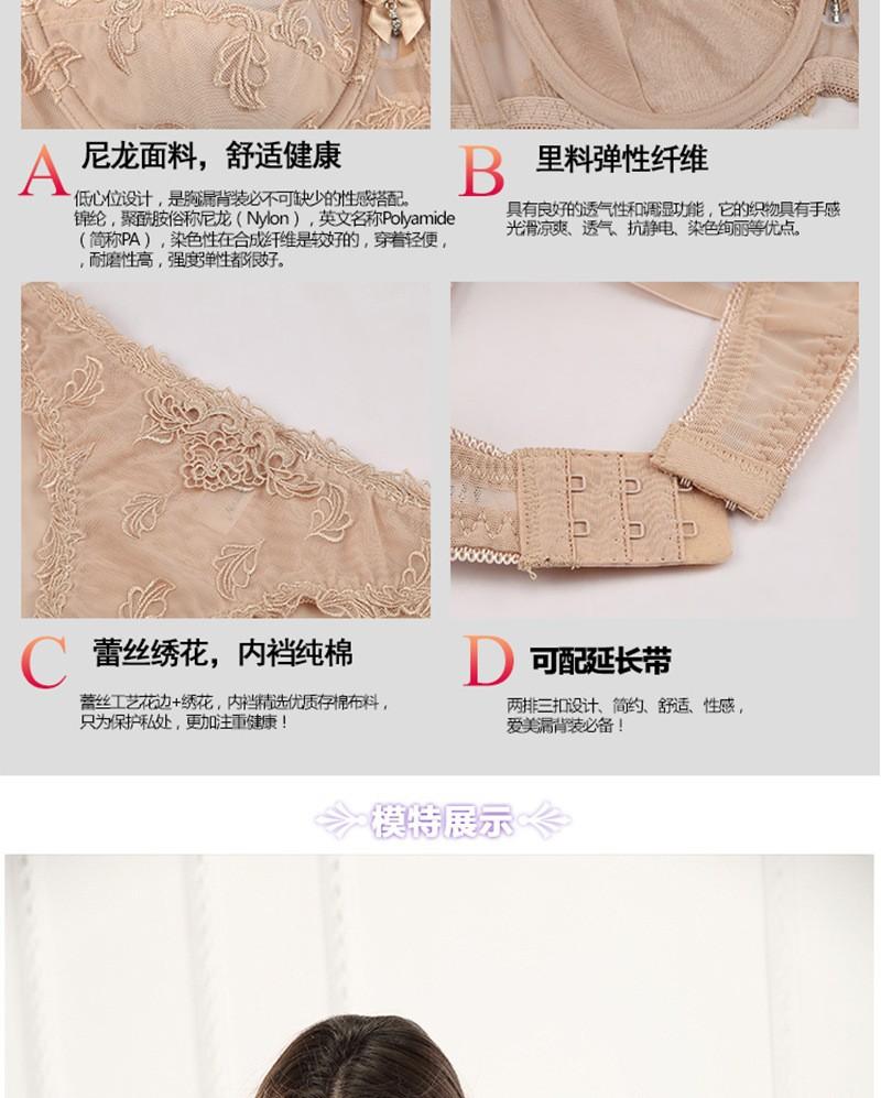 Otoño e invierno nuevo estilo francés sexy de encaje bordado ultradelgado con aro de acero ropa interior talla grande conjunto de sujetador para mujer sujetador