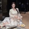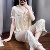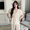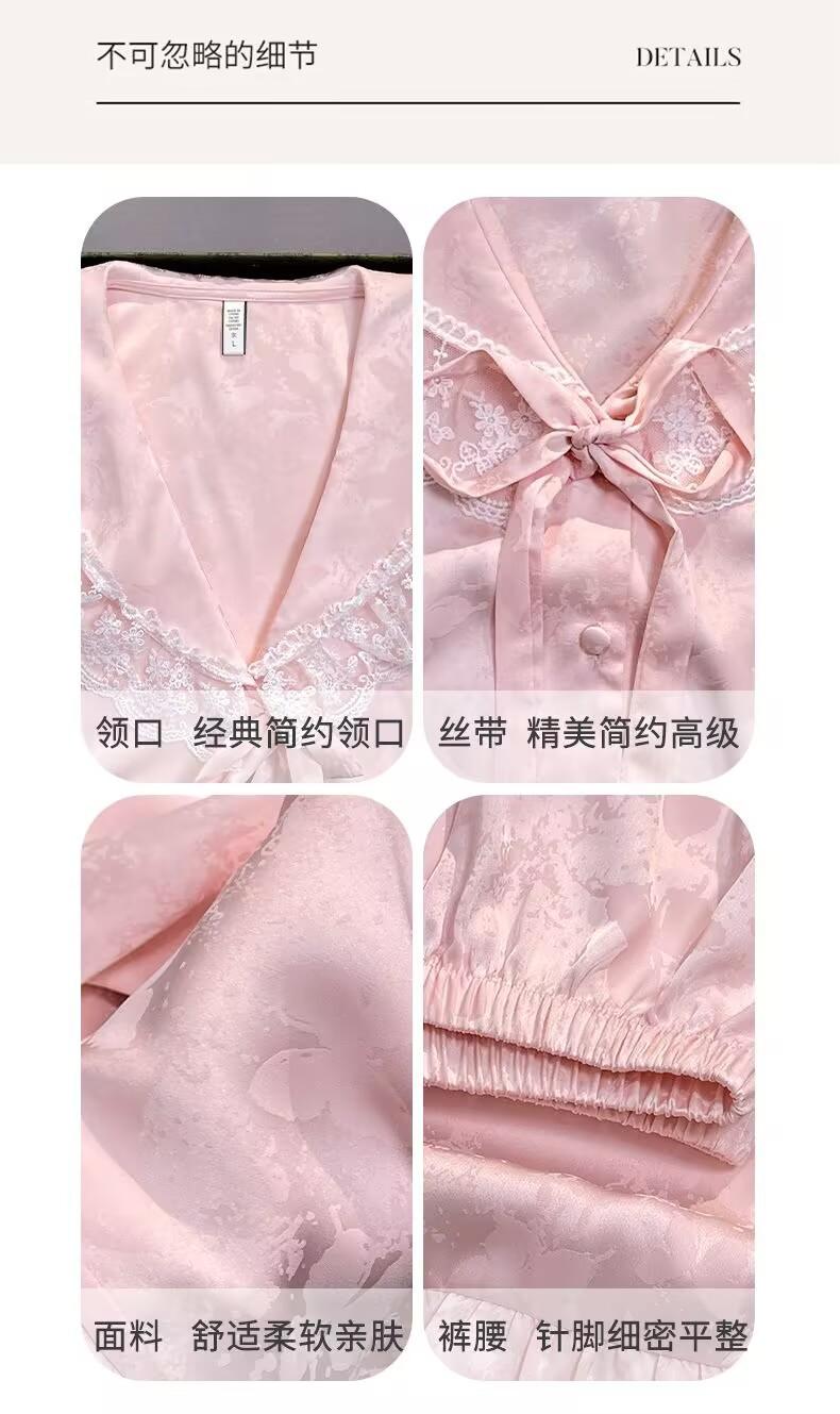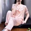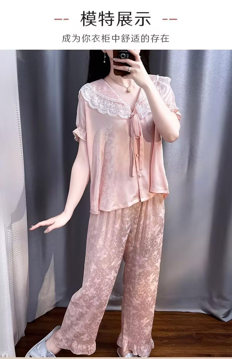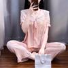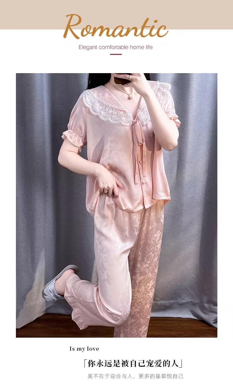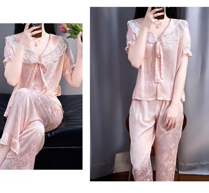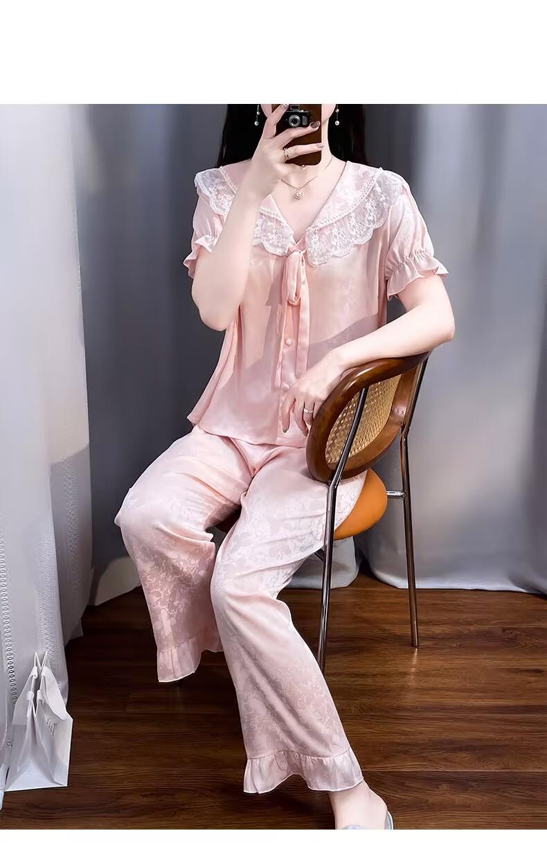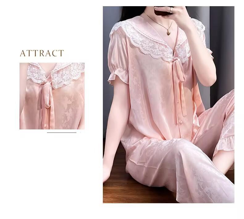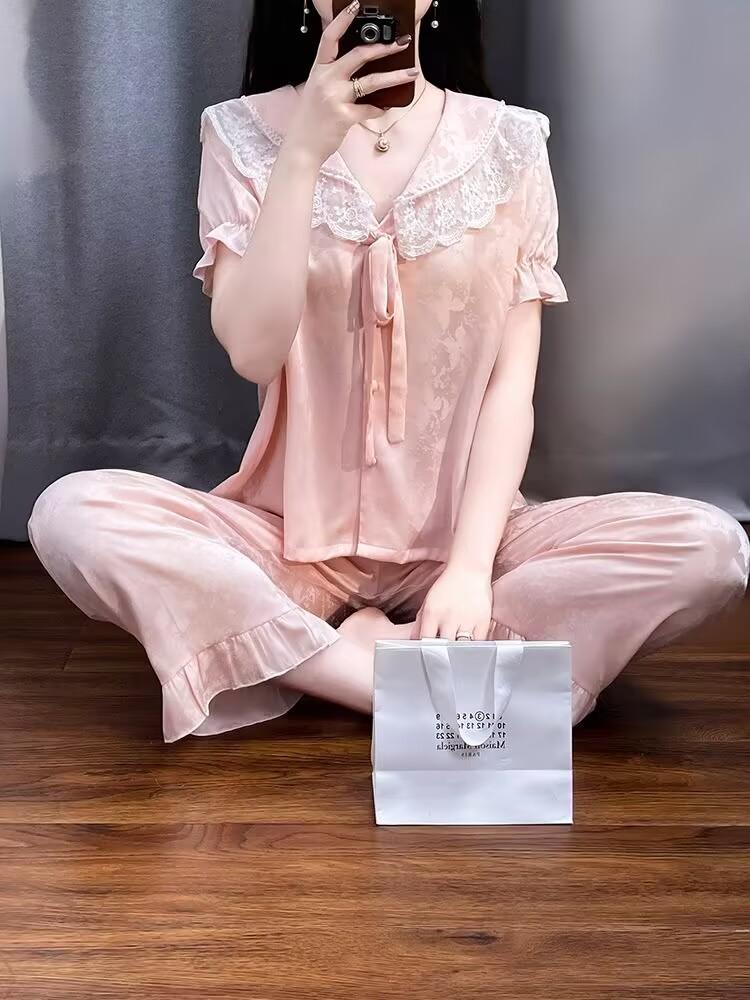 2025 Nuevo Pijama de Encaje Estilo Palacio Francés Seda de Hielo Jacquard para Mujer Verano Manga Corta Pantalones Set Ropa de Casa