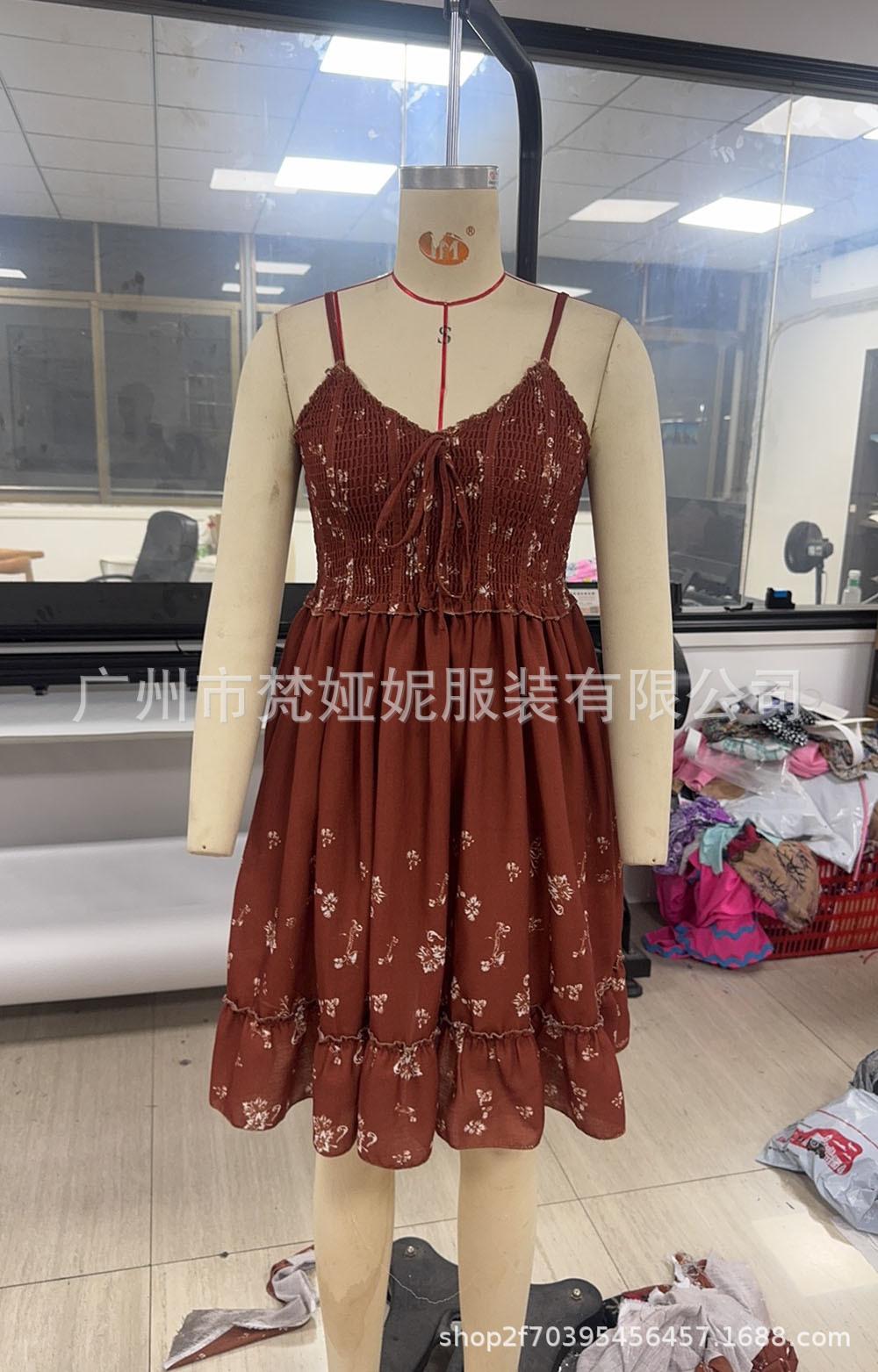 Vestido de Verano para Mujer Transfronterizo 2025 Estampado Moda Clásico Vacaciones Fin de Semana Tirantes Floral Minifalda