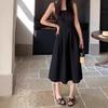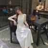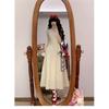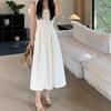 Vestido largo con escote cuadrado y tirantes finos, estilo francés de vacaciones de verano 2025, vestido blanco con textura de diosa suave para mujer