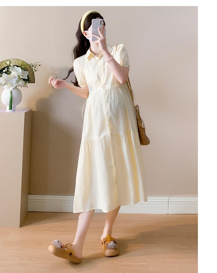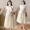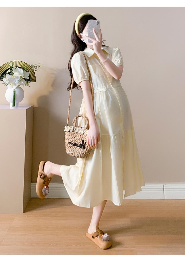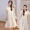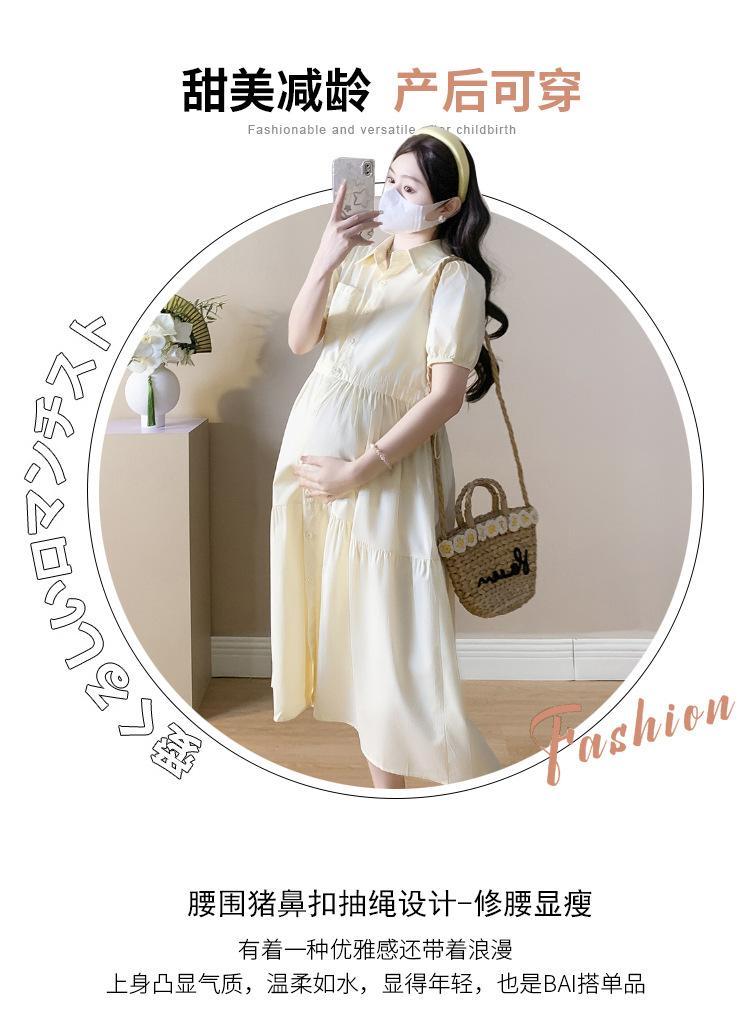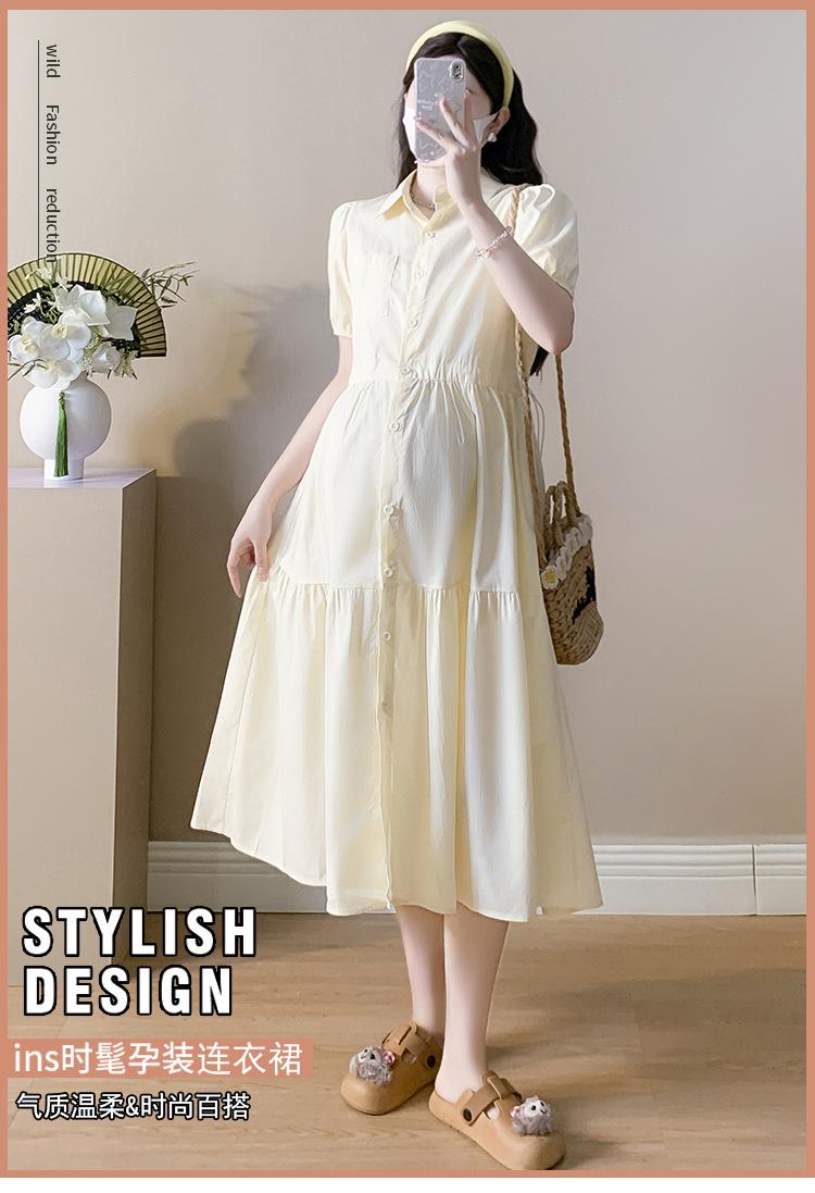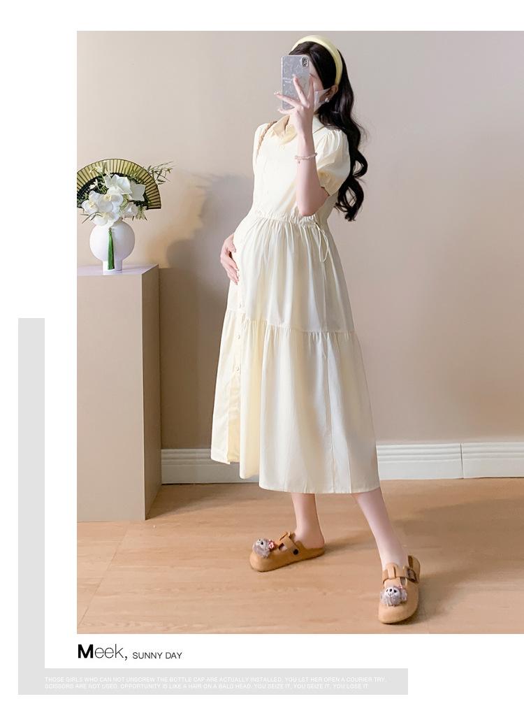 Ropa de Maternidad 2025 Verano Nuevo Hora del Té Estilo Francés Estilo Suave Reductor de Edad Hermoso Vestido de Maternidad de Manga Corta
